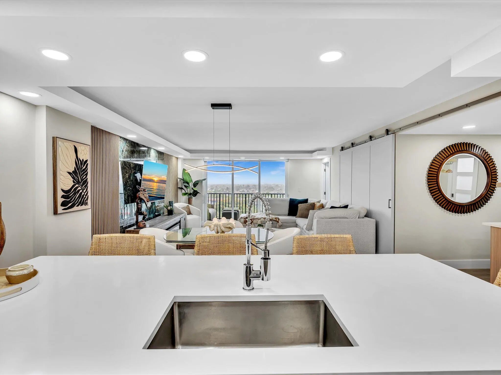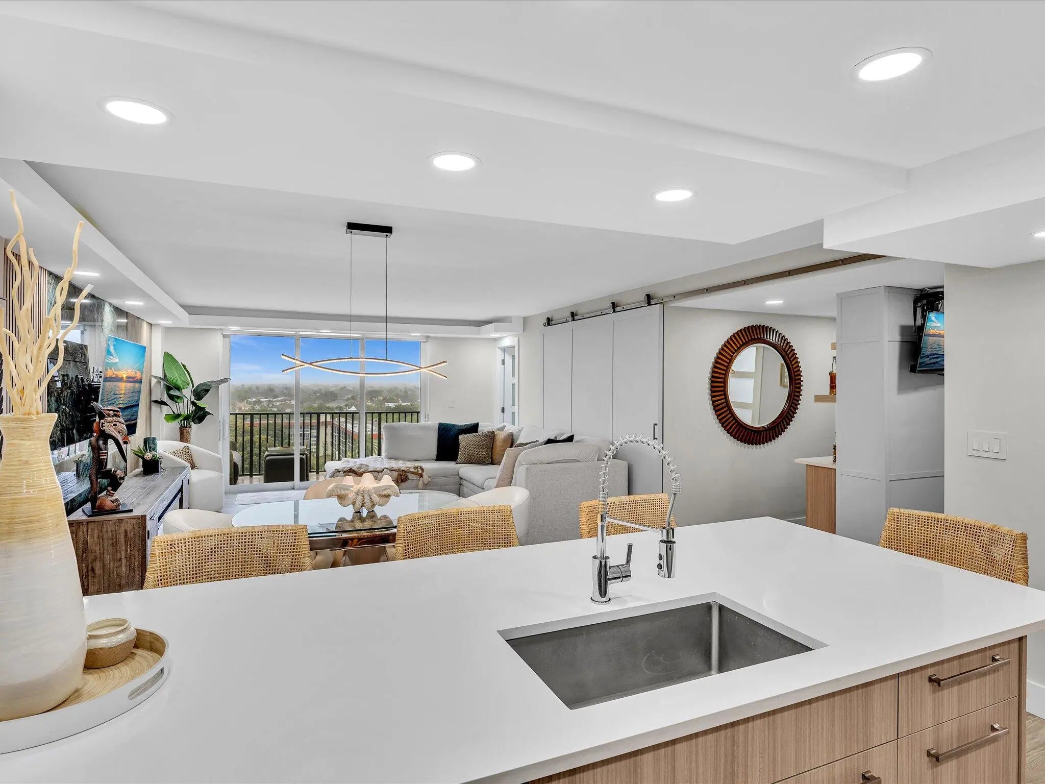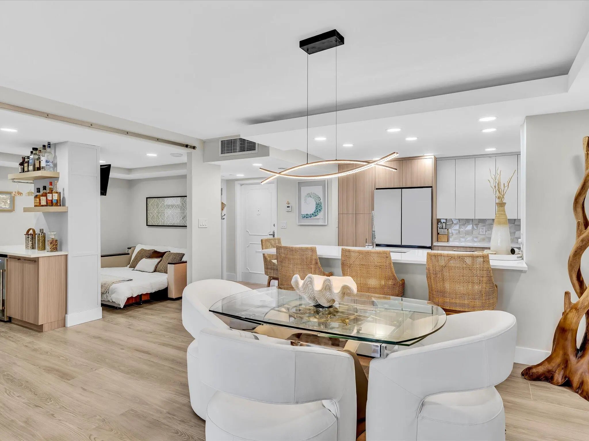 From furniture to flatware, everything is included—offering a true turnkey opportunity. Ideally situated along the prestigious Hillsboro Mile, this one-of-a-kind 1-bedroom, 1.5-bath residence w/ a VERSATILE CONVERTIBLE SECOND BEDROOM/BONUS ROOM has been meticulously renovated from top to bottom. Over $150,000 has been invested in high-end renovations, w/ an additional $20,000 in furnishings, décor, and finishes—all thoughtfully selected to complement the space. The state-of-the-art kitchen showcases sleek quartz countertops, custom cabinetry, and top-of-the-line appliances. Contemporary fixtures throughout enhance the home's warm, spa-like ambiance, delivering the perfect balance of style and comfort. You've never seen 1040 sq feet laid out so perfectly. This is a MUST see! The flexible bonus room is ideal as a guest suite—featuring a king-size sleeper sofa and closet (No window)—or as a sophisticated home office tailored for today's professional lifestyle. Every detail has been carefully considered, maximizing both luxury and livability in every square inch. Residents will also appreciate some of the lowest condo fees along the coast at just $798 per month, along with the peace of mind of fully funded reserves and all special assessments already paid in full by the seller. Additional highlights include private beach access and covered parking beneath the building—completing this exceptional coastal offering.