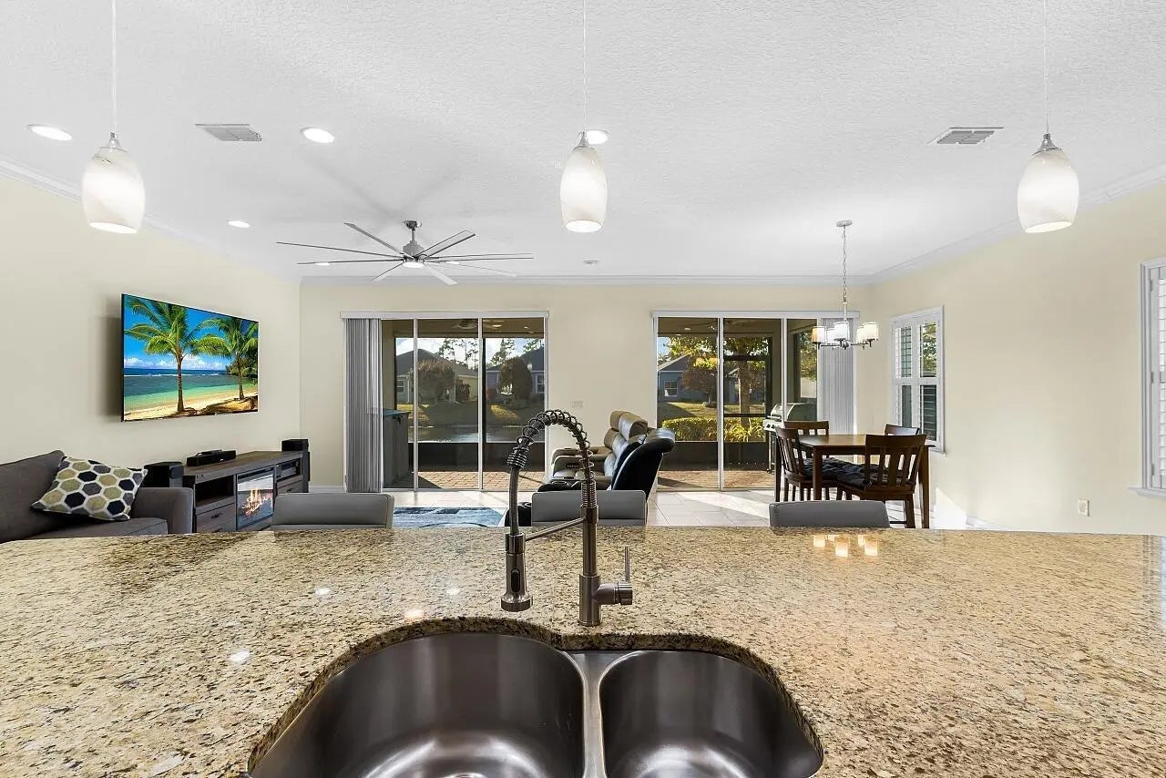 Lakefront living in the gated Sandcrest community of Sebastian an intimate neighborhood of approximately 100 homes offering privacy, low-maintenance living, and a true sense of community. Built in 2017 by Maronda Homes, this 3BR/2BA home offers 1,844 sq ft with tile flooring throughout main areas, newer carpet in bedrooms, crown molding, plantation shutters, and tray ceiling in the primary suite. The custom kitchen features granite countertops, wine-glass storage, and newer LG appliances including an induction range. Enjoy peaceful pond views from the expanded screened paver patio, complete with remote-controlled Kevlar hurricane protection, privacy shade, and generator hookup ideal for year-round Florida living. Additional features include full hurricane protection with accordion shutters and move-in ready finishes throughout. Low HOA includes lawn care, irrigation, gated entry, clubhouse, and heated pool. Walk to the North Sebastian Conservation Area and community amenities. Minutes to Sebastian Inlet, riverfront dining, shopping, medical, and beaches. Golf cart friendly community. Pets allowed!