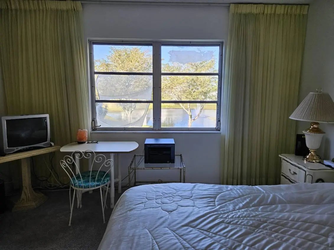 Beautifully well maintained top floor, lake view 2 bedroom, 2 bath unit with views of the lake and garden beyond. The dining & living area is perfect for relaxing or entertaining. Primary bedroom with walk in closet and primary bath. Light and bright with laundry facility & two storage units, community pool. Assigned parking space and plenty of guest parking. well maintained, active 55 + community with elevator. AC replaced 2020. No upstairs neighbors! Close to shopping, restaurants, highways and minutes to the beaches. Make this wonderful property your new Home in Florida. All appointments must be scheduled through Showing Time.