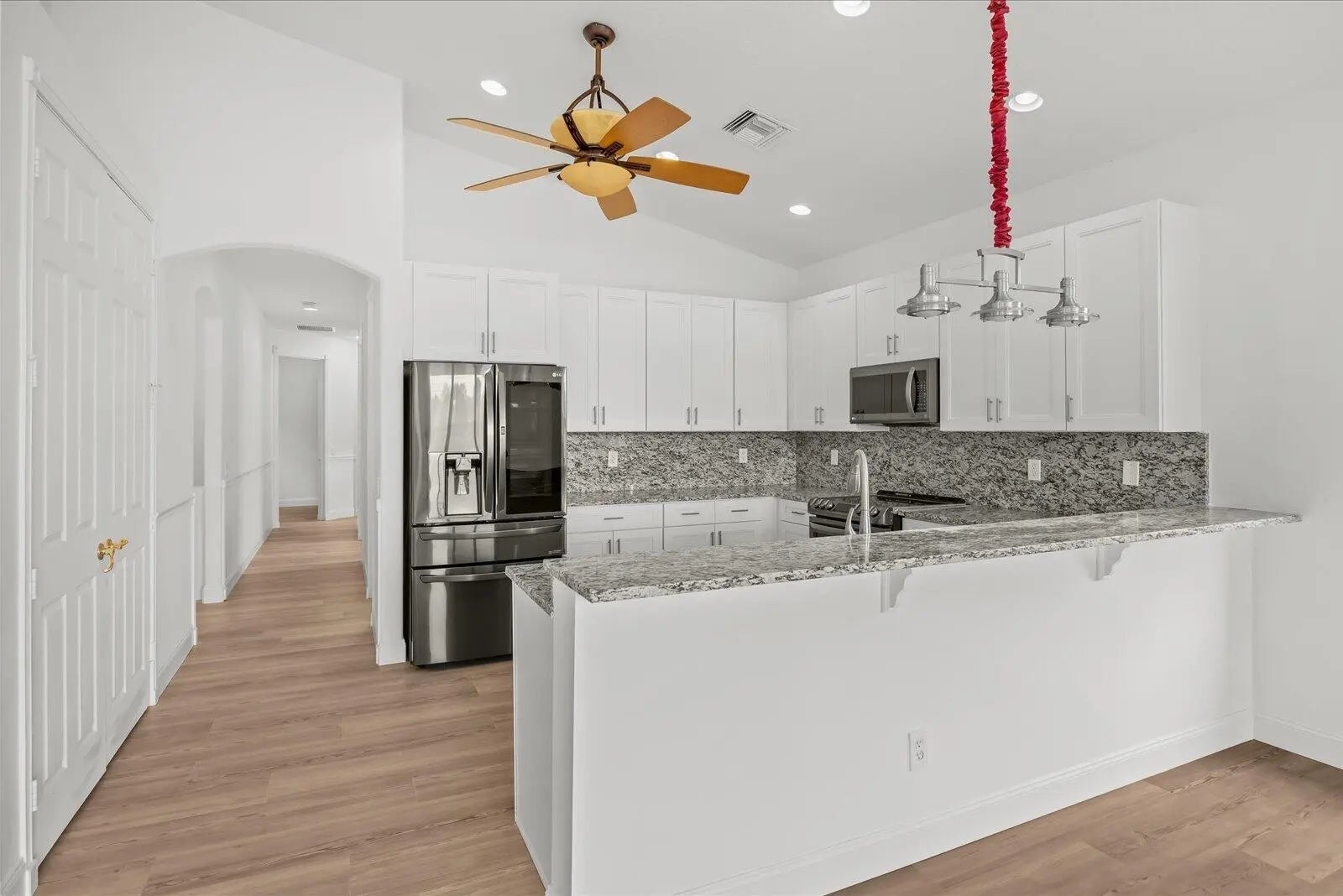 Recently renovated and relisted! One of the largest floorplans in Valencia Shores, this spacious 4-bedroom, 2.5-bath sprawling home sits on a generous private lot. The original owner's suite features a gorgeous bathroom with free standing tub, expansive bedroom, and oversized closets ready for a modern refresh. Step through the standard entry doors into this classic open layout on durable floors. Georgeous kitchen with original solid wood cabinets, granite counters, and lovely finishes awaits your upgrades for personalized style. Roof 2003 tile roof, AC 2018