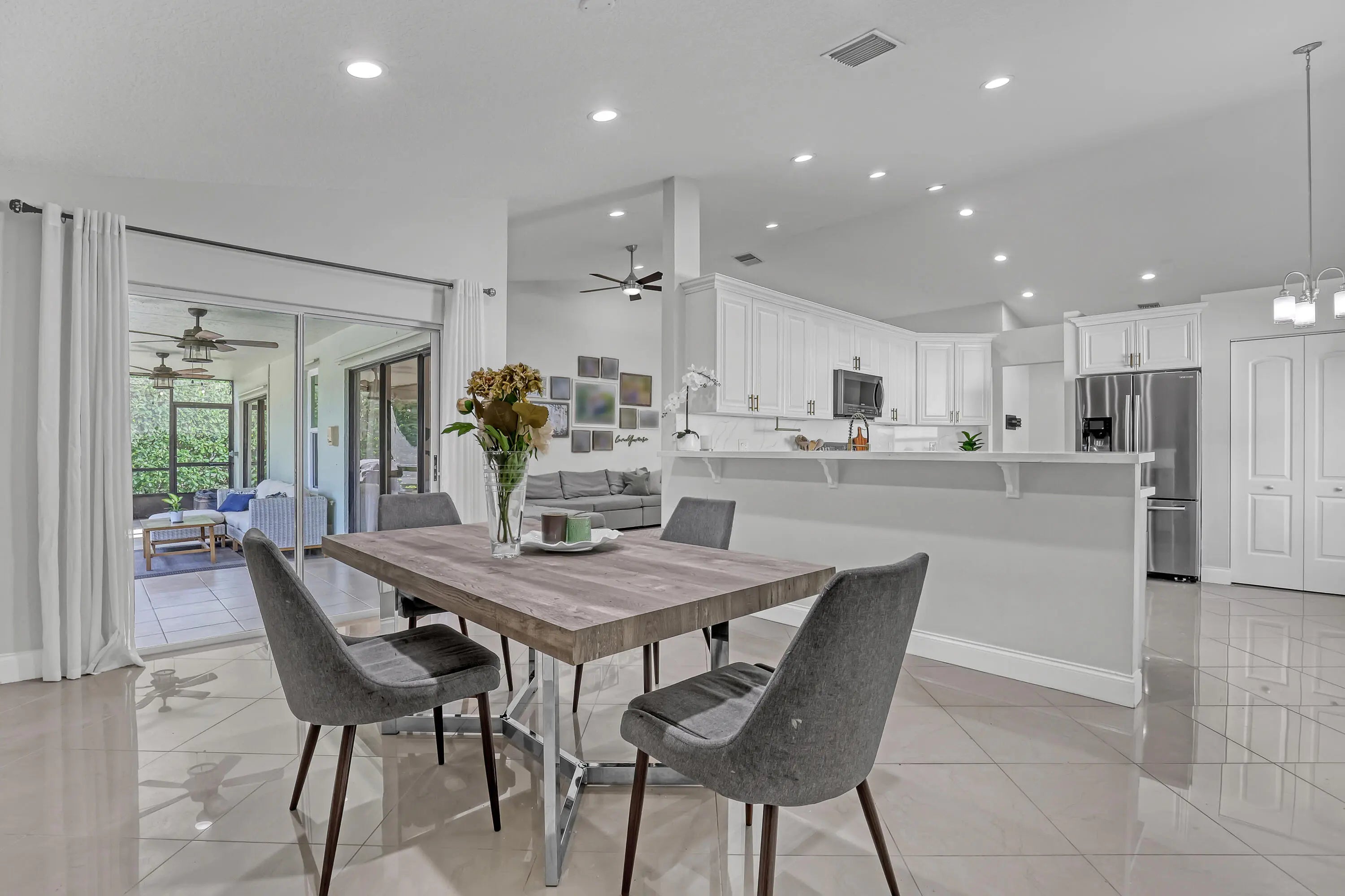 No need to look any further...you've found your new home!! You'll fall in love with this stunner in the desirable Aspen Ridge neighborhood. Cooking's a dream in the large, updated kitchen with newer quartz countertops & full quartz backsplash wall, under-cabinet lighting, and breakfast bar. Brass fixtures & hardware give it a modern flair. The house features vaulted ceilings, tons of natural lighting, and a stone accent wall in the great room. Tile (no carpet) and tall baseboards throughout. Impact windows installed in 2024 and newer RainSoft whole-house water filtration system. Both bathrooms feature granite vanities and full-glass showers, with a jetted garden tub in the primary bathroom for relaxation time. Huge primary bedroom with sliders to the large, screened patio. Enjoy your own backyard oasis with an expansive paver patio, firepit, string lights, and lots of trees for complete privacy. New select lighting, irrigation system, exterior paint, and AC (2024) are just a few of the additional updates. Aspen Ridge is a spectacular neighborhood with a pool, tennis/pickleball court, fitness room, and a clubhouse, where your yard maintenance, cable/internet, and security system are included.