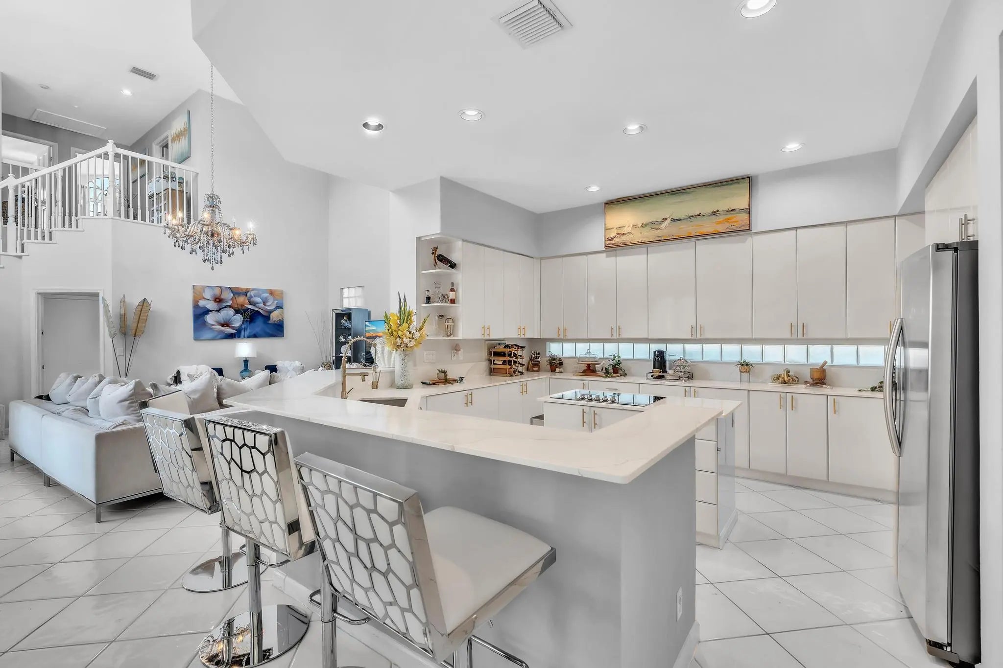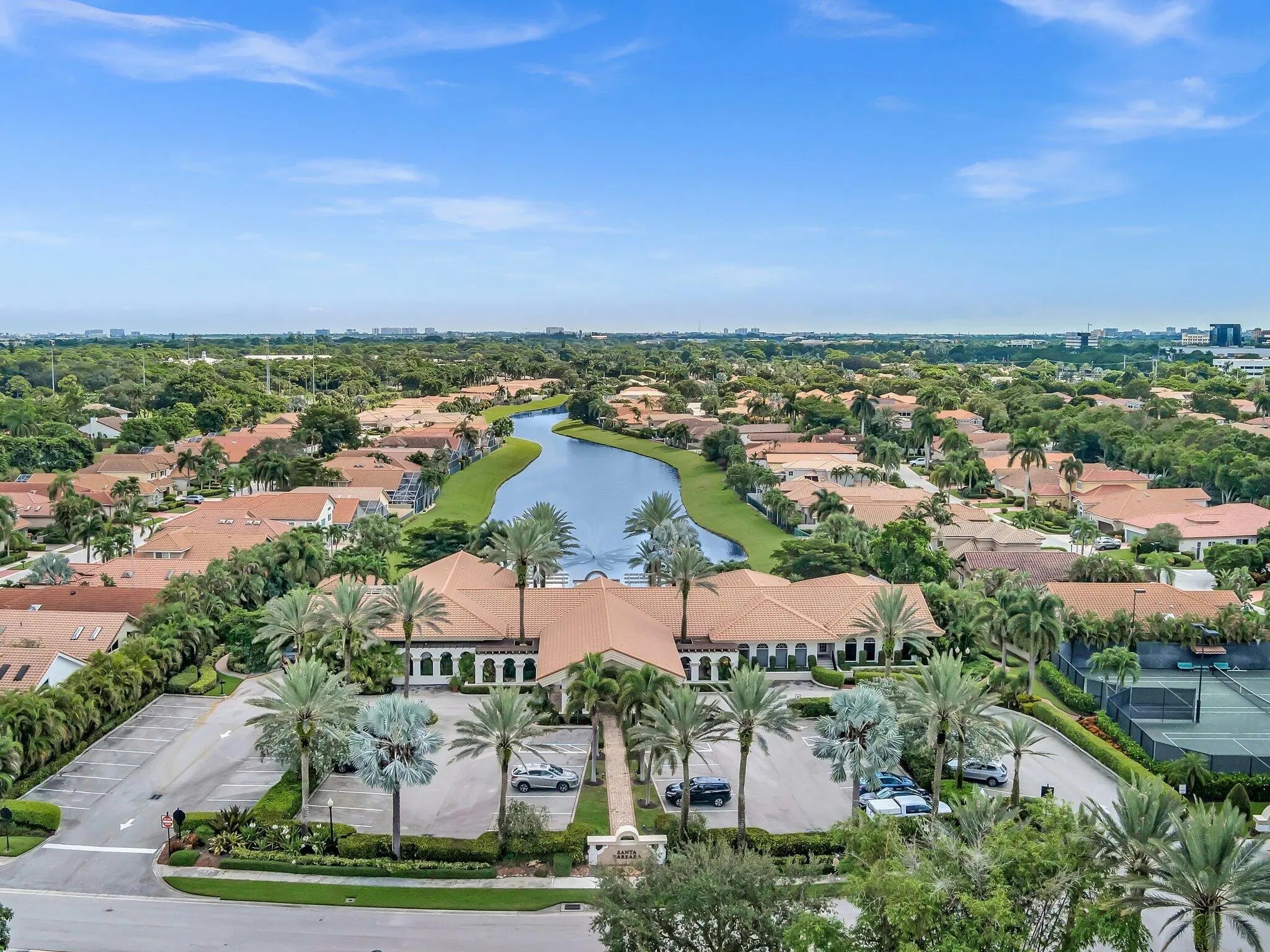 Rarely available courtyard pool home with a yard plus a guest house with a separate entrance, the guesthouse is the 4th bedroom in a highly desirable location. Perfectly designed for indoor-outdoor living. This 4BR/3.5BA gem features a sought-after layout with the primary suite on the main floor with a newly renovated spa-like bathroom with porcelain countertops and a separate guest house perfect for an office, studio, or long-term guests with a New vanity & quartz countertop 11-2025. The heart of the home is the pristine kitchen, boasting brand-new quartz countertops, cooktop, faucet, cabinet pulls 11-2025, New garbage disposal, New AC & Hot water Heater 2025,. All New Plumbing Pipes 2025. Santa Barbara offers the much desired vibrant country club lifestyle without the fees. Prime Location, 2 minutes from the famed Town Center Mall, downtown Boca Raton, Mizner Park & the most pristine beaches. Newly updated contemporary chic clubhouse offering a resort style pool and heated spa overlooking the impressive lake and fountain, state of the art fitness center, Clay tennis courts. A Rated schools.24 Hour manned guard gated community. Just minutes from all major highways I95 & the Turnpike. Seller will be resurfacing the pool. The home is zoned for the new elementary school Blue Lake
