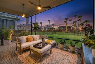Welcome to this beautifully appointed Lila floor plan in the highly desirable community of PGA Verano. Situated on a premium corner homesite, this property offers added space, privacy, and attractive curb appeal with lush landscaping. Step inside to a welcoming foyer that opens to a bright, open-concept living area with impressive volume ceilings. The gourmet kitchen features white cabinetry, wall oven and microwave, and flows seamlessly into the great room and out to the screened lanai, perfect for indoor-outdoor living. This home offers 3 bed/3 full baths and a versatile flex space, enhanced with elegant wood detailing. The great room features a custom accent TV wall, adding warmth and modern style. Ceiling heights include 11'4" in the main living areas and owner's suite. The owner's suite includes a spacious walk-in closet and tray ceiling. Enjoy the screened, covered lanai with the outdoor grill, overlooking a fenced backyard, ideal for relaxing or entertaining. The home is set up with an Apple Home System. Located in PGA Verano, residents enjoy resort-style amenities including a clubhouse with over 80 clubs to join, two fitness centers, 3 pools, 27 pickleball courts, 5 clay tennis courts and golf cart friendly lifestyle. As a PGA Verano homeowner, if you decide to become a member of the PGA Golf Course, which is adjacent to the community, there is a private path within the community for you to take to the courses.
