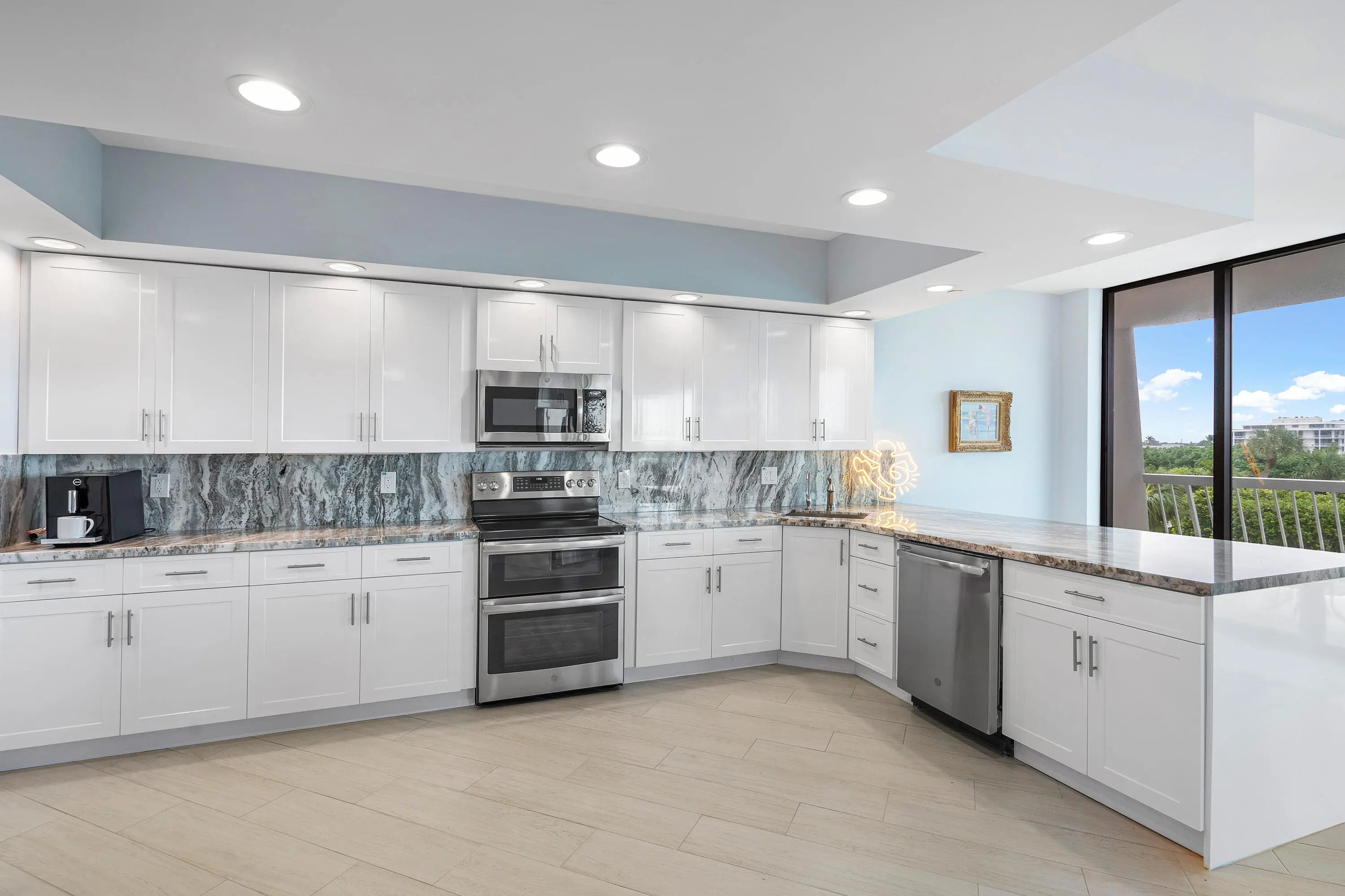 MOTIVATED SELLER! CABANA INCLUDED - Experience refined coastal living in this stunning 3-bedroom, 3.5-bath residence offering 3,136 sq feet of thoughtfully designed space. Impressive entry with volume ceilings, the residence features a spacious open concept Living/Dining ideal for both relaxed living and elegant entertaining, complemented by a wraparound balcony showcasing sweeping views of the Intracoastal Waterway and the Atlantic Ocean. A desirable split-bedroom floor plan, The primary suite is a private retreat, complete with generous walk-in closets and a spa-like bath. Additional highlights include a large, well-appointed laundry room with Water Filtration system, abundant storage throughout & 2 garage parking spaces, EV Charging Beautifully maintained environment. Located within a gated community with full-service amenities including doorman service, on-site Mgmt. Exceptional amenities include, Pool, Spa, Tennis with onsite Pro and Pro Shop, Outdoor Barbecue, Fitness. Perfectly positioned just moments from premier shopping, fine dining, and convenient access to the airport, this is a rare opportunity to own a sophisticated waterfront residence offering scale, views, and an elevated lifestyle.