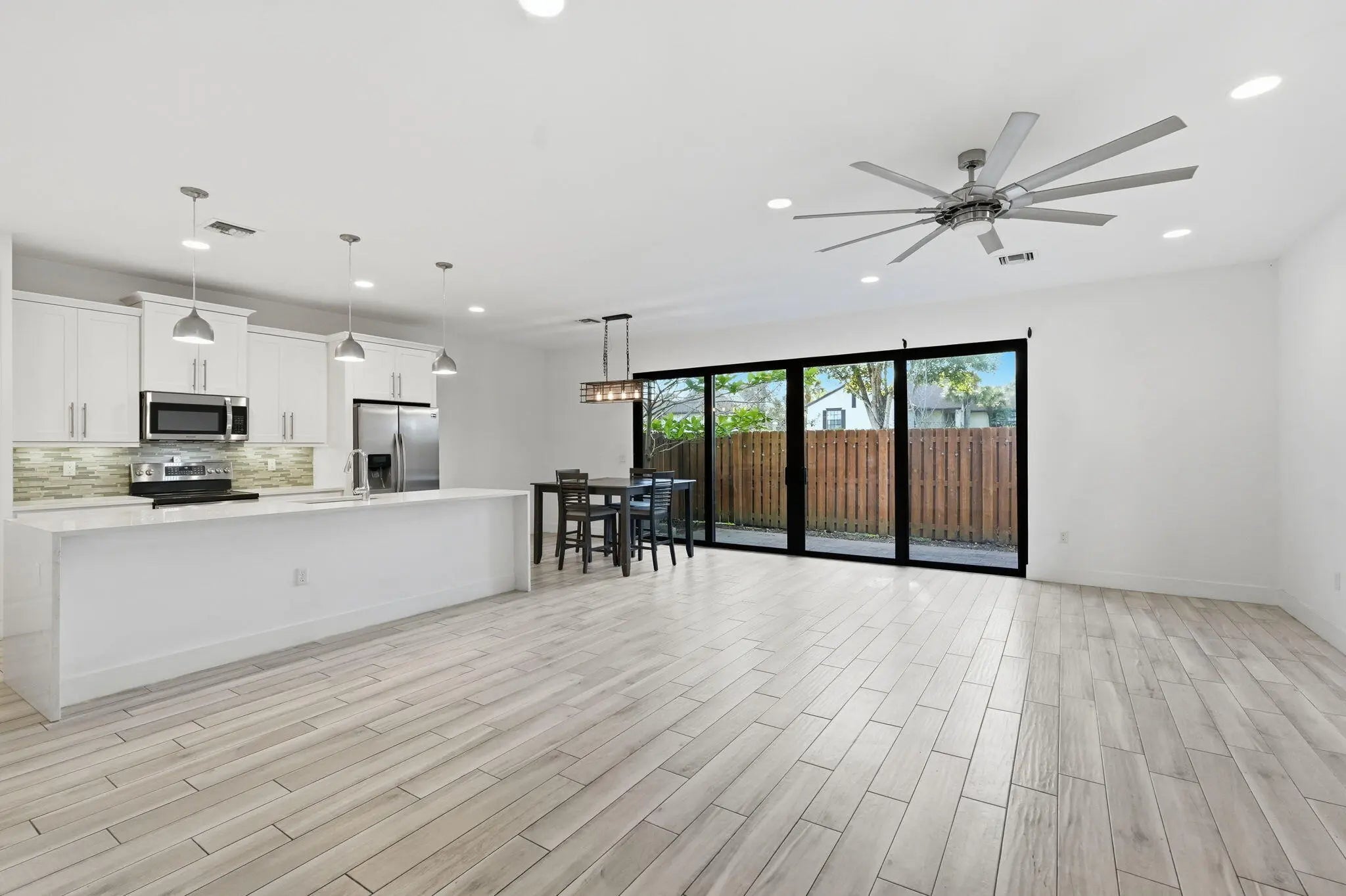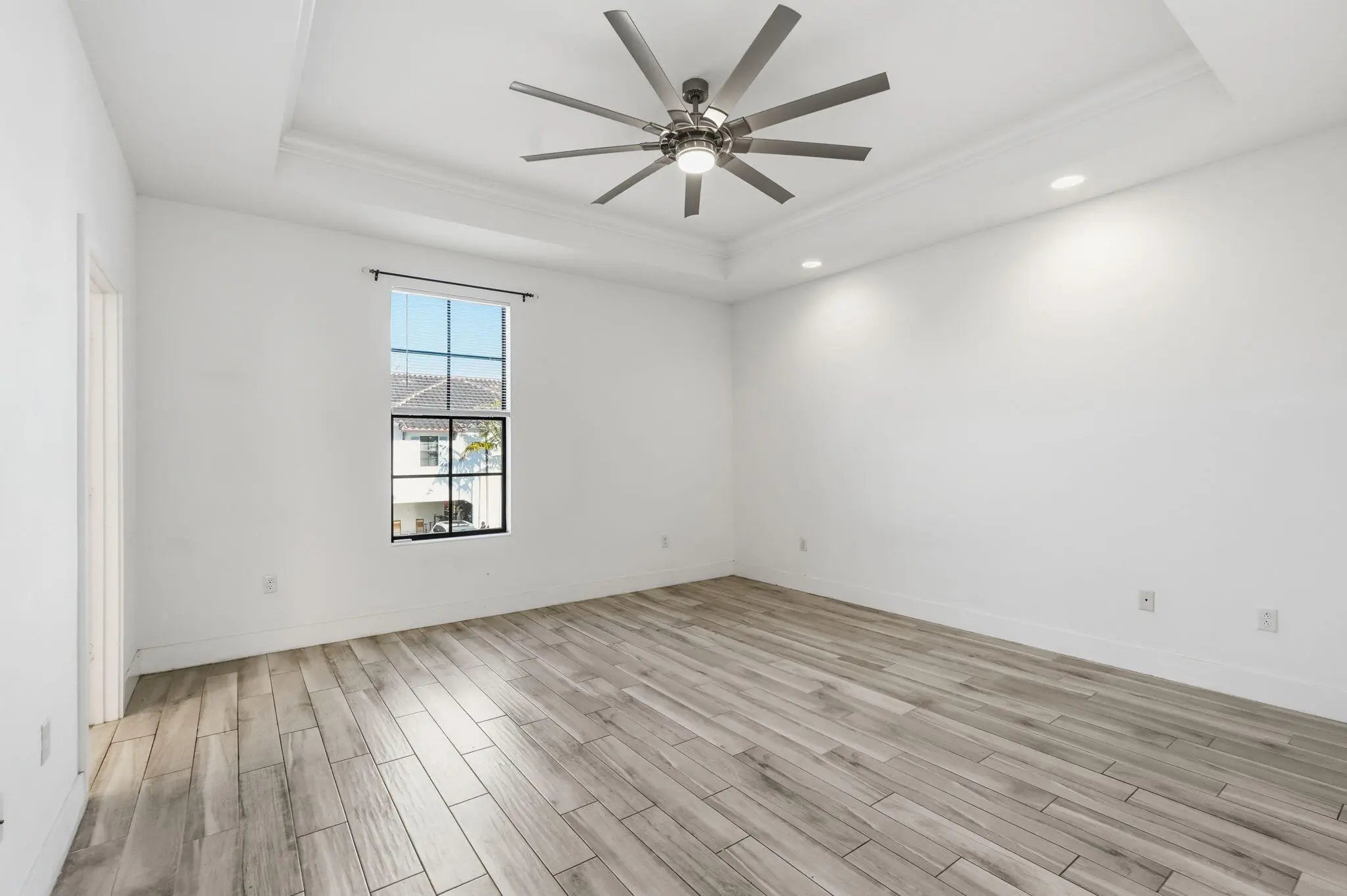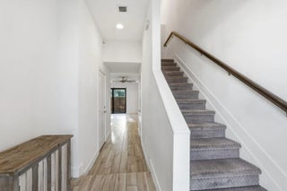 Step into luxury with this beautifully built 2-story CBS townhome featuring complete hurricane-impact windows and doors for safety and efficiency. This bright 3-bedroom, 2.5-bath home offers wood-look tile floors, quartz countertops, designer finishes, and stainless steel appliances. The spacious primary suite includes a tray ceiling, large walk-in closet, and spa-like bath with dual sinks, soaking tub and frameless glass walk-in shower. Additional features include a 2-car garage and a large loft/den/office that can convert to a 4th bedroom. Enjoy a private fenced patio and community pool. Located in an exclusive 29-home community with low HOA, pet-friendly and leasing allowed—ideal for homeowners or investors. Schedule your showing today!