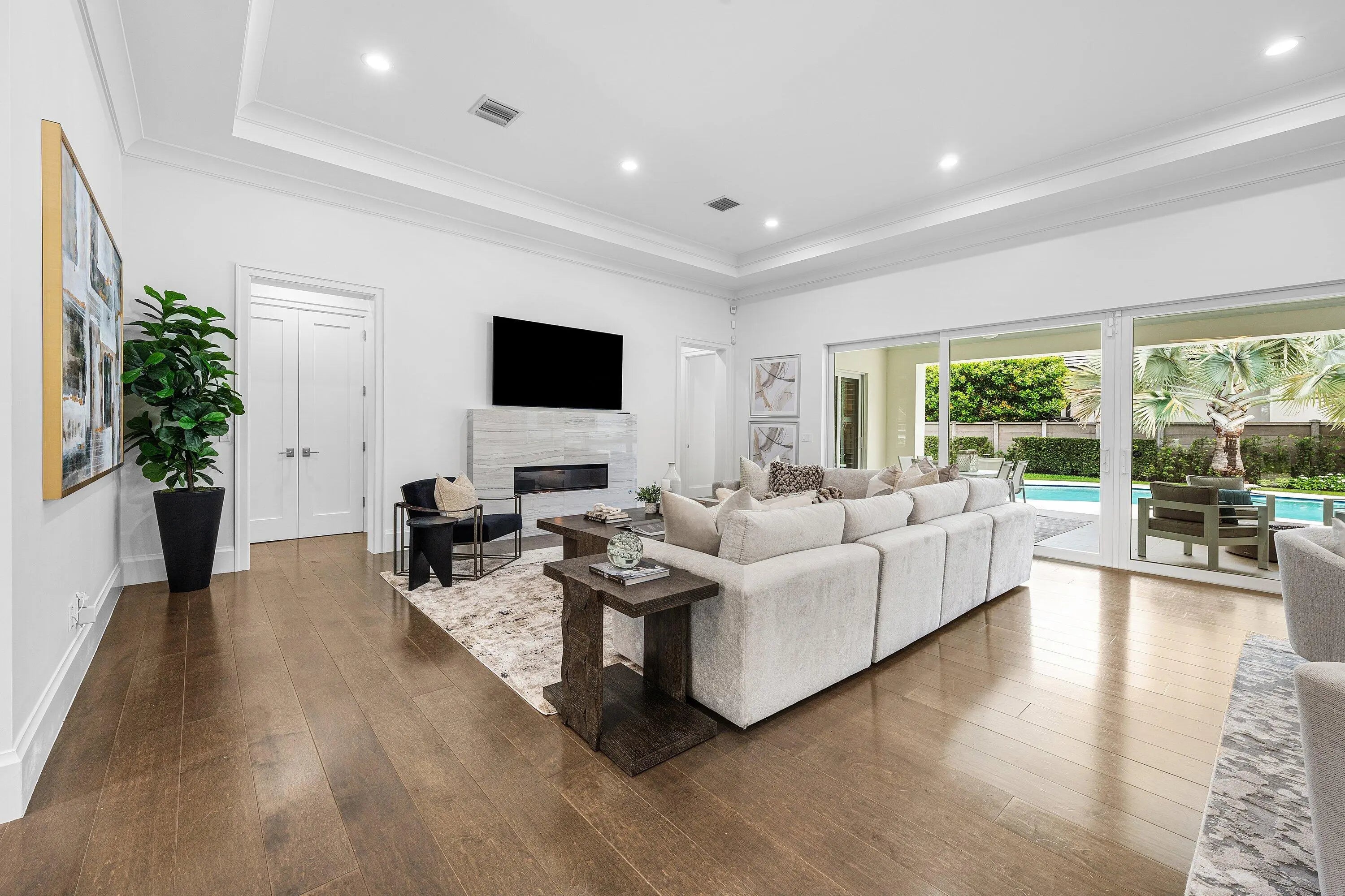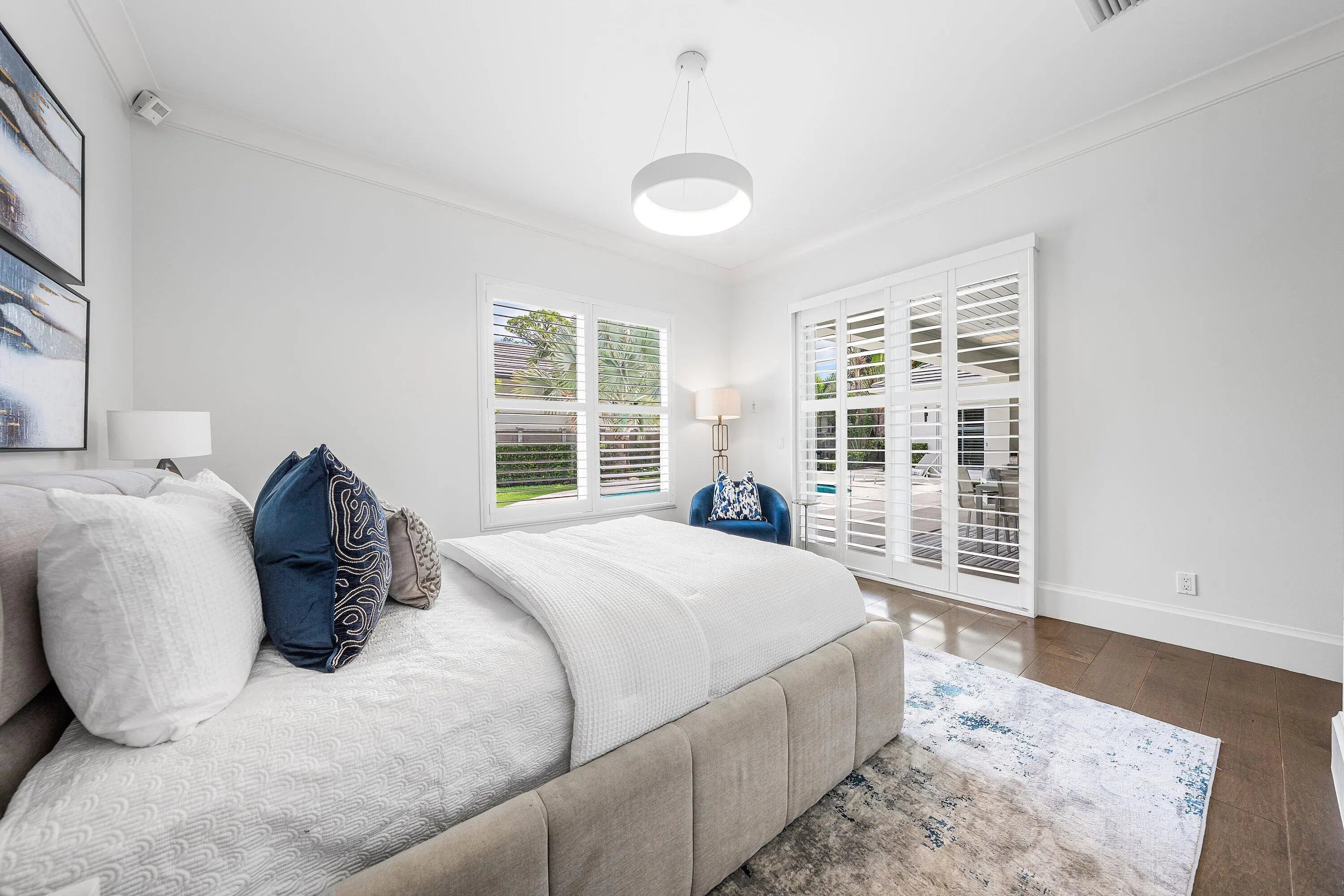 Experience refined single-story living in one of East Boca Raton's most coveted and rarely available enclaves, adjacent to Old Floresta. Built in 2016, this exceptional ranch-style estate masterfully blends architectural sophistication with effortless livability—offering a seamless floorplan ideal for families and those who value both comfort and elegance. Spanning a thoughtfully designed layout, the residence features five spacious en-suite bedrooms and a refined powder bath, creating the perfect balance of privacy and functionality. The single-level design enhances everyday living, providing ease, flow, and a true sense of home. At the heart of the residence, a beautifully appointed chef's kitchen showcases a new dual-fuel gas cooktop, premium appliances, and an open-concept design that flows seamlessly into the grand great room—complete with an electric fireplace and built-in bar with wine chiller—ideal for both intimate gatherings and elevated entertaining. Designed with today's lifestyle in mind, the home also includes a dedicated office or den, while a privately situated fifth bedroom with its own entrance and garage is perfect for guests, in-laws, or live-in staff. Outdoors, a resort-style setting awaits with a heated and cooled pool, covered patio, and a thoughtfully designed entertaining station featuring a sink, undercounter refrigerator, and generous serving counter—perfect for effortless indoor-outdoor living and hosting. Additional features include impact glass throughout, natural gas, a full-house generator, an Aqualite reverse osmosis (R/O) water filtration system, spacious laundry room, and comprehensive security system. A split three-car garage completes the offering. Perfectly positioned just minutes from Mizner Park, The Boca Raton, pristine beaches, and within close proximity to the area's top-rated public and private schools, fine dining, and luxury shopping—this is a rare opportunity to own a move-in ready, single-story estate in a highly sought-after East Boca location. LUXURY. LIFESTYLE. LOCATION.