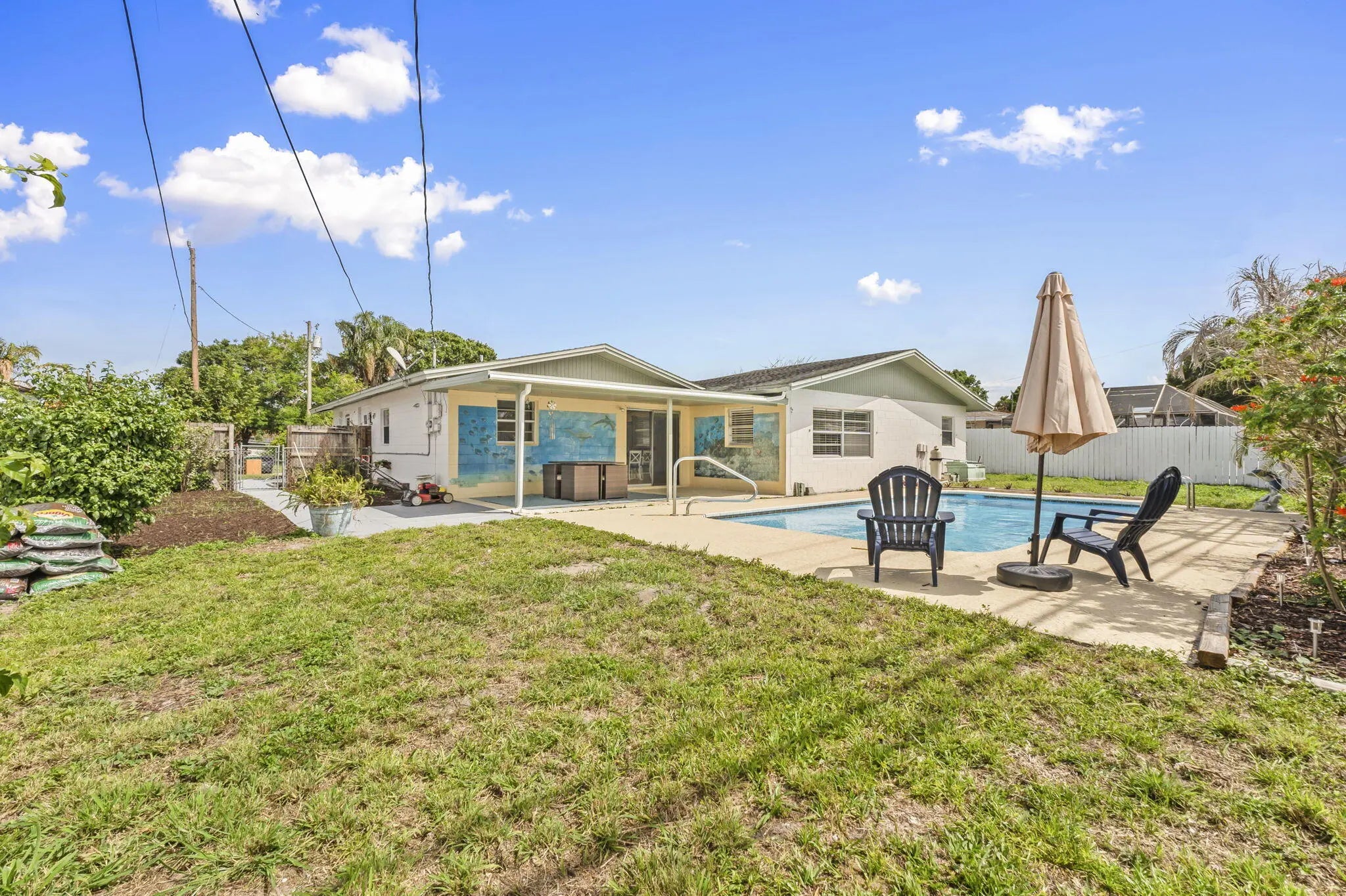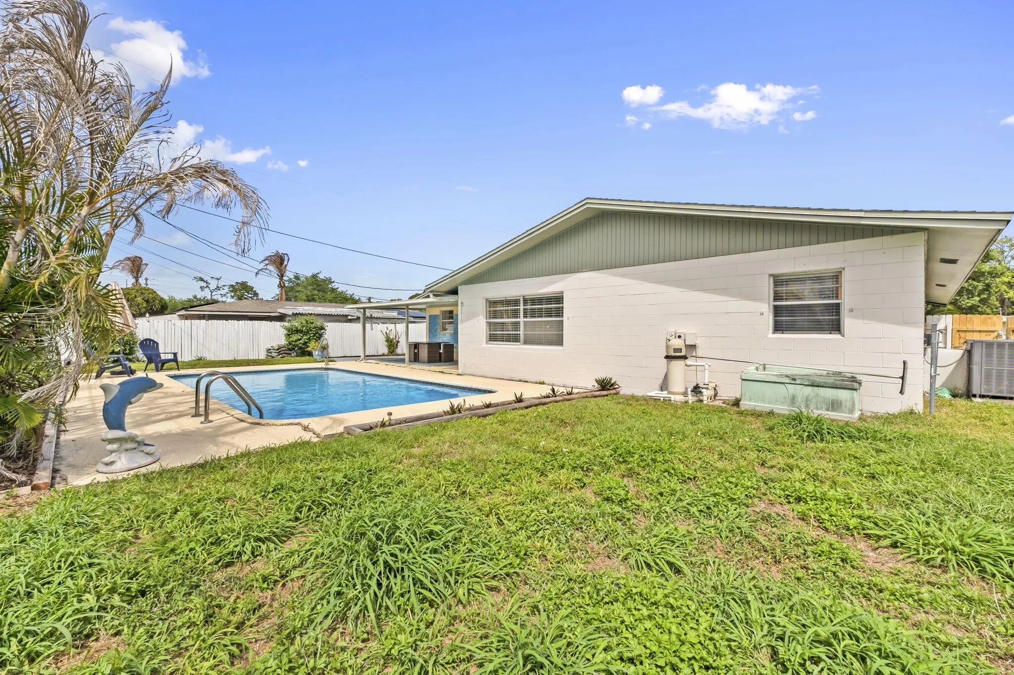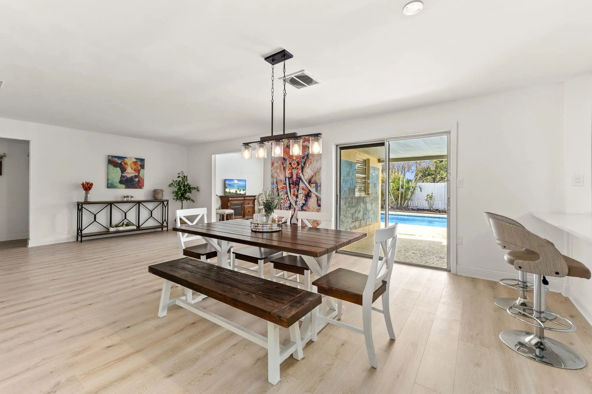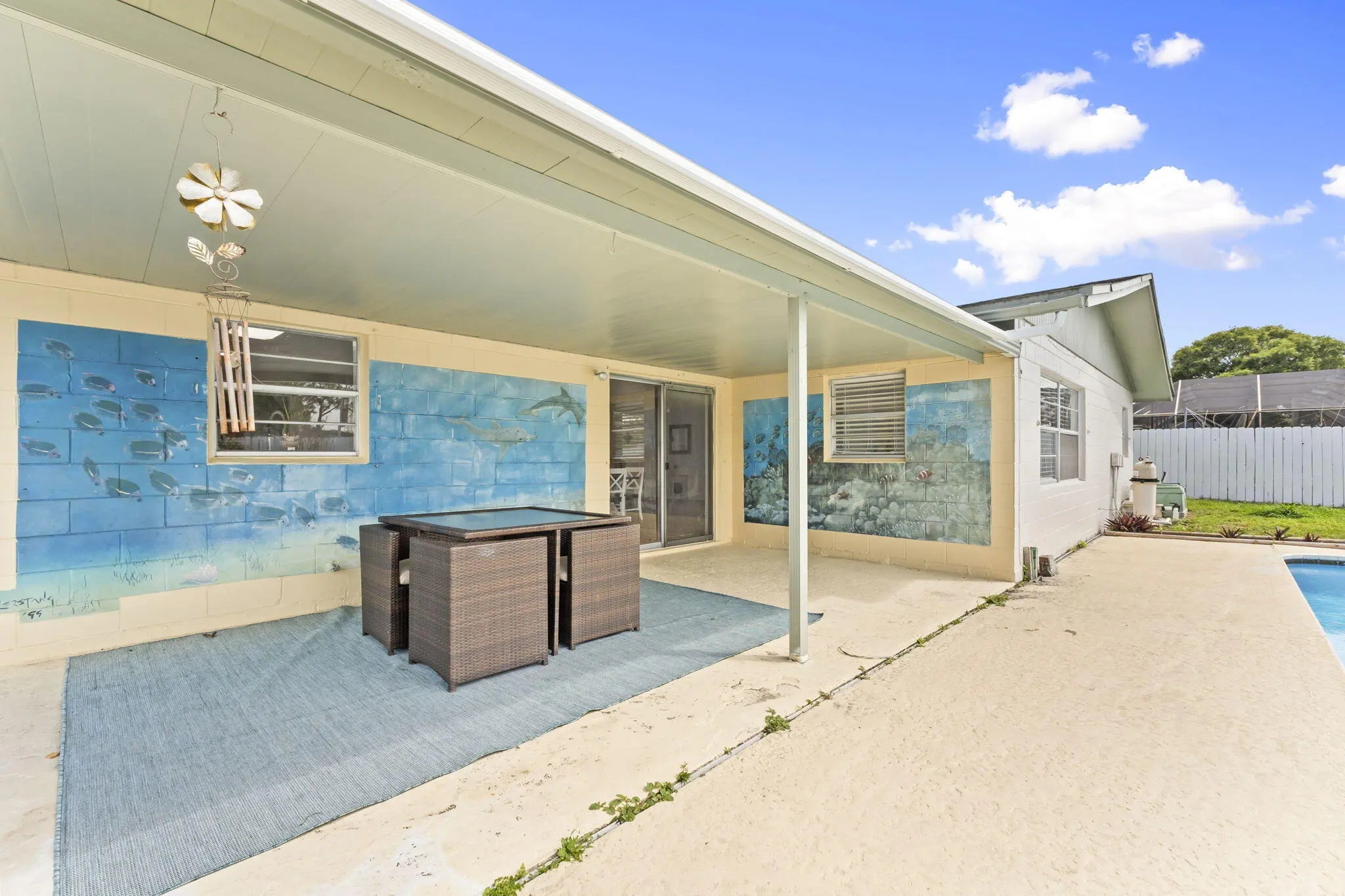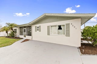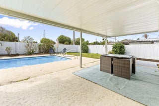 This beautifully remodeled pool home offers a unique layout with a 3-bedroom, 2-bath main residence plus a 1-bedroom, 1-bath apartment—perfect for guests, extended family, or rental income. The home features a large open kitchen that flows into the dining and living areas, creating the ideal space for entertaining. Laminate flooring runs throughout the living areas, giving the home a clean, modern feel. A separate 10x11 flex room can easily be converted into another bedroom or a private office. Enjoy Florida living outdoors with a refinished pool, fenced backyard, and a large front screened porch complete with hanging swings and bamboo ceilings—a perfect spot to relax and unwind. With its versatile floor plan, upgraded finishes, and inviting outdoor spaces, this home is move-in ready.