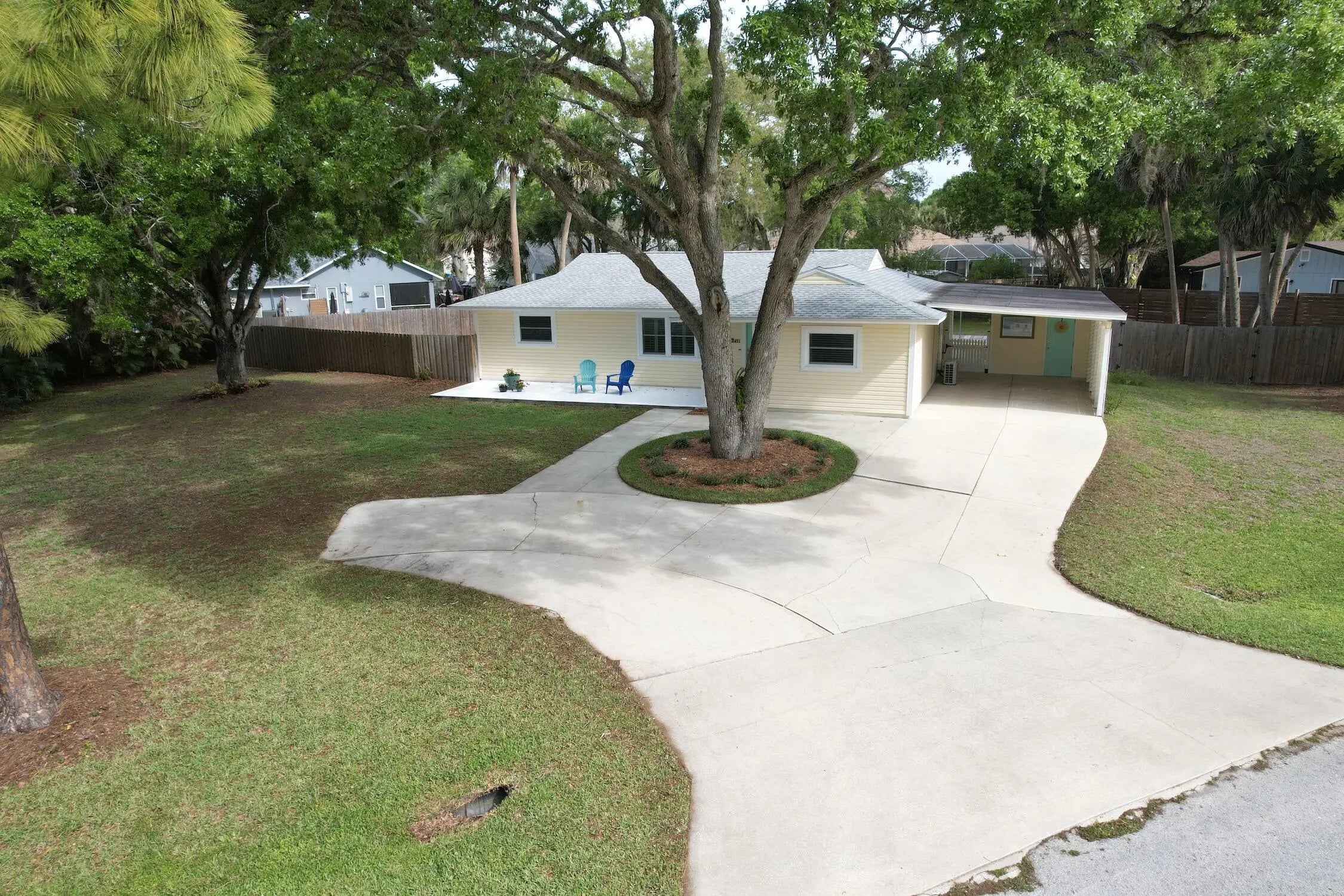 Welcome to your private oaisis nestled on a 1/2 acre corner lot. This 3-bedroom, 2-bath home is offered FULLY FURNISHED. Come fall in love as this home offers a relaxed vibe, perfect as a full-time resident or tranquil retreat. The stunning kitchen features granite countertops and newer appliances with ample storage. the backyard is ideal for entertaining and unwinding, with ample space for an RV, boat or garden. There are numerous upgrades taht include New Pool 2026, Impact doors and windows with low E 2024, New Roof and A/C 2022, Hot water heater 2023, New septic 2018 and reverse osmosis filtration system. This home won't last long....BRING YOUR TOYS!
