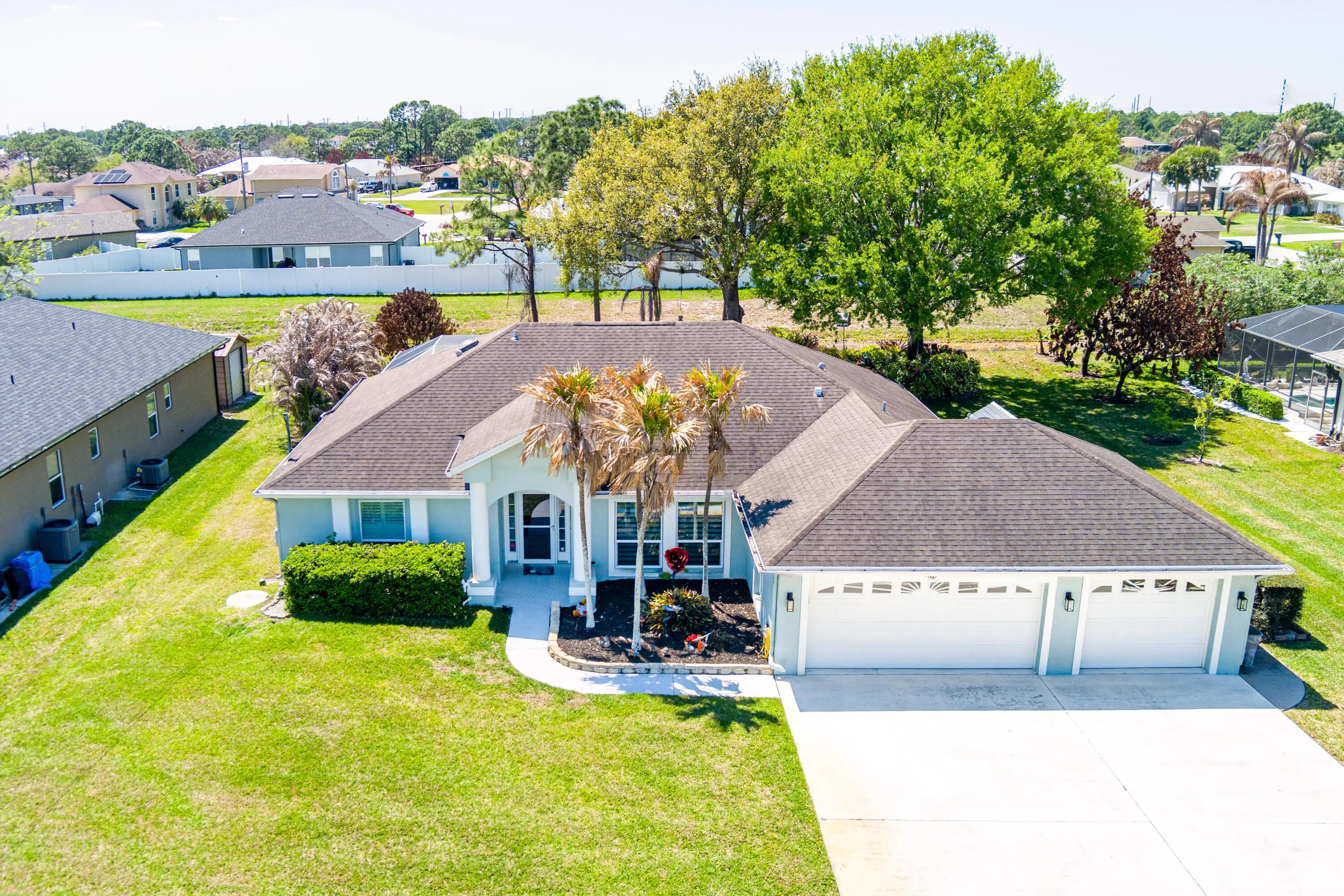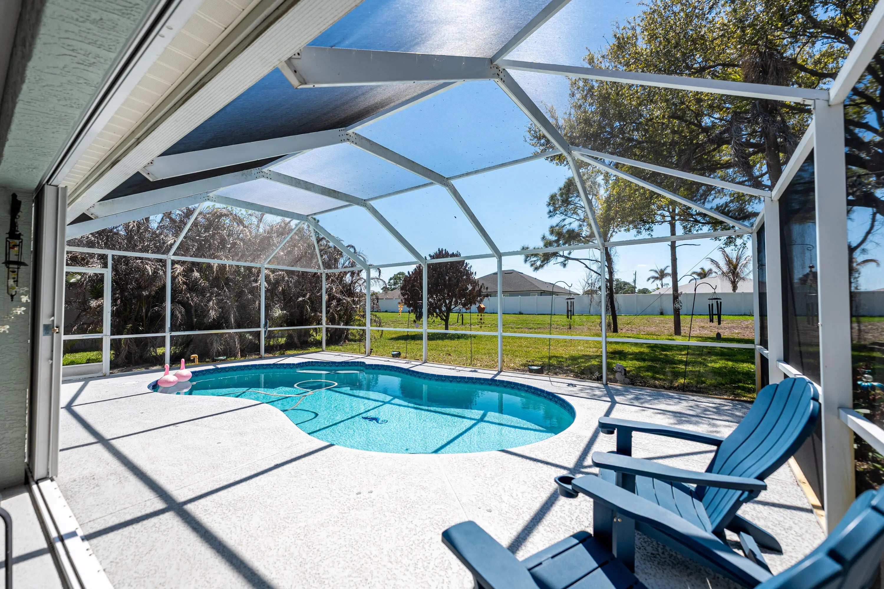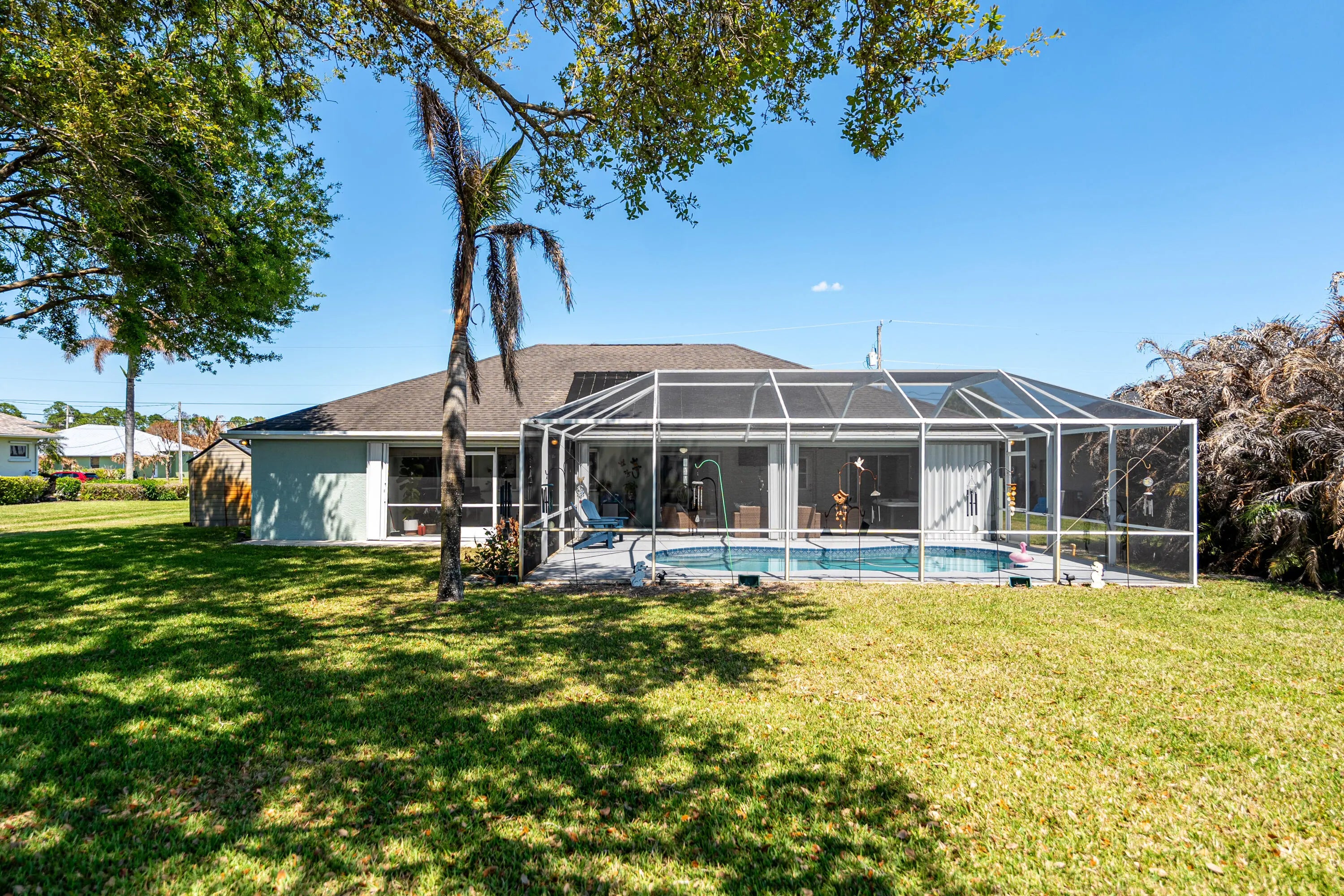 WOW — 3-bedroom, 2-bath pool home in the heart of Torino with IMPACT WINDOWS. Screened pool, 3-car garage, no carpeting, oversized .29-acre lot, and a massive 48-foot covered lanai — this is the Florida lifestyle buyers are searching for. This meticulously maintained home offers 1,634 sq ft under air with an expansive screened outdoor living area that truly lives like a second family room—perfect for entertaining, relaxing, or enjoying the pool year-round. Inside, you'll find a bright, open floor plan with an updated kitchen featuring granite countertops, white cabinetry, and stainless steel appliances. Sliding glass doors seamlessly connect the interior to the extended lanai, maximizing indoor-outdoor living. The 3-car garage includes a rear garage door in the single bay - —ideal for a workshop, hobbyist, or easy backyard access. A large shed is also included for additional storage. Located in desirable Torino section of St Lucie West. Conveniently located near shopping, dining, and major highways; 145 minutes to Tradition.