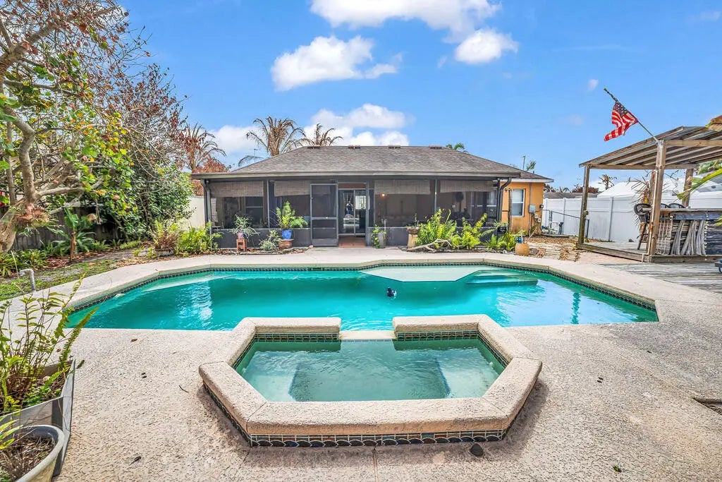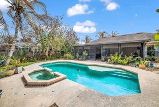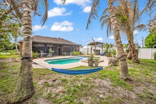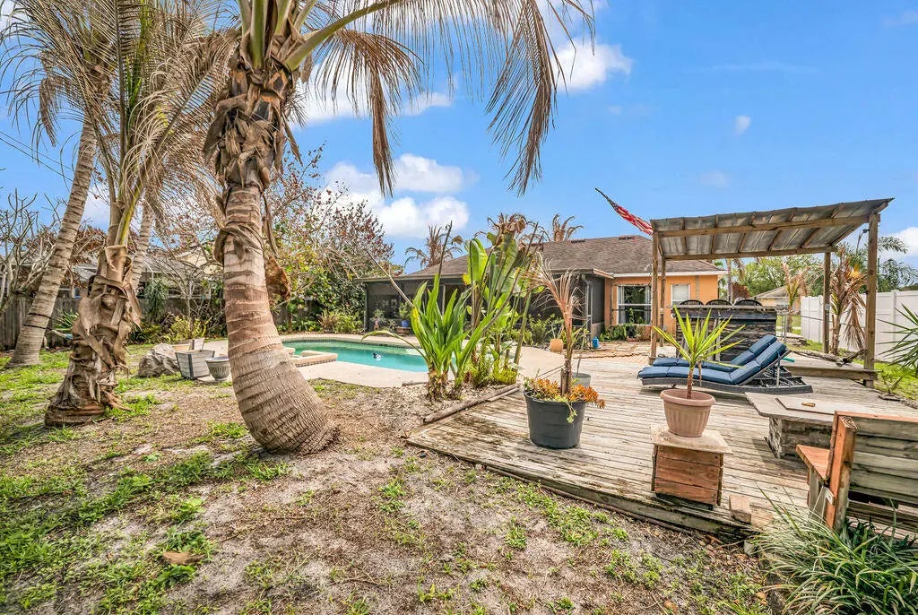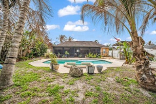 New roof to be installed prior to closing! Welcome to your private paradise—this beautiful 3-bedroom, 2-bath CBS pool home, built in 2008, offers the perfect blend of comfort and outdoor living. The backyard is a true retreat, featuring a crystal-clear pool, custom decking, lush tropical landscaping, and full fencing for added privacy. Enjoy evenings by the fire pit or entertain on the spacious covered lanai. Inside, you'll find an eat-in kitchen, cathedral ceilings, and a desirable split floor plan. The extended driveway provides ample space for a boat or RV. City utilities with well-fed irrigation. Schedule your private showing today!
