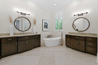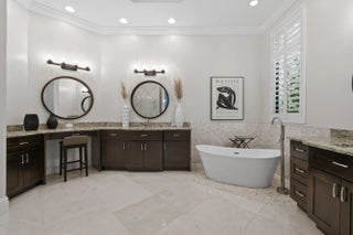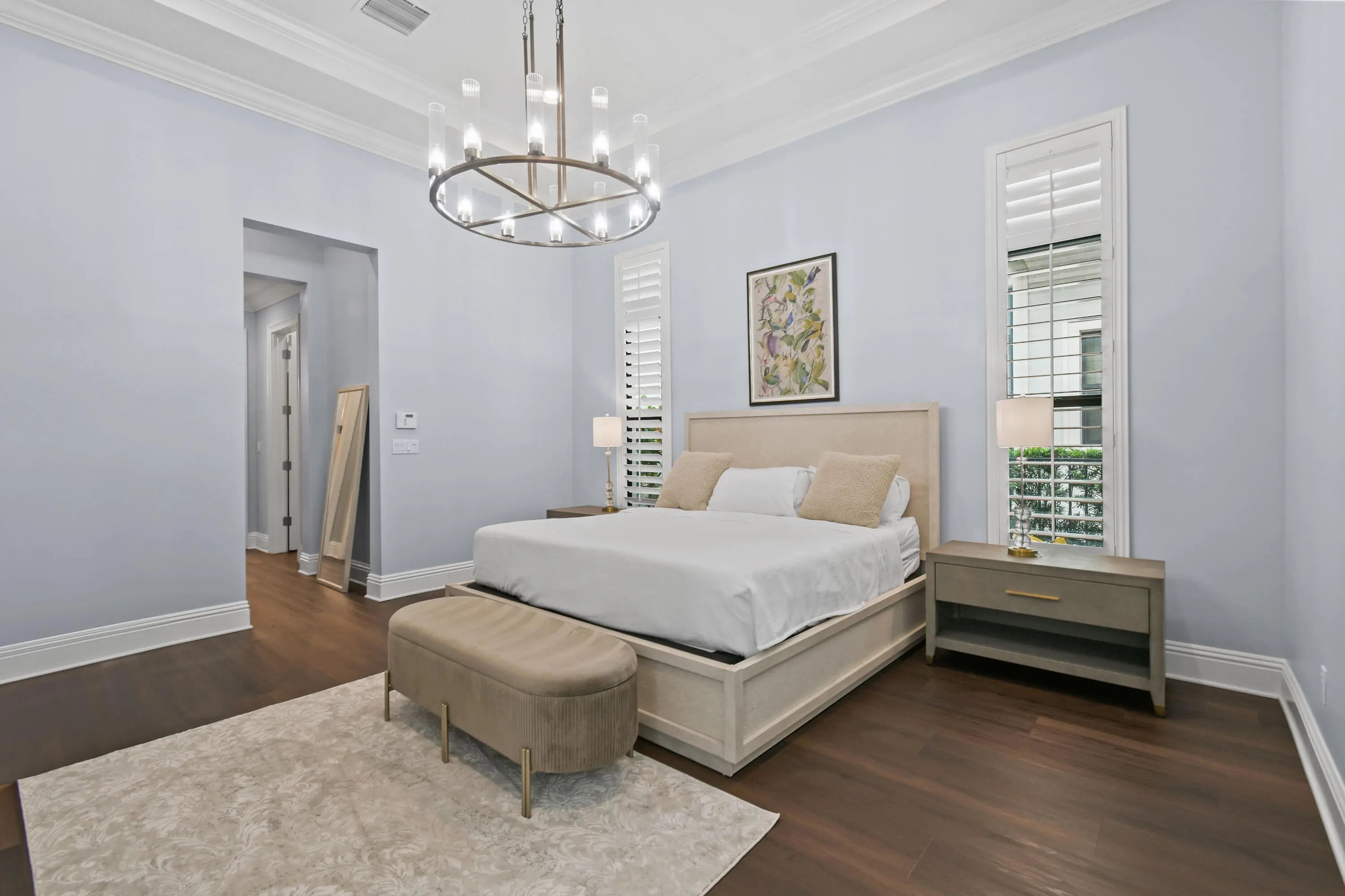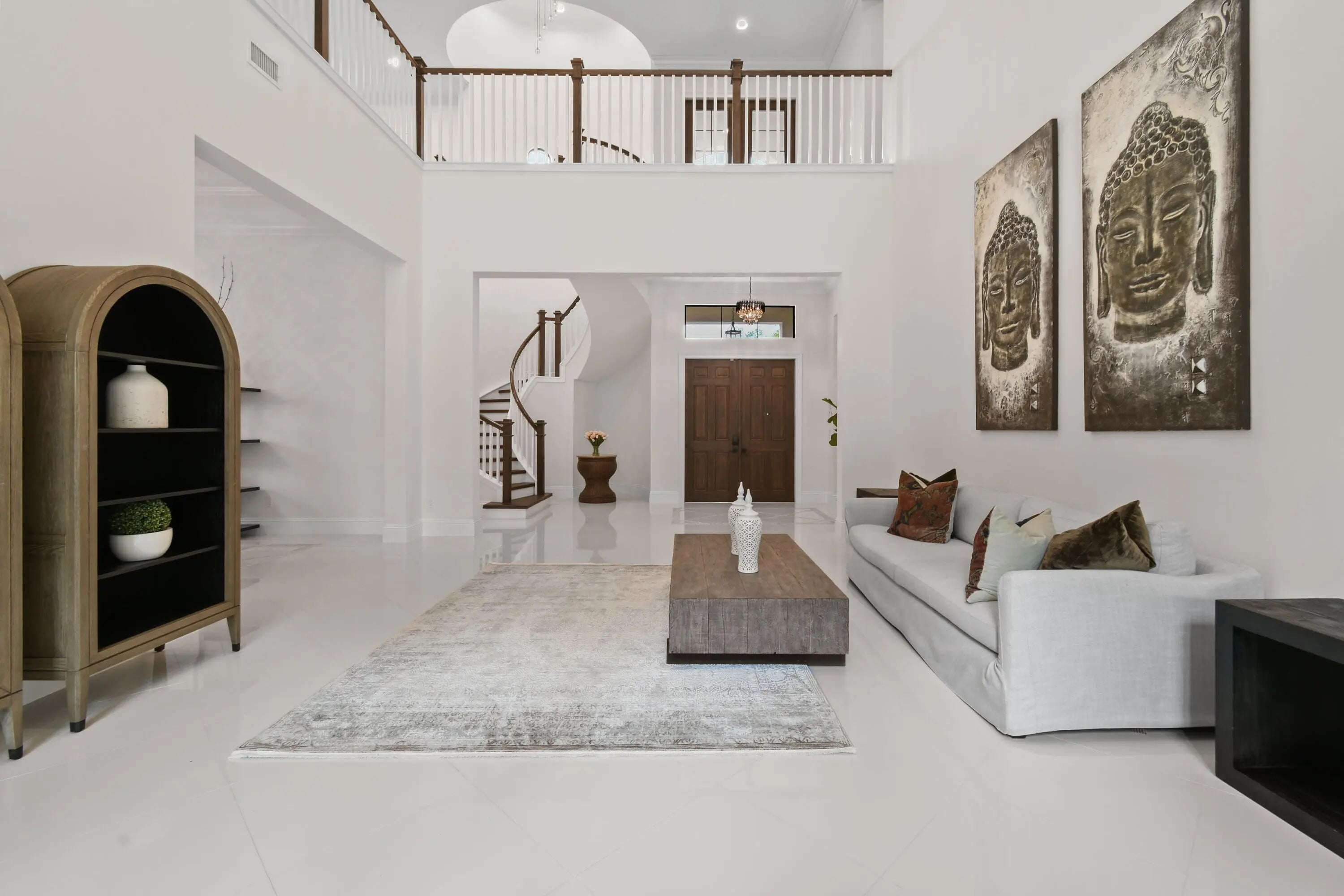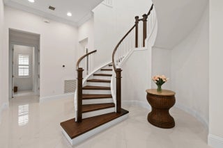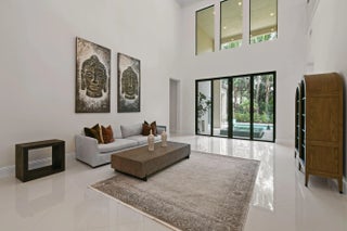 Welcome to luxurious living in the exclusive gated community of Gardenia Isles! This stunning residence offers an unparalleled blend of elegance, comfort and functionality. Upon entering through the elegant wooden double doors, you are greeted by soaring 25 foot ceilings and a grand staircase, setting the tone for the exquisite craftsmanship and attention to detail found throughout this expansive home. Heated pool & hot tub. Over 5,000 SF of meticulously designed living space. The main level features a thoughtfully laid out floor plan with high ceilings, a formal dining rom, and a huge kitchen equipped with top-of-the-line Thermador appliances. Boasting 5 bedrooms + office, 5 full bathrooms, 2 half baths, including a cabana bath for the heated pool and spa. Furnished annual lease. Primary and office down. 4 bedrooms + loft up. Hurricane impact windows.
