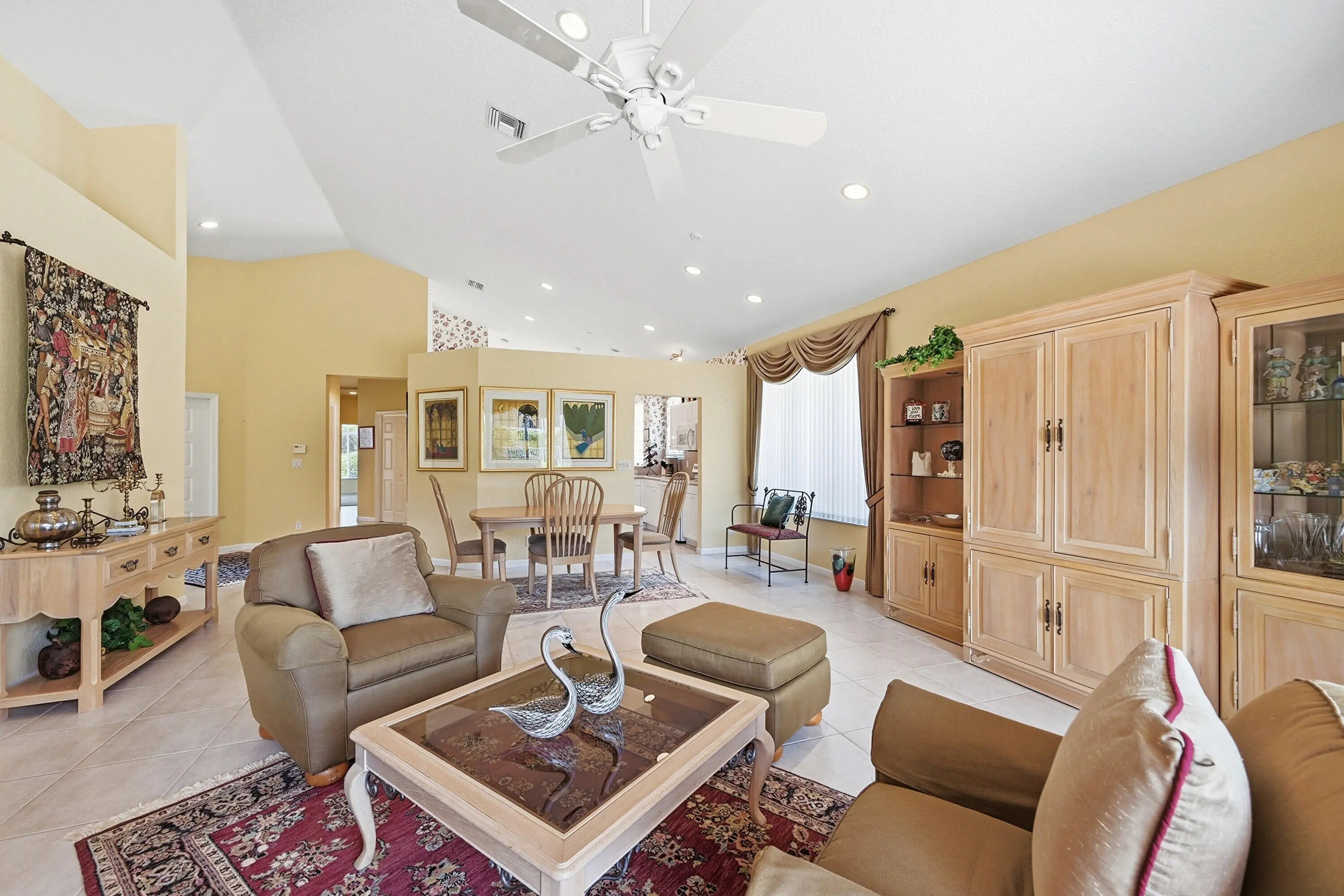 Welcome to this stunning 3-bedroom, 2.5-bath home located in the highly sought-after Hammock Point at Boca Lago! This exclusive gated enclave of just 20 homes offers the perfect blend of tranquility and convenience. Tucked away from main roads, you are still just minutes from major shopping, dining, A-rated schools, pristine beaches, highways, and airports. Step inside to discover a bright, open floor plan featuring soaring vaulted ceilings and a spacious eat-in kitchen perfect for entertaining. The desirable split bedroom plan ensures ultimate privacy. Outside, relax on your large covered patio overlooking a deep, fully fenced yard. Enjoy peace of mind with accordion hurricane shutters. The HOA covers the 24-hour gate, landscaping, exterior painting, and roof cleanings!