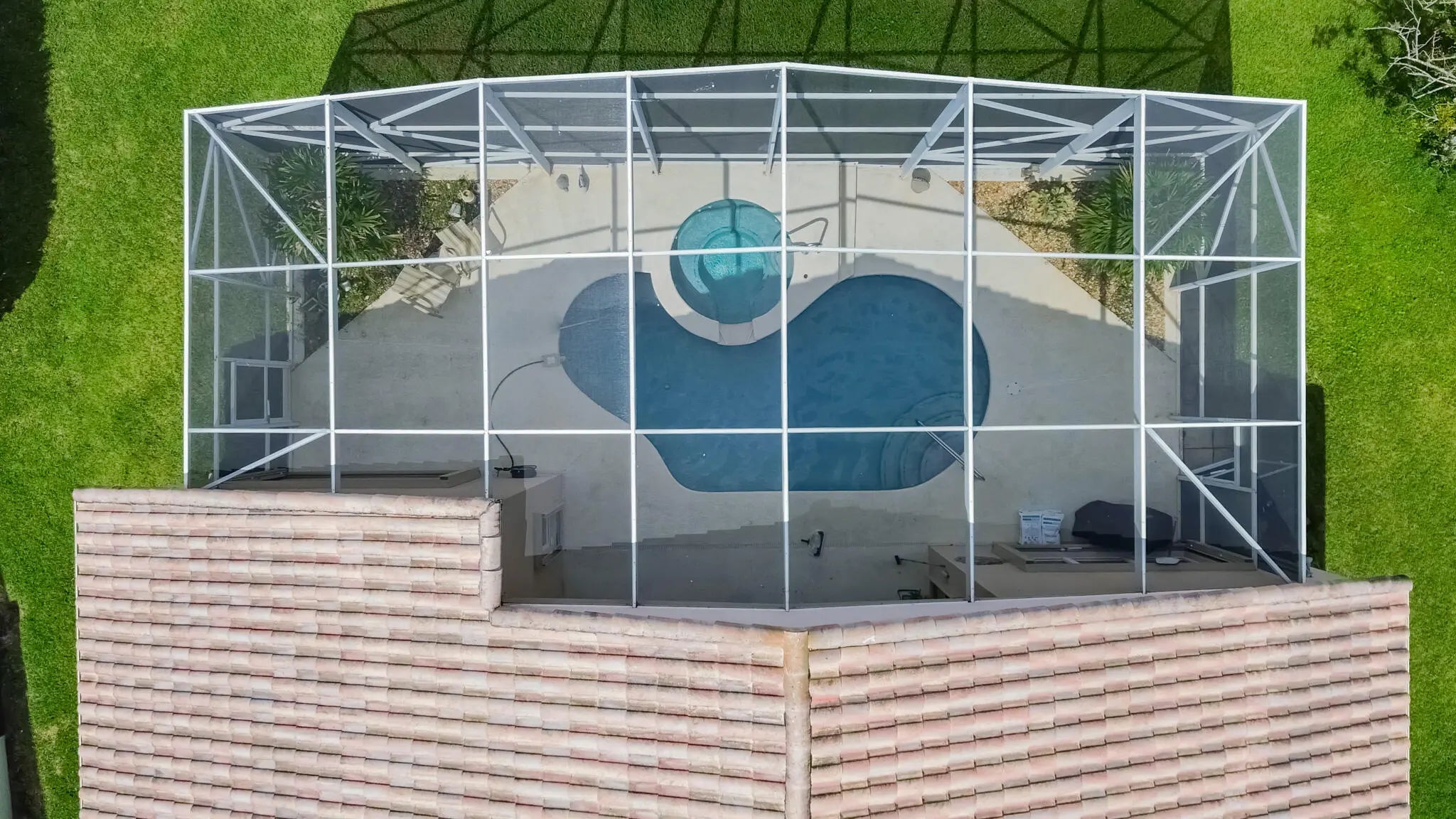 Gas Heat, Gunite, In Ground, Pool/Spa Combo, Screen Enclosure, Salt Water, Child Gate, Equipment Included, Private