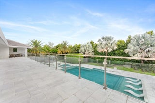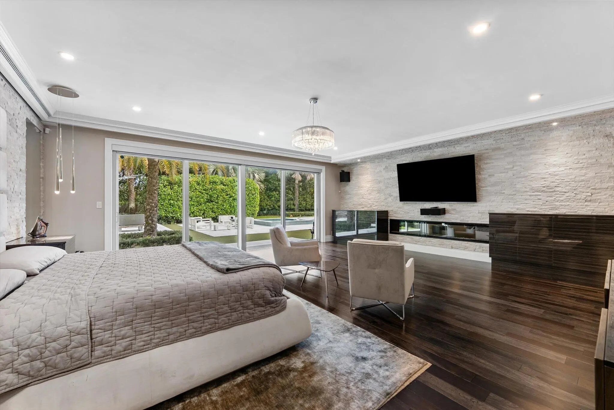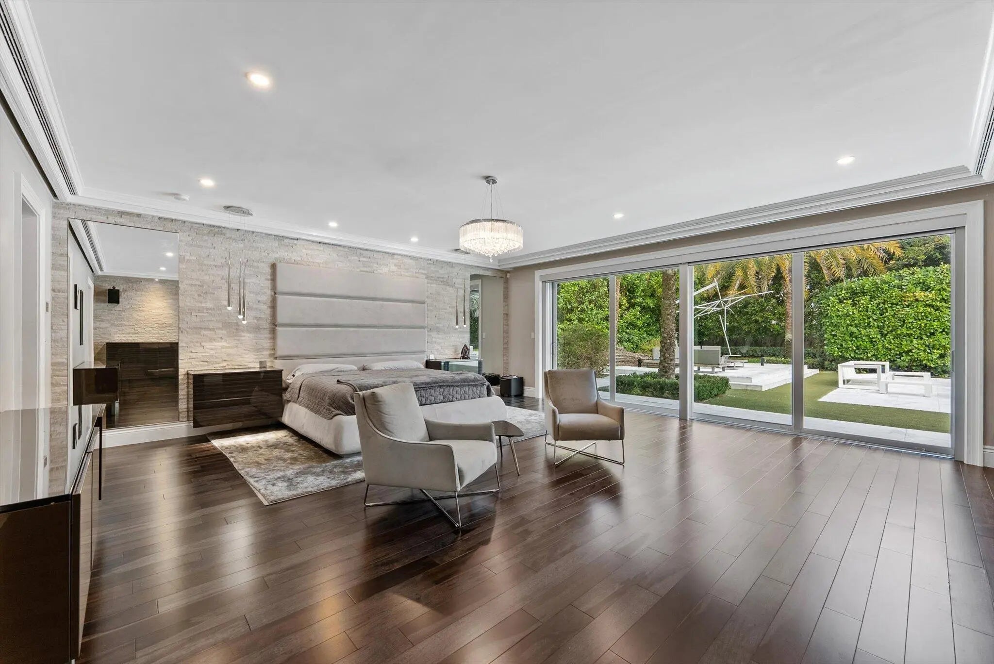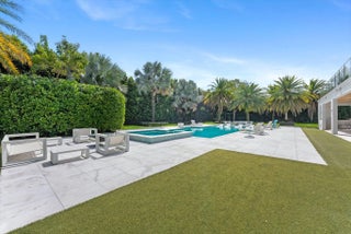 Set behind double gates in the prestigious enclave of Fieldbrook Estates, this exceptional estate redefines luxury living. Spanning nearly 9,000 square feet, the residence offers 7 bedrooms and 7 bathrooms, including a separate two-story guest house, all set on a beautifully landscaped one-acre lot designed for privacy and resort-style living. Sun-filled interiors showcase open, elegant living spaces finished with porcelain tile, hurricane-impact windows, and thoughtful custom details throughout. The chef's kitchen, complete with a walk-in pantry, flows seamlessly into formal and casual gathering areas ideal for entertaining. The first-floor primary suite is a true retreat, featuring three walk-in closets, a spa-inspired bath, serene pool views, and an outdoor Jacuzzi. Additional highlights include an office, dry sauna, and expansive family room, while the upper level offers four additional bedrooms, a second family room, and a spacious upstairs suite. Outdoors, the private backyard feels like a five-star escape with a resort-style pool and spa surrounded by lush landscaping. A six-bay showcase garage and impeccable attention to detail complete this rare offering—an extraordinary opportunity to own a private estate in one of the area's most sought-after communities.
