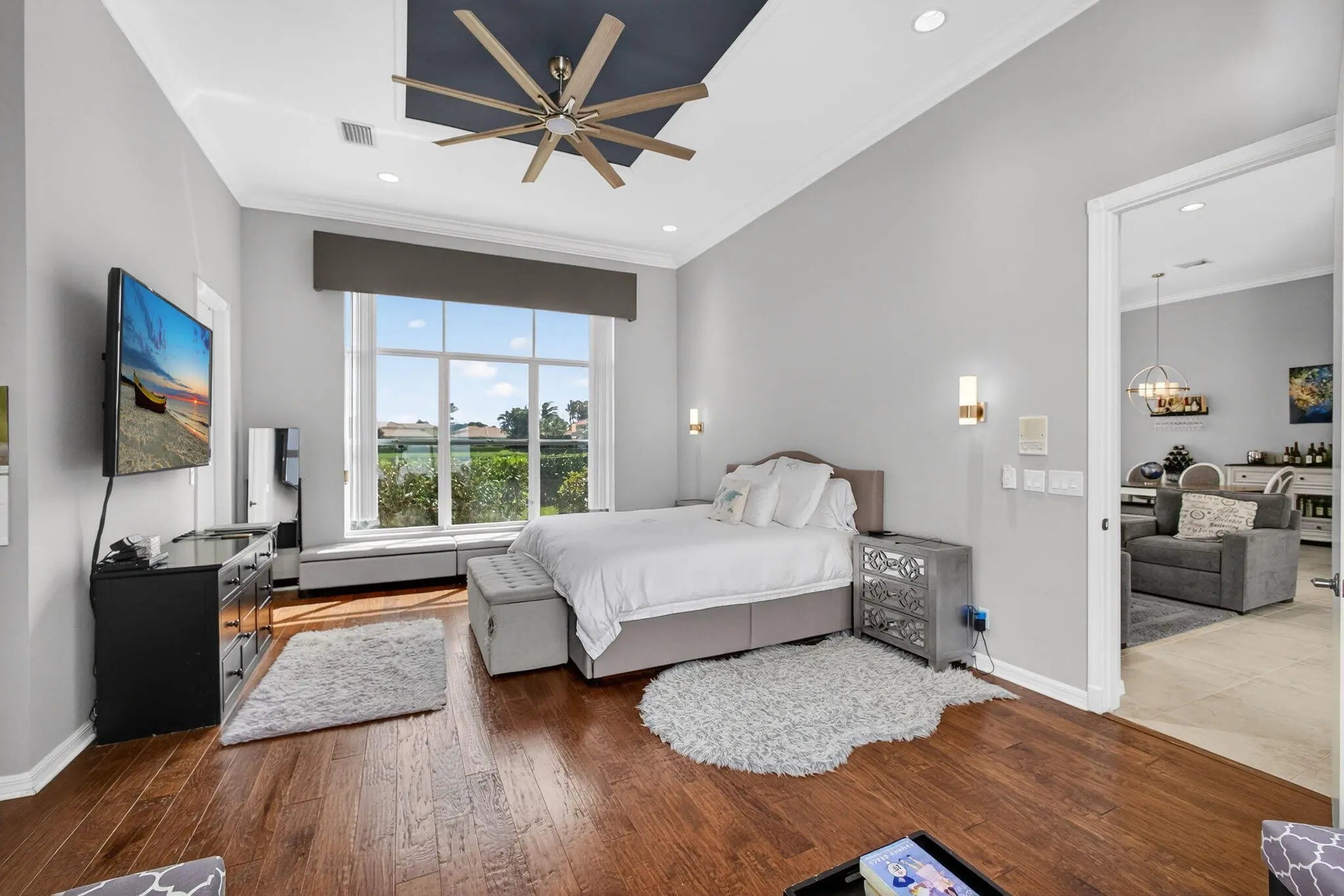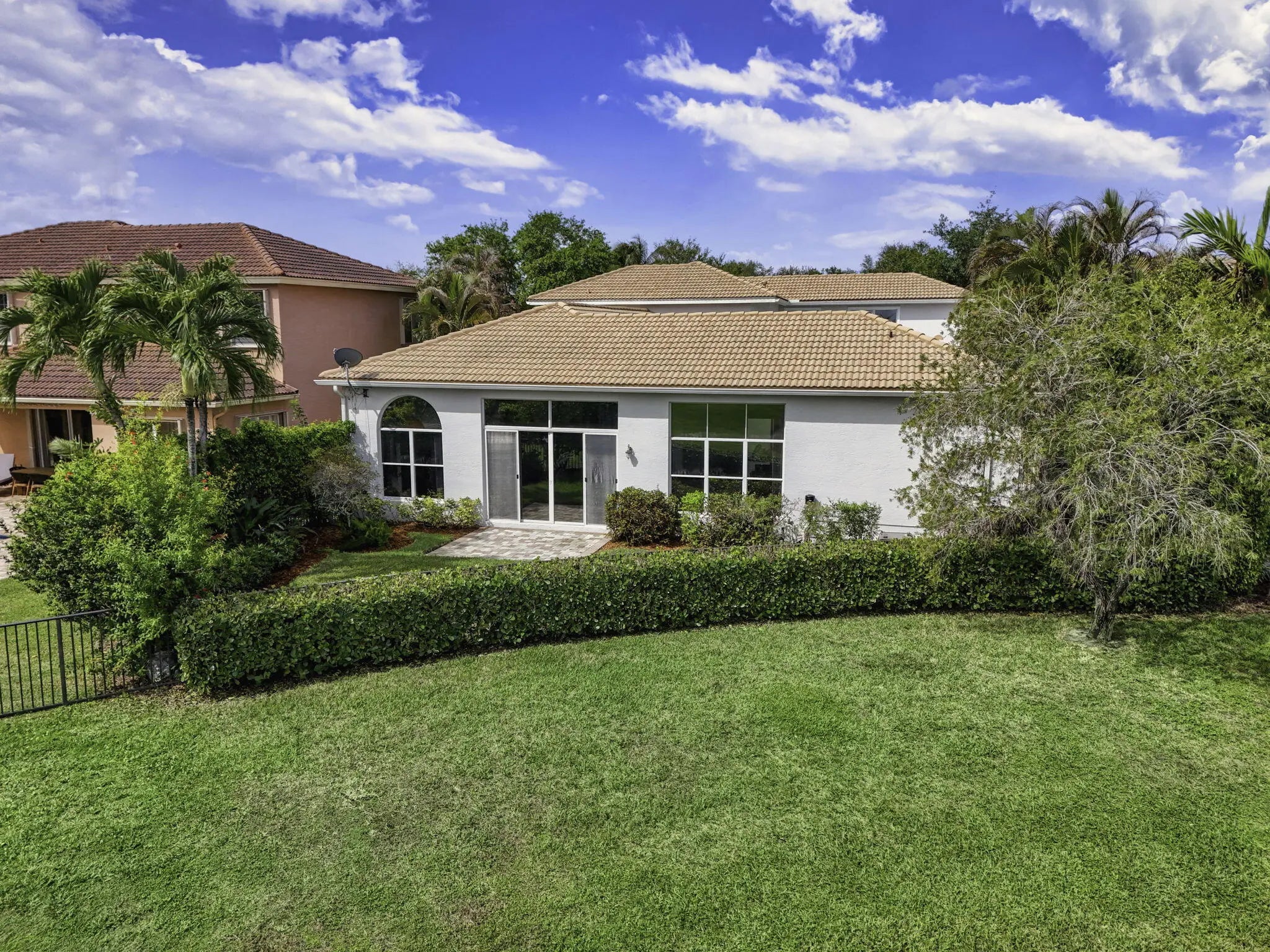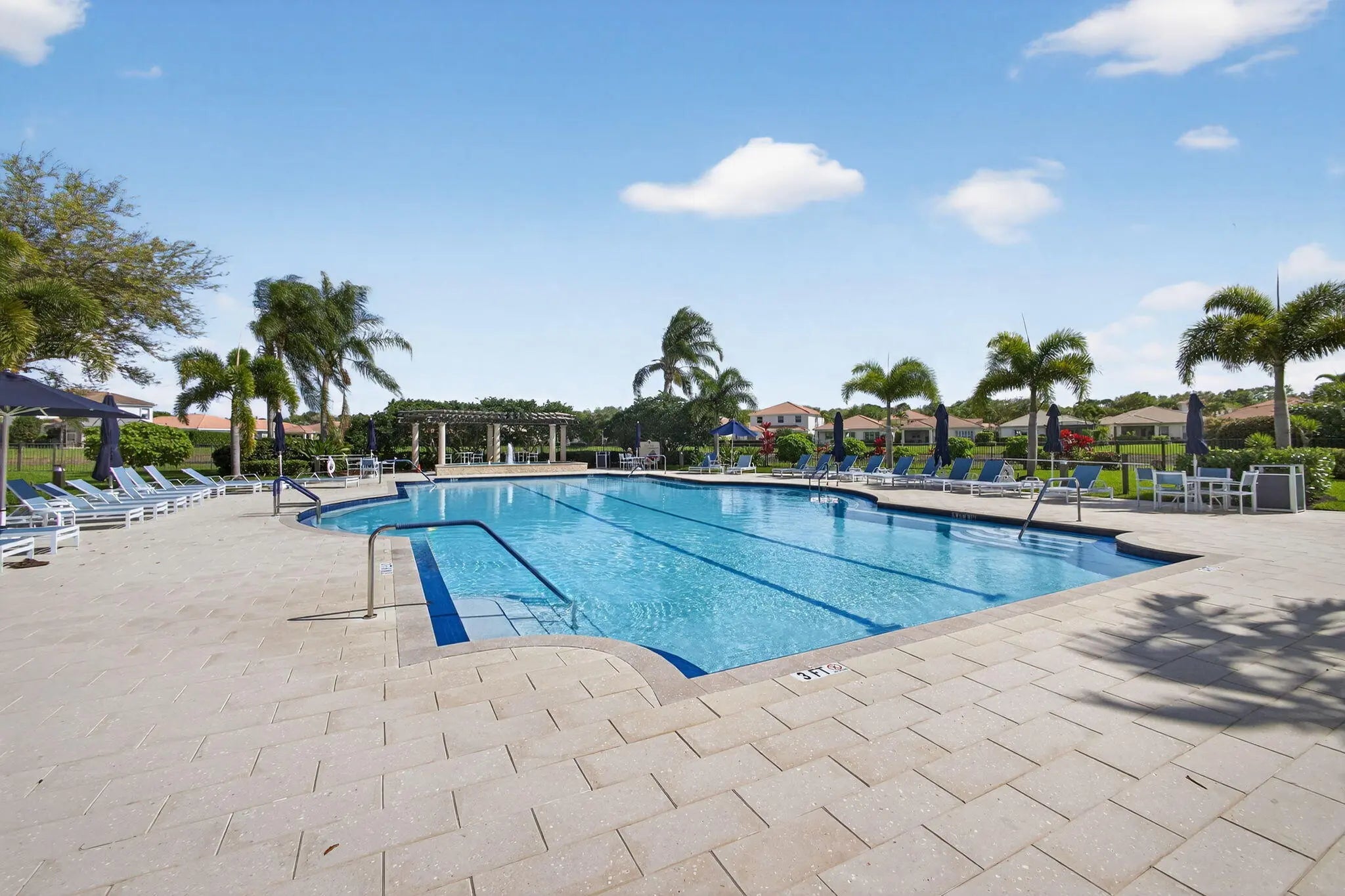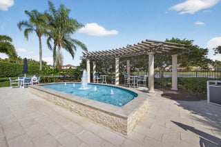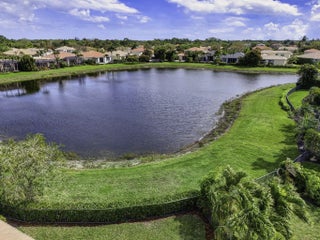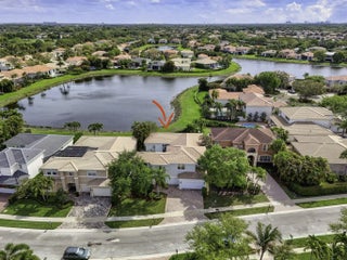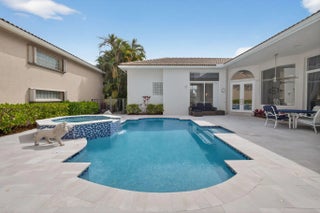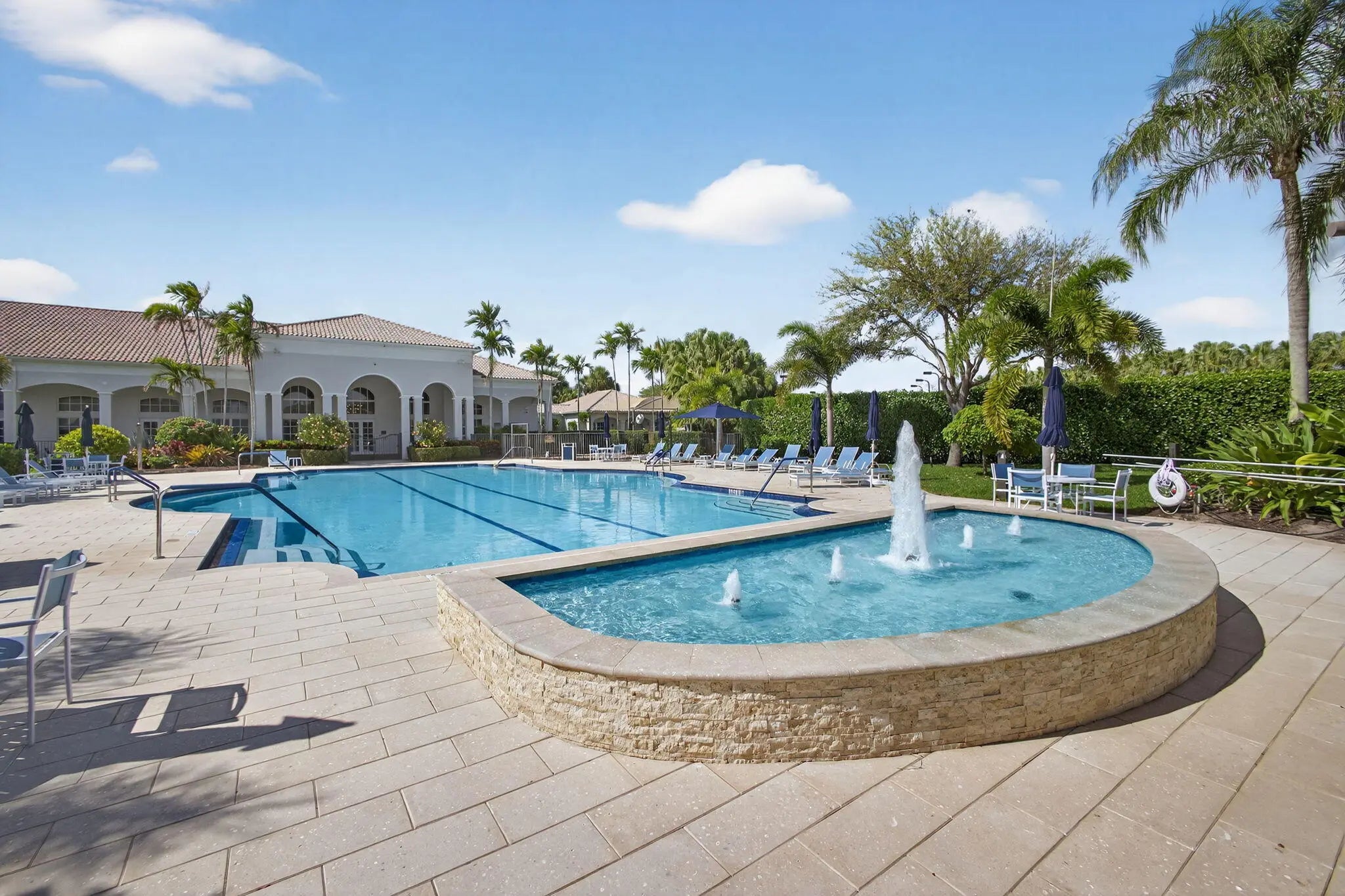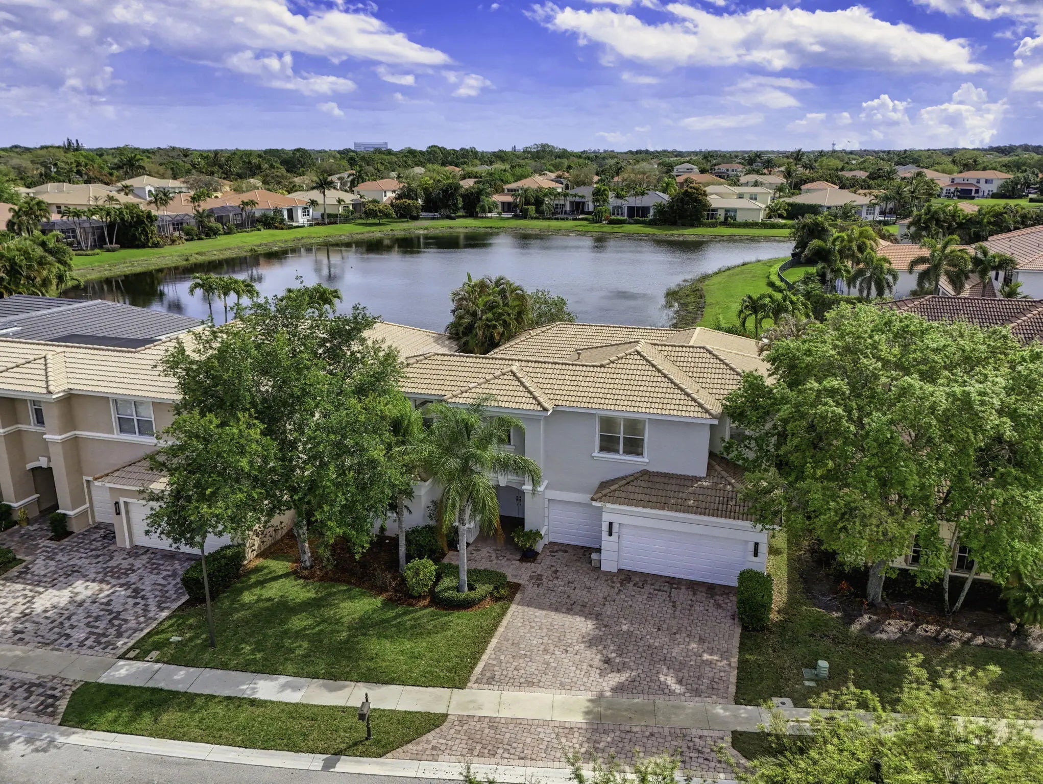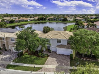 A must-see Courtyard Home in Mirabella on one of the Nicest Lake-Front Lots in the Community has both a fenced-in backyard & a spectacular redone Heated Pool/Spa w/Travertine Marble Courtyard & Patio. Nice Separate "Guest House by Pool. The 1st Floor features a Huge Master Suite with double Walk-in Closets w/ views of the lake & pool, High-Ceiling & Lots of Windows & Light around open Kitchen & Family Rm & open Living & Dining rm. Updated kitchen features quartz C-tops, wood cabinetry, updated Appliances, island & breakfast bar. Upstairs has newer composite flooring & features a Junior Suite, a nice Loft & two additional guest suites with Jack & Jill baths. Only Model with 5 BR's Plus a Loft, 4.5 Baths, Lots of Storage, 3 Car Garage & wow indoor & outdoor versatile & open living areas! Mirabella is one of the best-managed guard-gated resort-style communities in all of the Northern Palm Beaches with 24/7 Manned Guard Gate, resort-style amenities: a Renovated Clubhouse with Social Events and on-site property managers, one of the best Tennis Facilities, and a workout room for a non-country club community in the entire area, a separate kids' Clubhouse with a gated playground, and Heated Pool.