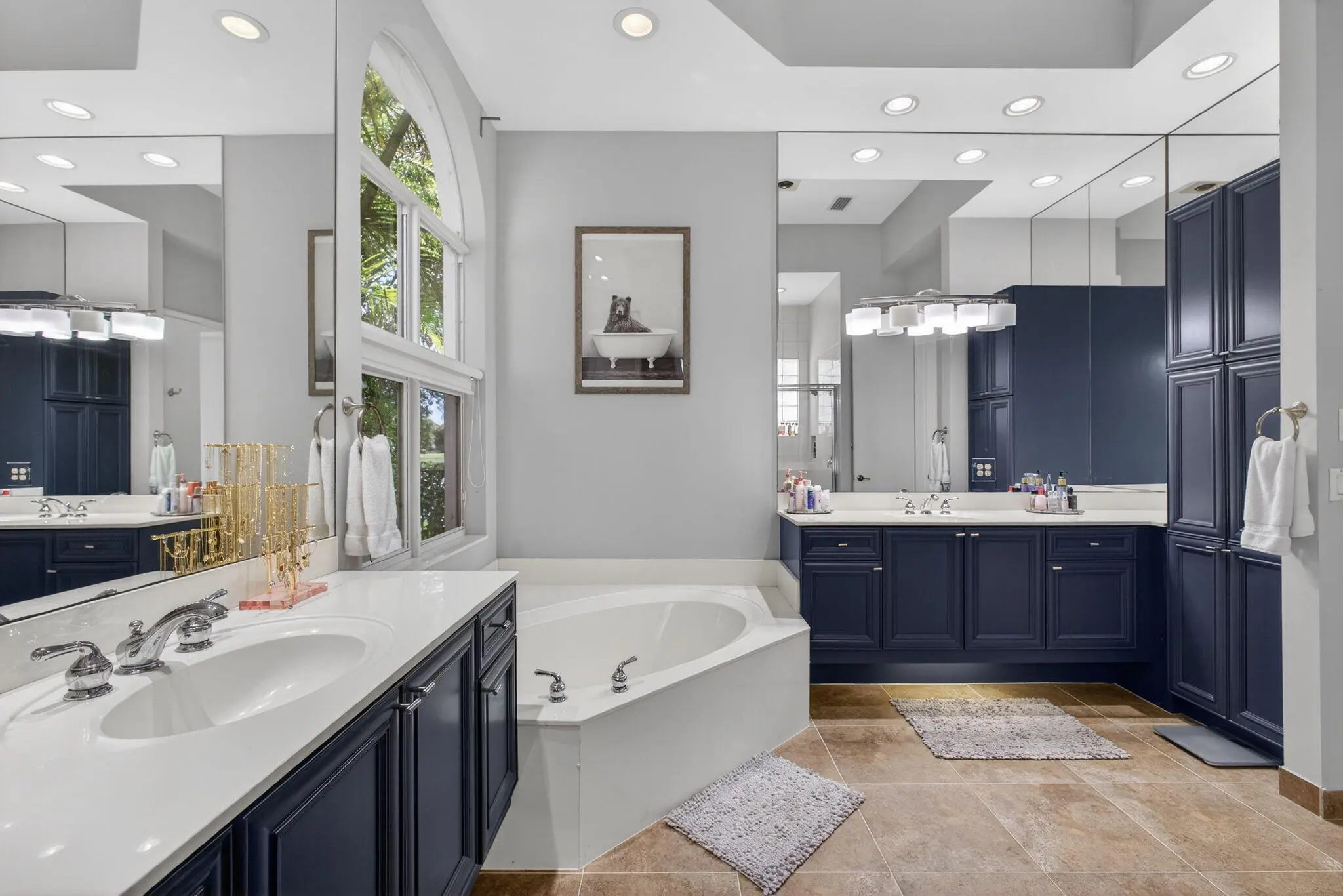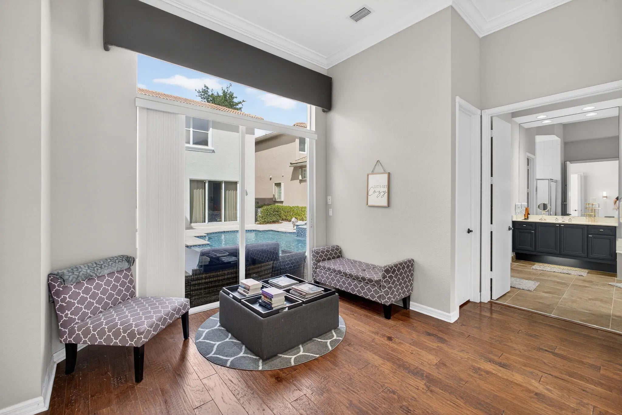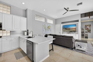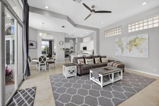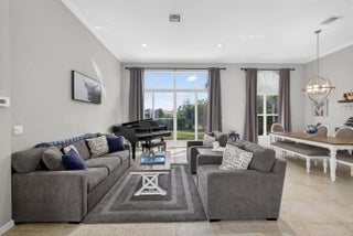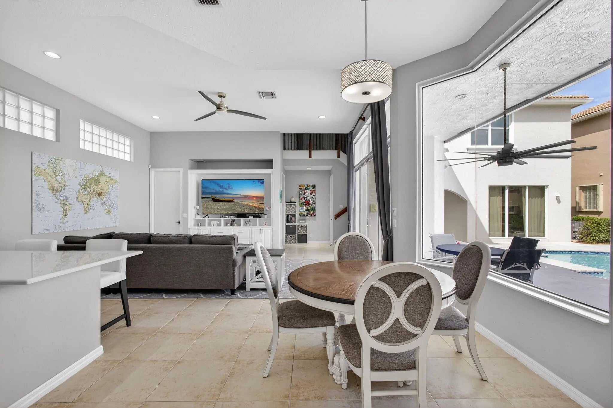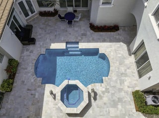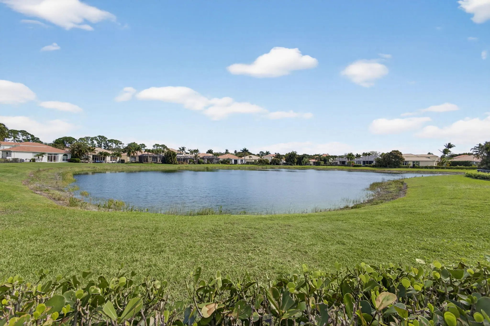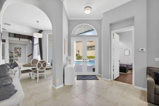 A must-see Courtyard Home in Mirabella on one of the Nicest Lake-Front Lots in the Community has both a fenced-in backyard & a spectacular redone Heated Pool/Spa w/Travertine Marble Courtyard & Patio. Nice Separate "Guest House by Pool. The 1st Floor features a Huge Master Suite with double Walk-in Closets w/ views of the lake & pool, High-Ceiling & Lots of Windows & Light around open Kitchen & Family Rm & open Living & Dining rm. Updated kitchen features quartz C-tops, wood cabinetry, updated Appliances, island & breakfast bar. Upstairs has newer composite flooring & features a Junior Suite, a nice Loft & two additional guest suites with Jack & Jill baths. Only Model with 5 BR's Plus a Loft, 4.5 Baths, Lots of Storage, 3 Car Garage & wow indoor & outdoor versatile & open living areas! Mirabella is one of the best-managed guard-gated resort-style communities in all of the Northern Palm Beaches with 24/7 Manned Guard Gate, resort-style amenities: a Renovated Clubhouse with Social Events and on-site property managers, one of the best Tennis Facilities, and a workout room for a non-country club community in the entire area, a separate kids' Clubhouse with a gated playground, and Heated Pool.