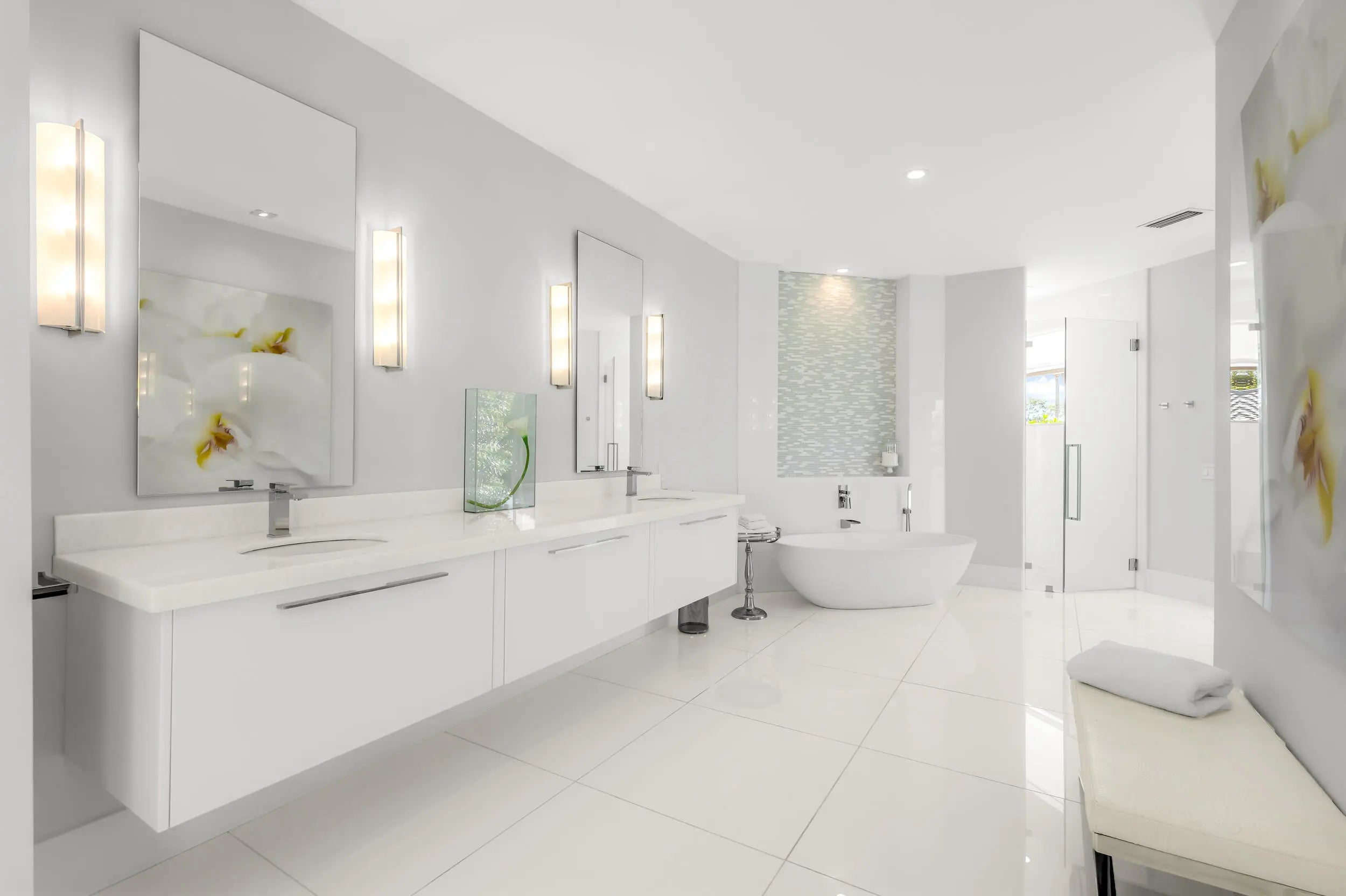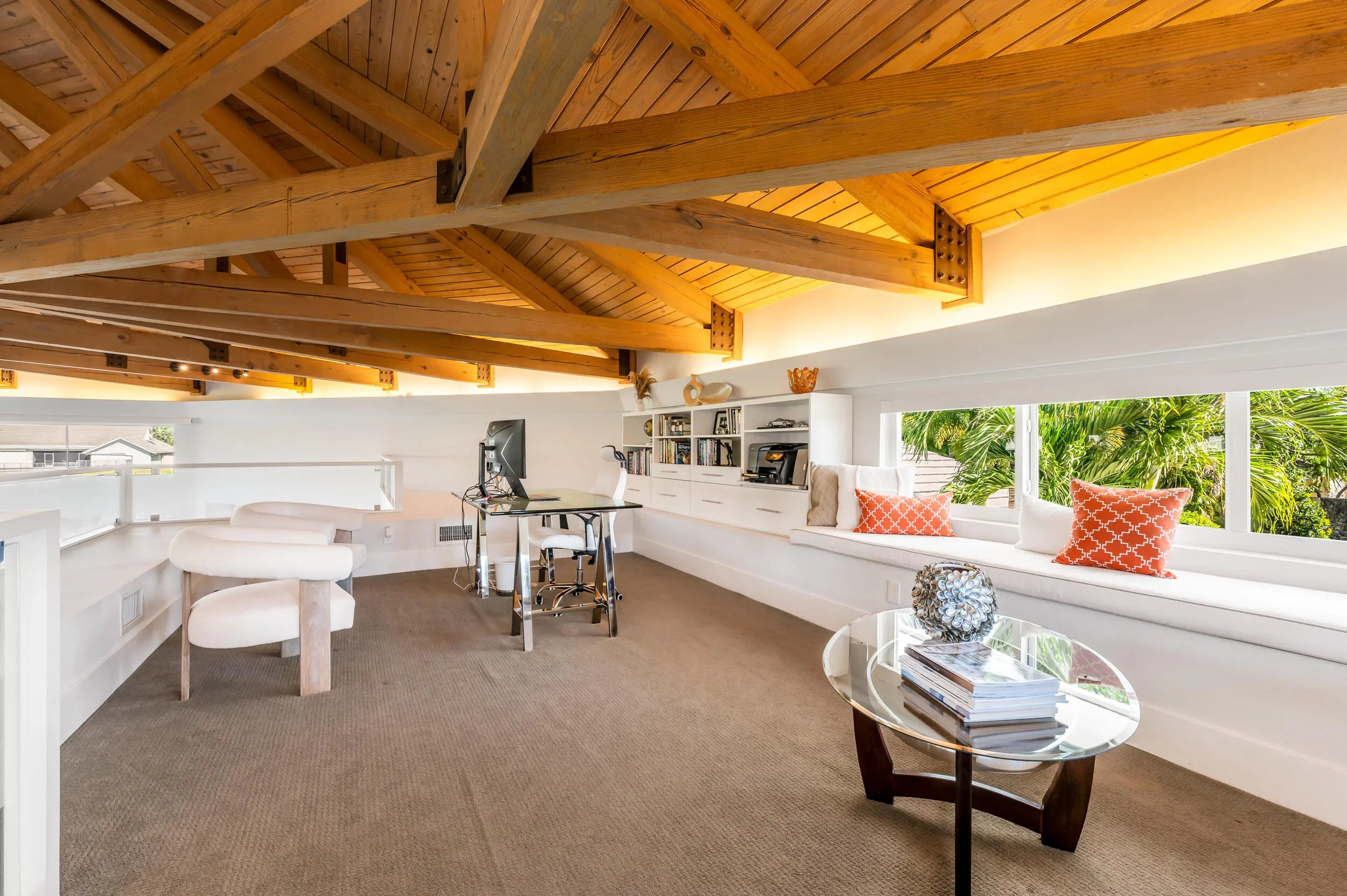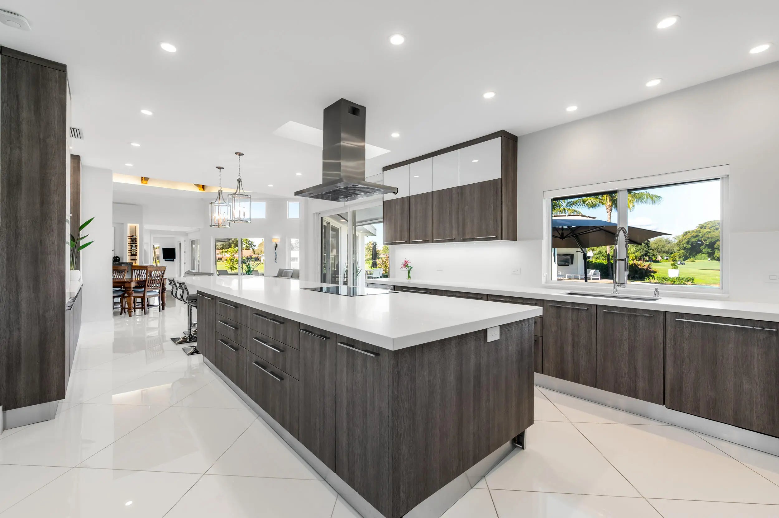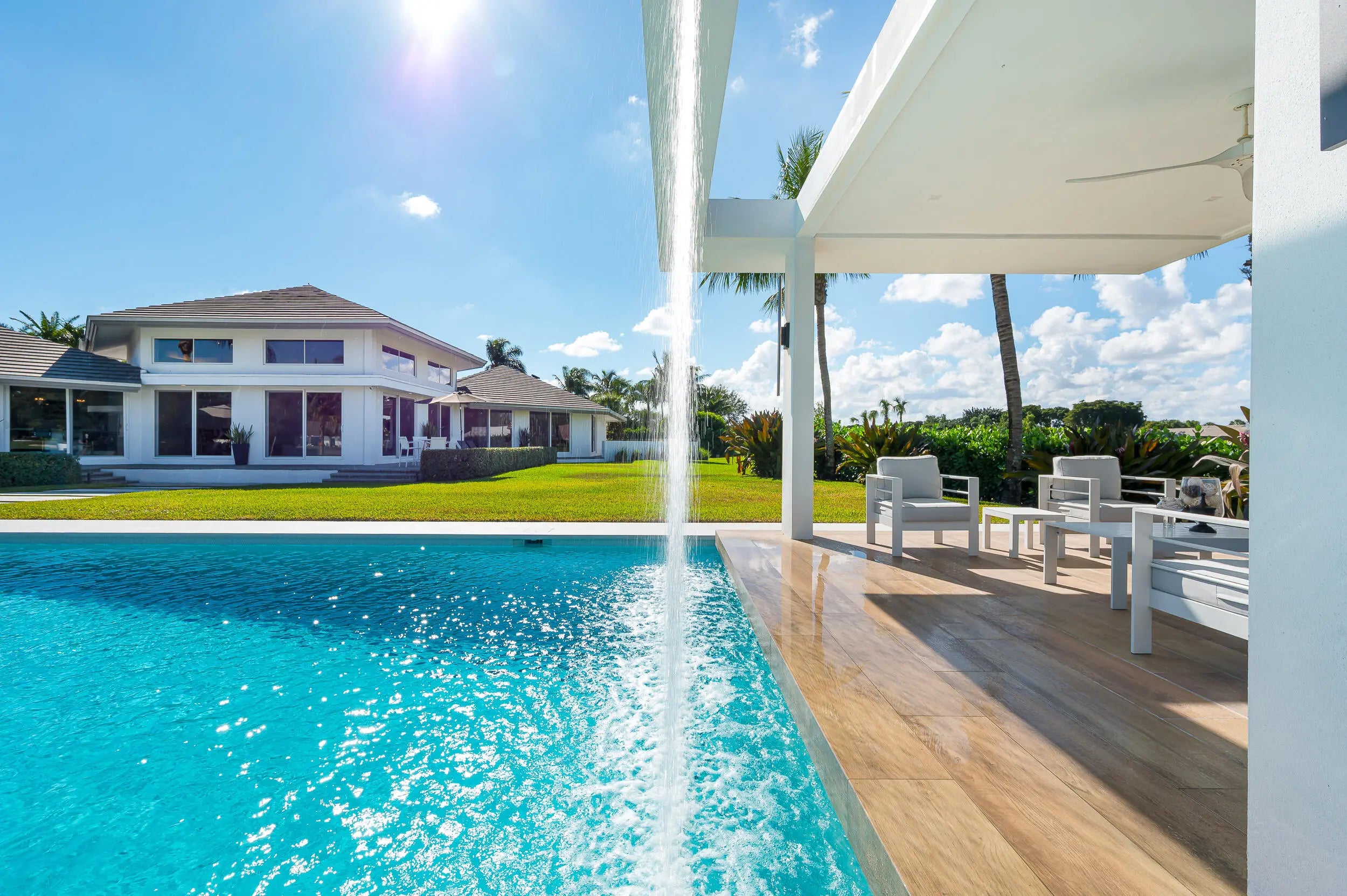 Contemporary 5,375 sqft estate sits amongst the lakes/fairways of the Seagate Country Club. Open concept living, vaulted architectural ceilings, white glass tile floors, wall of impact glass sliding doors, includes top-of-the line appliances. The spacious primary suite features an oversized ensuite, luxurious soaking tub & walk-in shower. Three private guest suites, each w/ full ensuites. A stunning wet bar, separate media room w/ 98" flat-screen TV & Sonos surround sound system throughout the home provides for wonderful evenings. An office loft w/ panoramic views adds to this finely appointed estate. Situated on 3/4 acres, the property has captivating views of lake, canal & 7th fairway. Step outside to a gorgeous salt-water pool w/ loggia, spill-over spa and soothing waterfall. Fully furnished, turnkey seasonal & annual lease is available. Conveniently located near downtown Delray Beach, this residence offers easy access to restaurants, nightlife, and beaches.