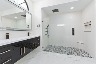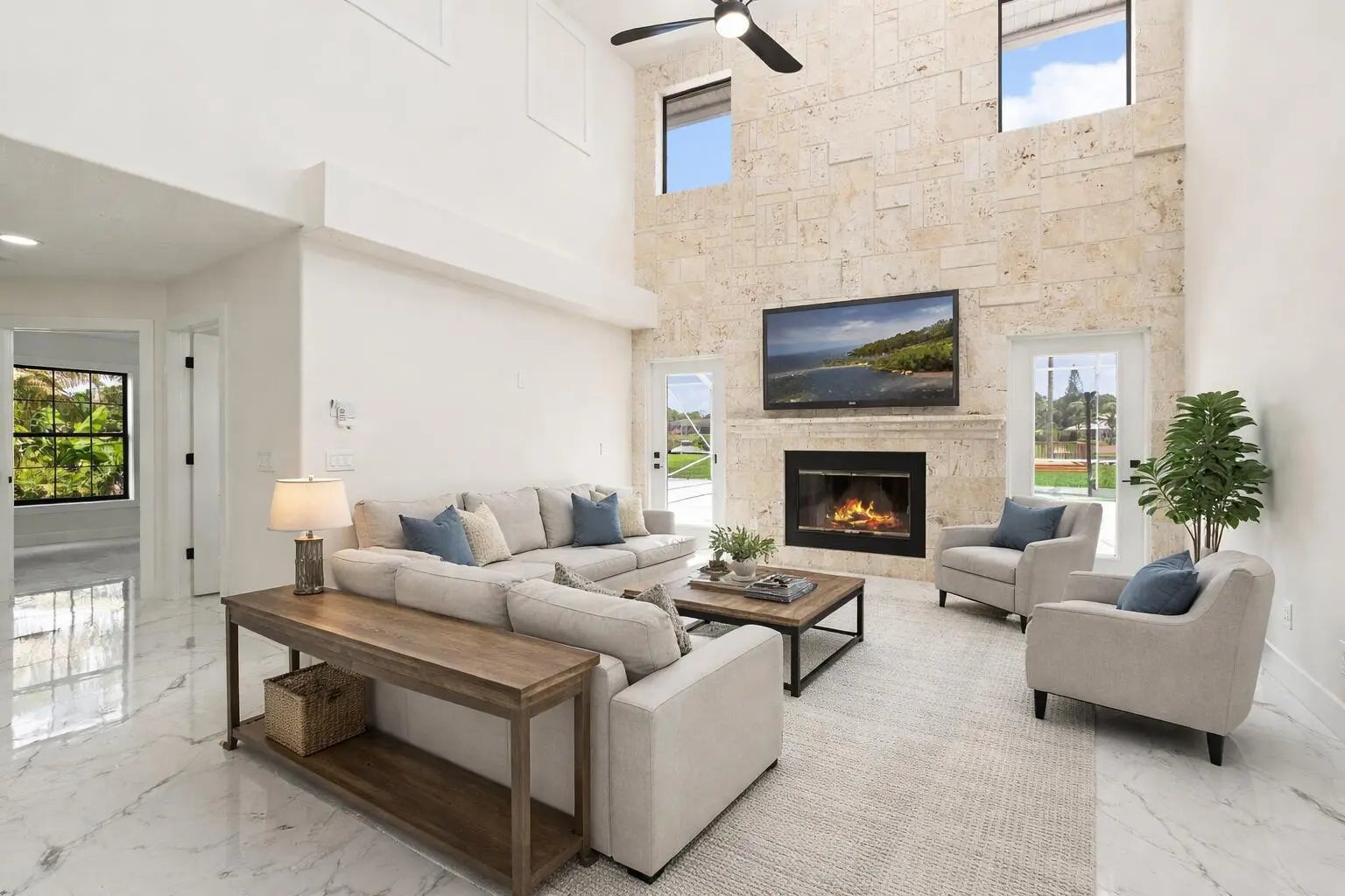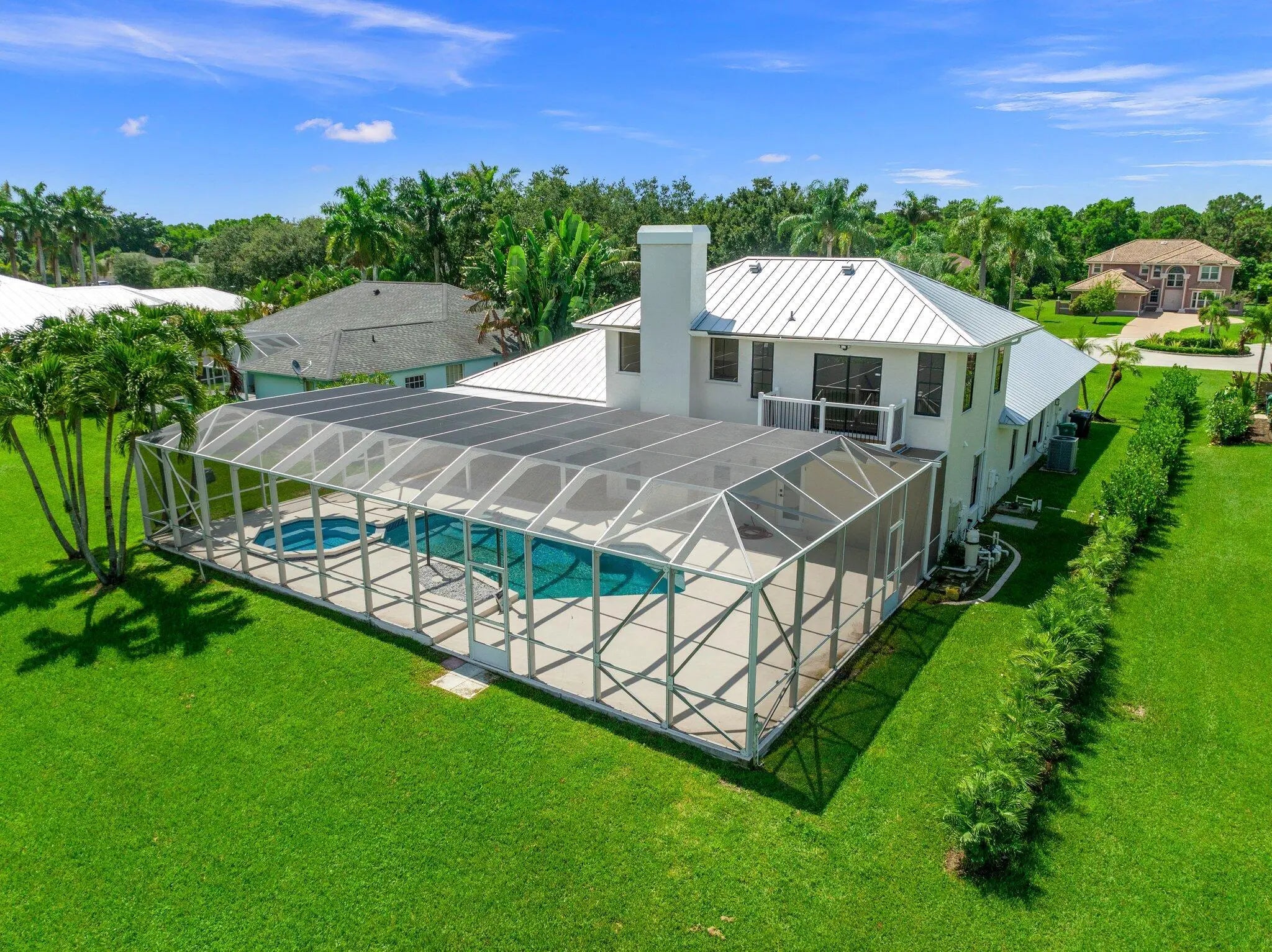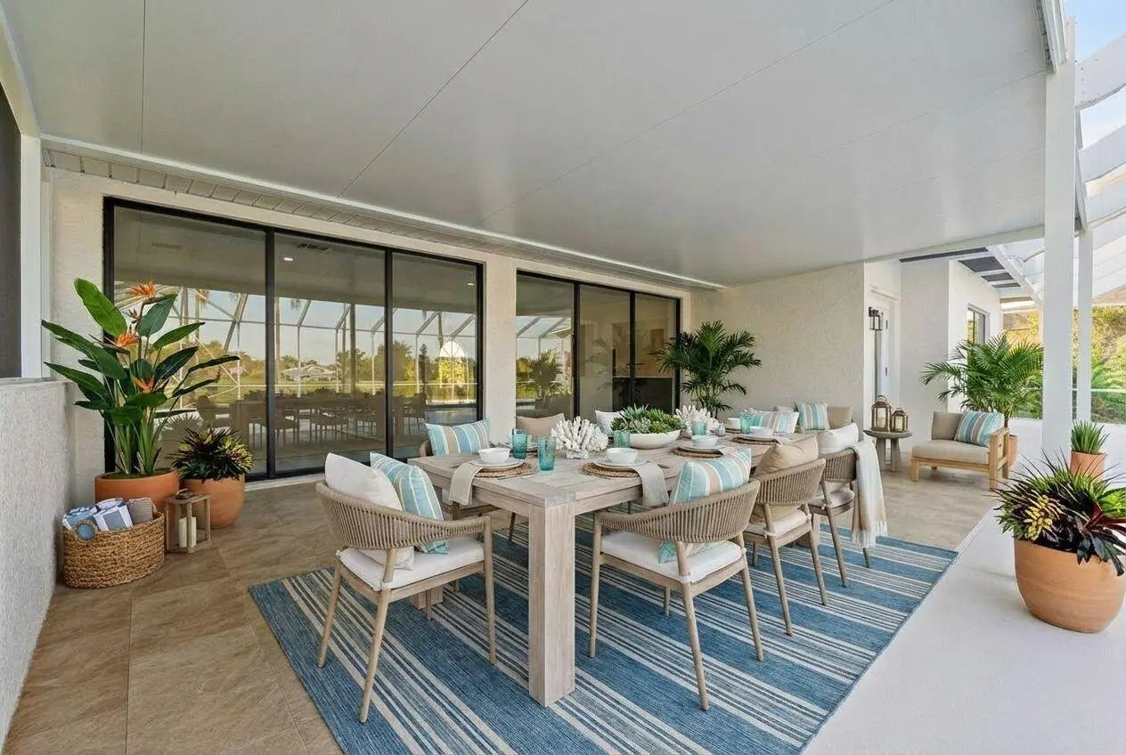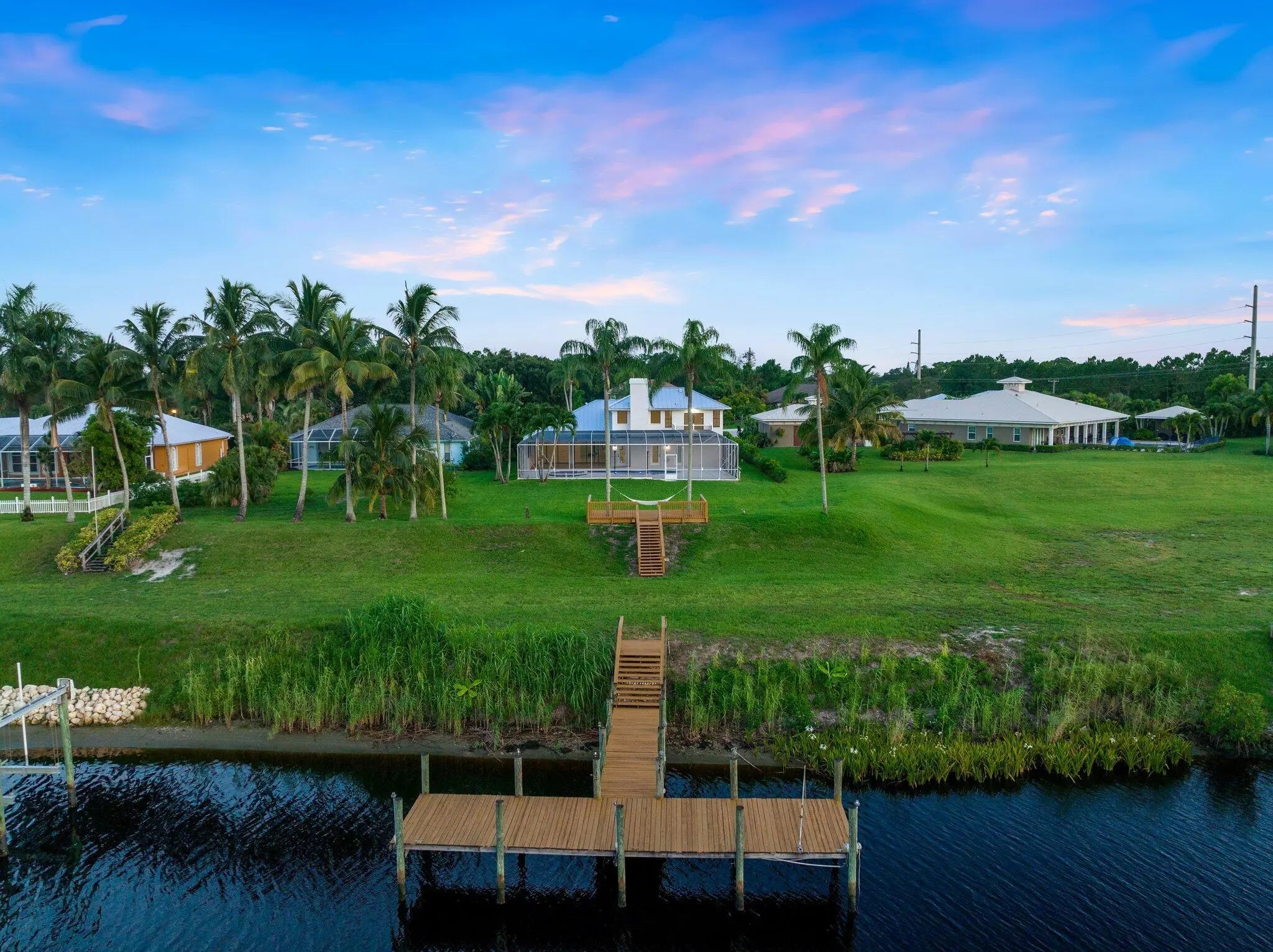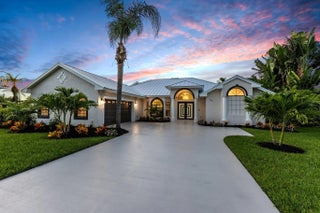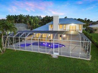 Stunning REMODELED home is a costal contemporary architecture blend of highly desirable finishes & details! This exceptional waterfront home shows like a Model! Details include New Metal Roof, 1/2 acre lot with great curb appeal & exceptional setting! Impressive 5 Bedrooms, 2 Baths, 2.5 Car Garage & fabulous outside area boasting screen enclosed resurfaced pool with spa, travertine decking, party deck & private dock overlooking breathtaking water views. Just a short boat ride to Ocean Access. Gated community with only 34 private homes is a hidden secret & real gem! Beautiful double door entrance, luxury open concept, volume ceilings & 48 x 24 gorgeous porcelain tile sets off the tone of this home. Fabulous Gourmet kitchen, featuring 15 x 15 quartz island & backsplash. This Chef's kitchen includes Gas Cooktop, custom cabinetry, pop up smartphone charges in island, wine cooler, wall oven & recessed LED Lights perfect for entertaining & the heart of the home. Dramatic Formal living Room, Dining Room, family room with an elegant Coral fireplace & flex room perfect for a bar, pool table or just gracious living whether entertaining family & friends with sliding glass door, natural lighting & stunning Views. This home is for the most discriminating buyer! Grand Master Suite offers split floor plan & the tranquil timeless SPA LIKE master bathroom boasts raised Vanity Cabinets, dual sinks, waterfall bathroom faucets, 14 foot Luxury Sports Shower & stand alone bathtub. Upstairs you will find 5th bedroom or private space with a walk out balcony overlooking the beautiful waterway canal. When you think about Florida Living you will love the outdoor space! The tropical oasis will give you privacy, tranquility & Joy. Bring you boat & slow down to the pace you have been looking for & the lifestyle you want! Roof 2024, 2 New A/C units & Garage is 2 plus golf cart garage space or storage space with fabulous epoxy flooring.