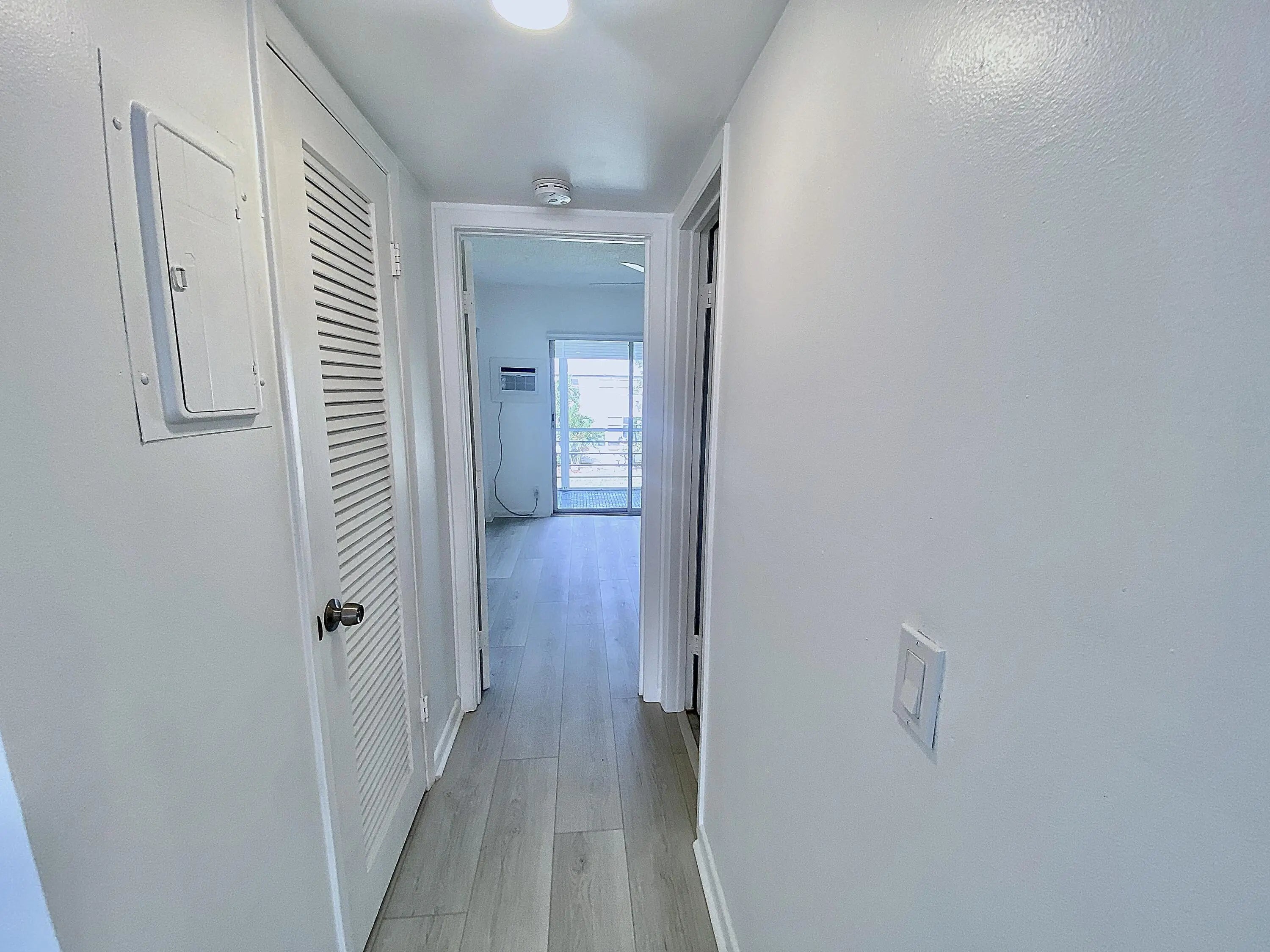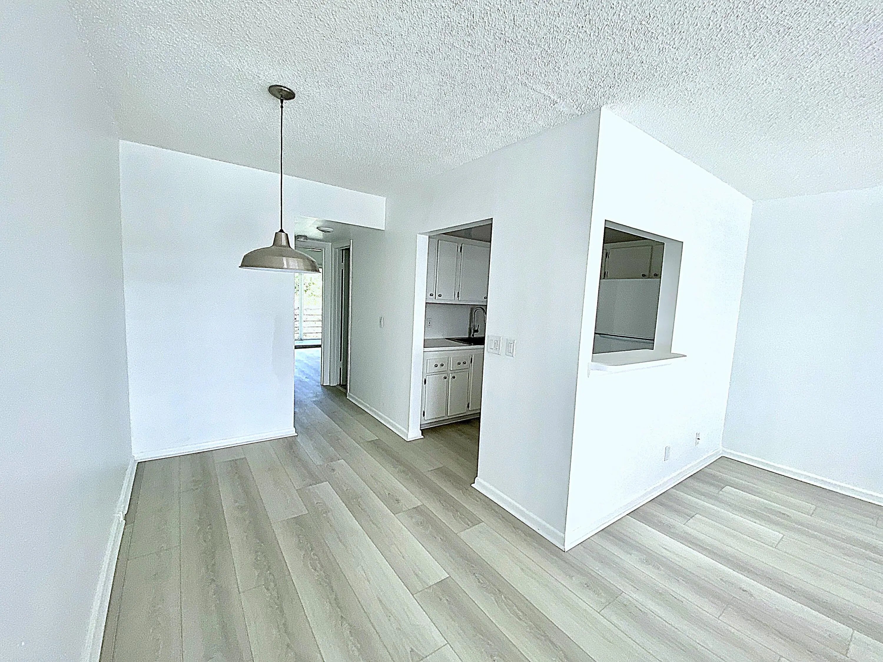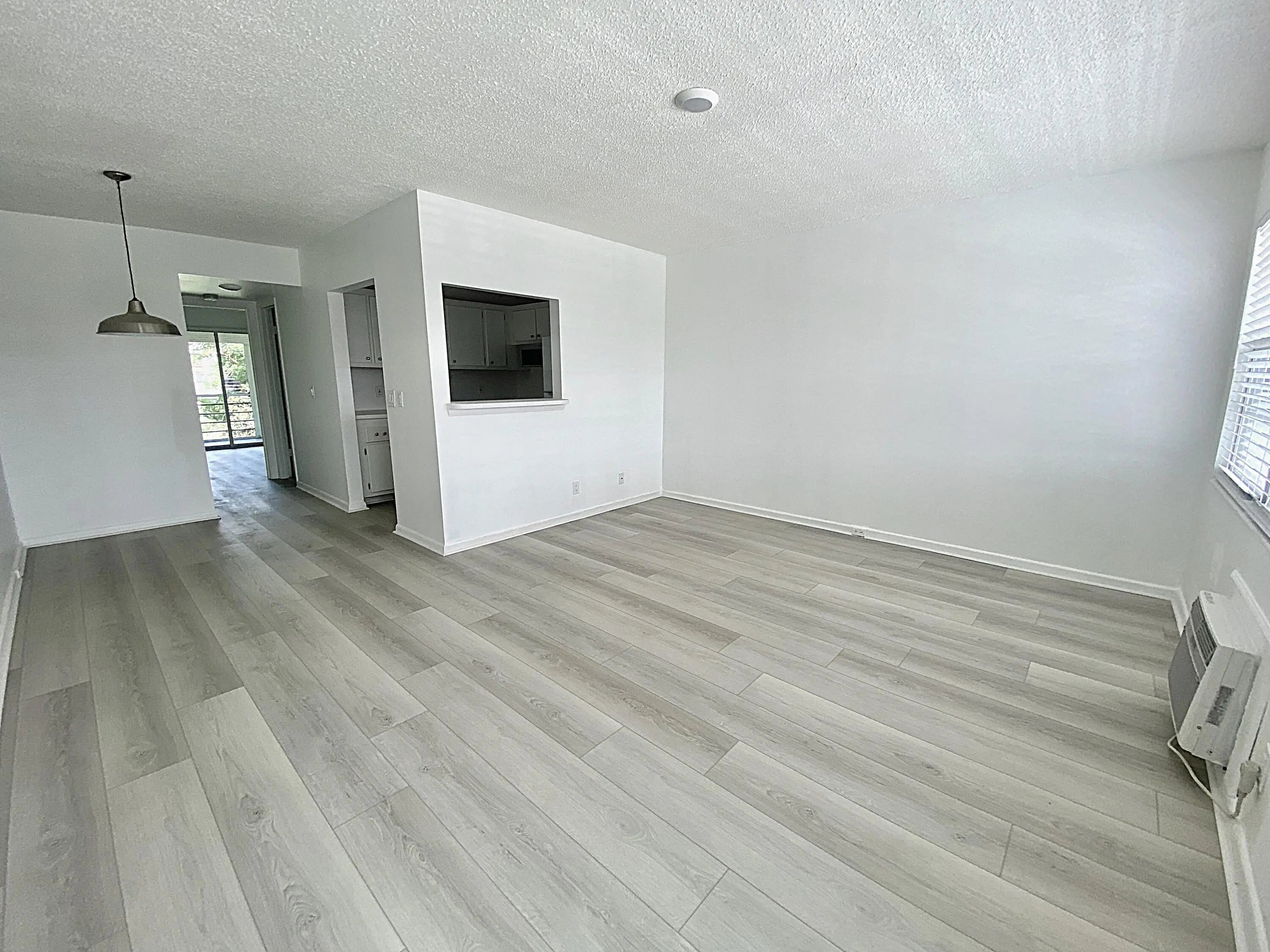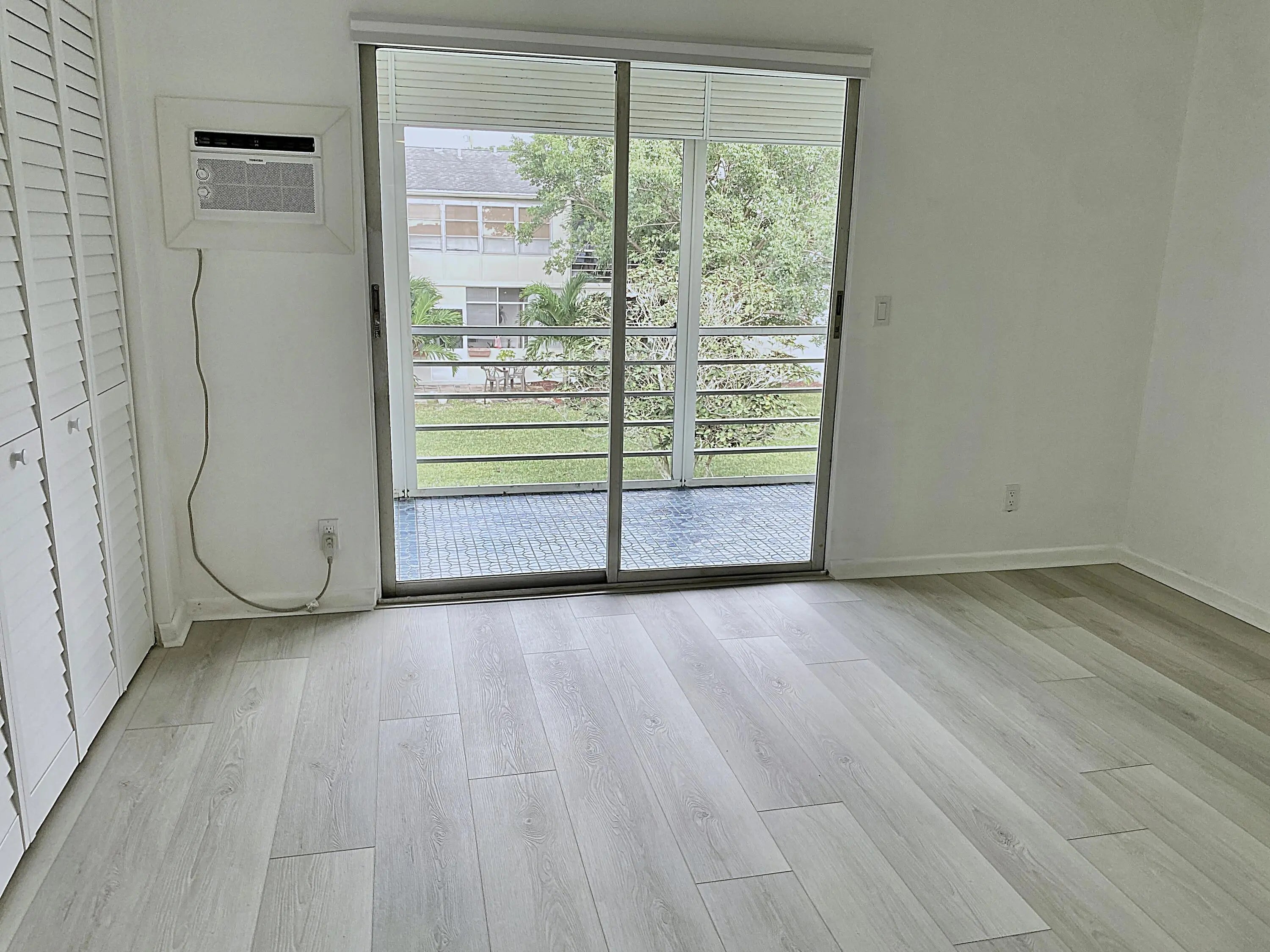 Well maintained 2nd floor 1 BR 1 Bath condo, unfurnished. Replaced bathroom vanity and toilet. Lovely grey laminate flooring throughout. Screened in tiled patio overlooking serene garden views. Outdoor pool located in community. Near shopping, entertainment, dining and only 3.5 miles from Beach. Enjoy adult active community with wonderful amenities. indoor Olympic size pool, fitness center, volley ball, tennis, shuffle board, bocce ball, pickle ball, movies, theater, classes, card room, billiards, social activities galore, free transportation and more. Community is 55+