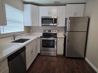 Beautifully renovated 2BR/2BA villa in the MilRace community of Greenacres. This move-in-ready home features a bright, modern kitchen with white cabinetry, quartz-style countertops, and stainless steel appliances. Open living and dining area with wood-look tile flooring and abundant natural light. Sliding doors lead to a private patio, perfect for relaxing or entertaining. Spacious bedrooms with walk-in closet and updated bathrooms with contemporary finishes, including tiled showers and modern vanities. Ample storage throughout. Conveniently located near shopping, dining, and major roadways.