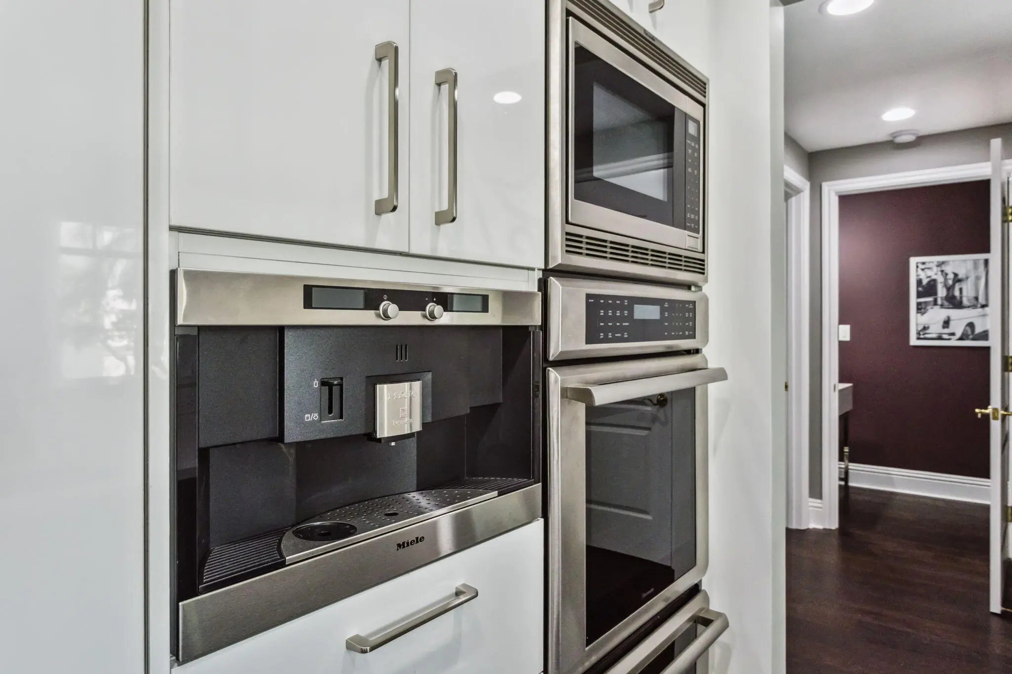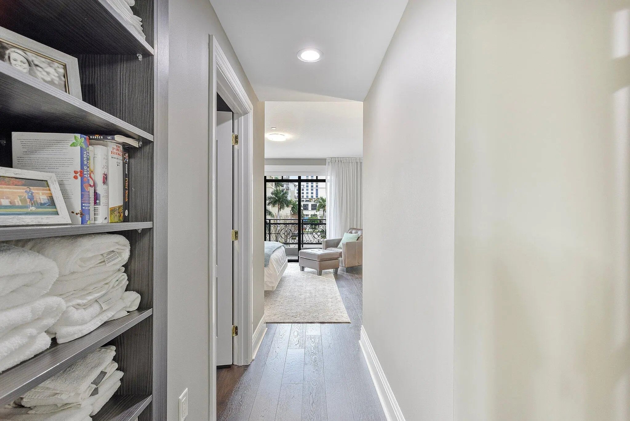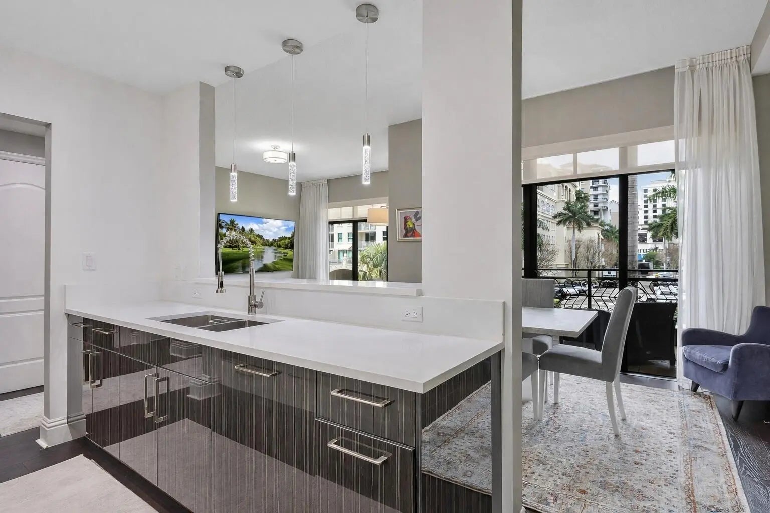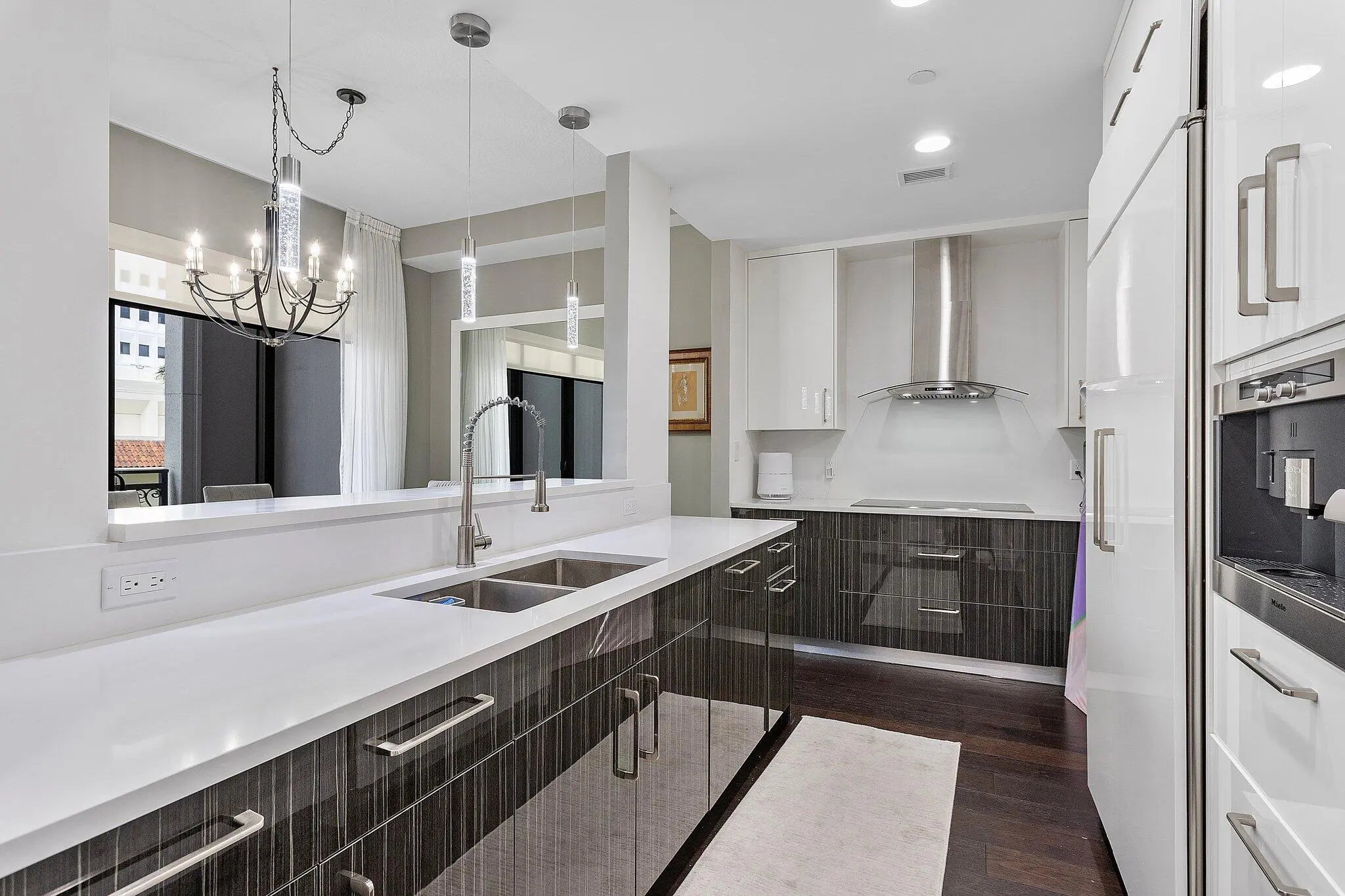 Experience the ultimate in downtown living in this ultra-chic two-level, 1,707 sf, 2 Bed|2.1Bath townhome in the heart of Boca Raton. This fabulous TH features 10' high ceilings, floor-to-ceiling windows, a glass stair railing and rich dark solid wood flooring throughout. The showstopping modern kitchen is a true centerpiece, boasting bold high-gloss zebra wood cabinetry, pristine white quartz countertops, an induction cooktop, Sub-Zero refrigerator, a built-in Miele Nespresso coffee system and more. A spacious walk-in pantry with custom shelving adds both function and convenience. Entertain with ease from the dining area, which opens to a spacious covered balcony, perfect for grilling, relaxing, and enjoying the downtown lifestyle. Comes w/ (2) Assigned Pkg spaces & (1) Storage. Add'l improvements include; New bathroom vanity cabinetry, updated white modern porcelain sinks, custom wall mirrors, sheer linen window treatments and solar shades. Washer & dryer and hot water heater were replaced in 2024. 200 East underwent a $6M interior/exterior design renovation, completed in 2025. Located in one of Boca Raton's most sought-after luxury buildings, this TH offers the ultimate blend of style, comfort, and walkable city living - Just steps to Mizner Park, Royal Palm Plaza and some of Boca's best restaurants, shopping and entertainment. Enjoy 200 East's 5-star luxury services including 24/7 front desk/concierge, on-site full staff management, porte-cochere valet parking, a resort style 4th level stunning pool and spa deck and an all new clubroom and exercise room. Photos shown are not the furniture and furnishings currently in the unit & photos of both bedrooms are virtually staged.
