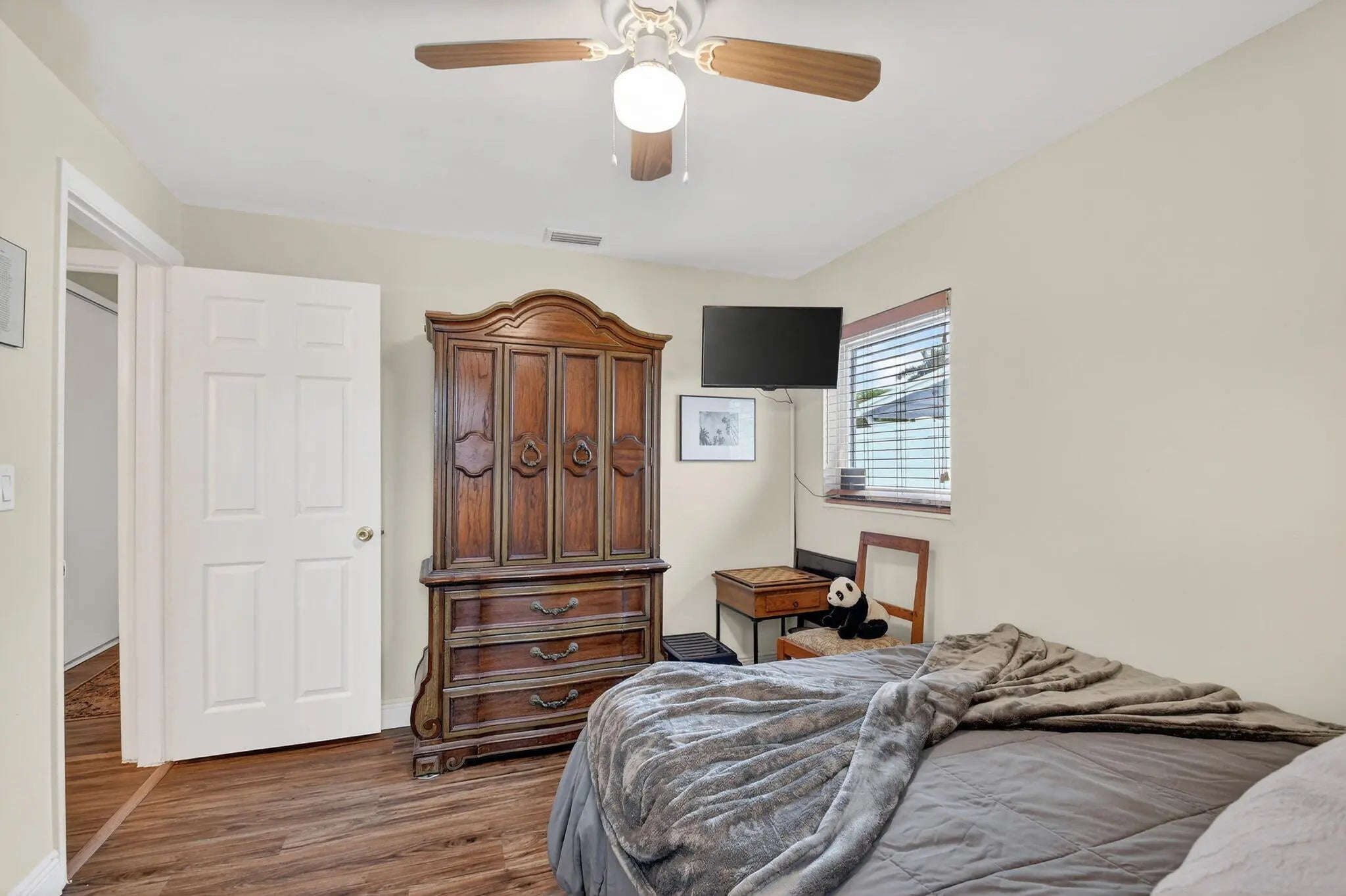 Welcome to this spacious 3-bedroom, 1-bath home located on a desirable corner lot in Palm Springs Village. This well-maintained property offers a bright and inviting layout featuring a comfortable living room, dedicated dining area, and a functional kitchen, perfect for everyday living and entertaining. Recent updates include a newer roof (2019), a new HVAC (2024), impact glass for added protection and efficiency, and luxury vinyl plank flooring (2022) throughout. The home is thoughtfully upgraded with custom blinds, built-in closets, and a whole-home surge protector for added peace of mind. Enjoy the outdoor space with a generously sized yard and a large shed, ideal for storage or hobbies. The corner lot provides ample parking and added privacy. A warm and welcoming home ready for its next owner!
