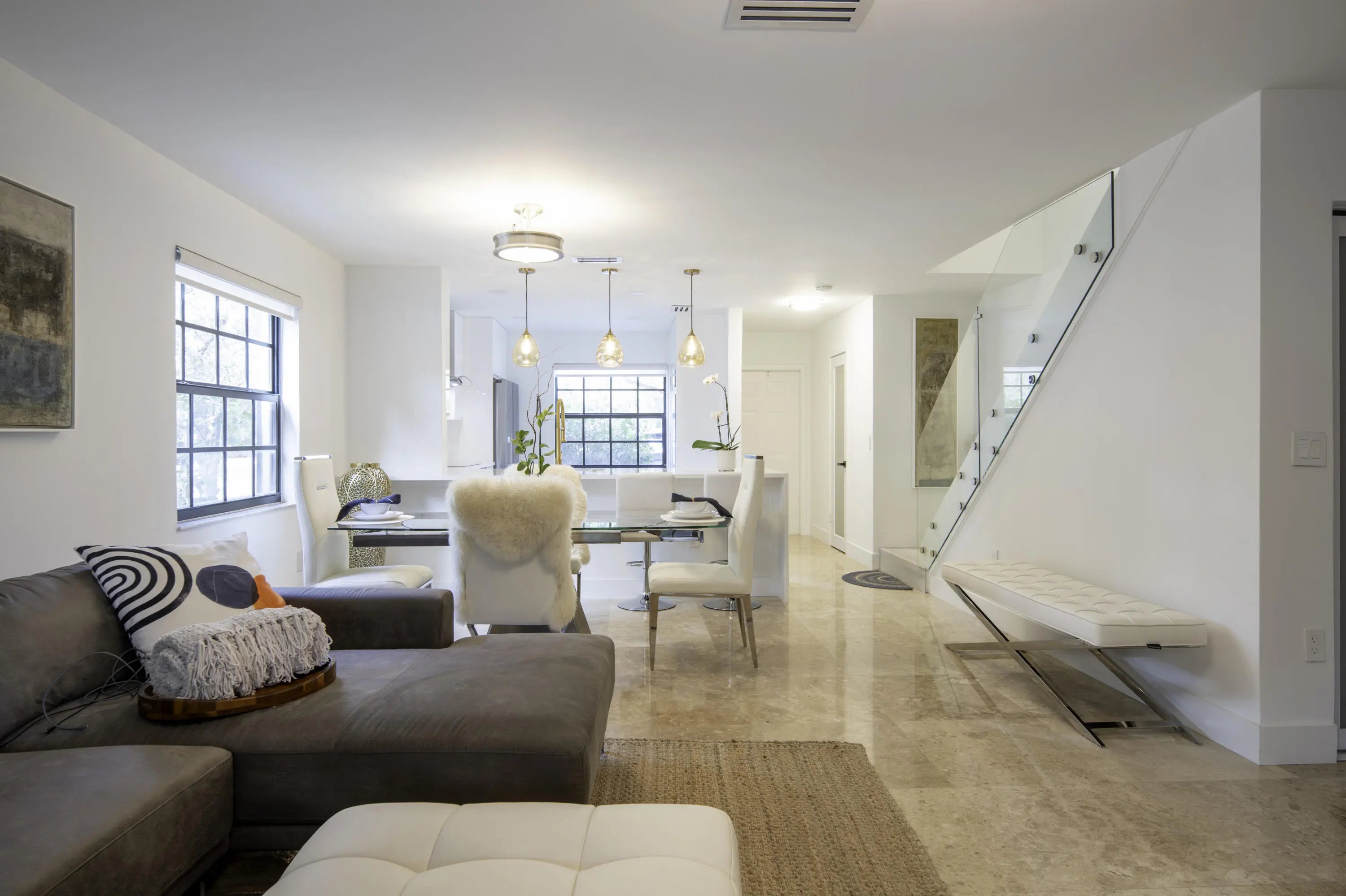 Live the ultimate Plantation lifestyle in this fully reimagined corner-unit townhome! This stunning rental features a designer kitchen with quartz counters, sleek cabinetry, and new stainless smart appliances. Enjoy marble floors, impact windows and doors, and a bright open layout filled with natural light. Smart-home upgrades include smart switches, entry system, and high-tech toilets for modern comfort. Updated bathrooms, new flooring, and fresh paint make it feel like new construction. Corner location and landscaping offer extra privacy. Easy access to Plantation Walk, grocery, dining, coffee, gyms, major highways and more!