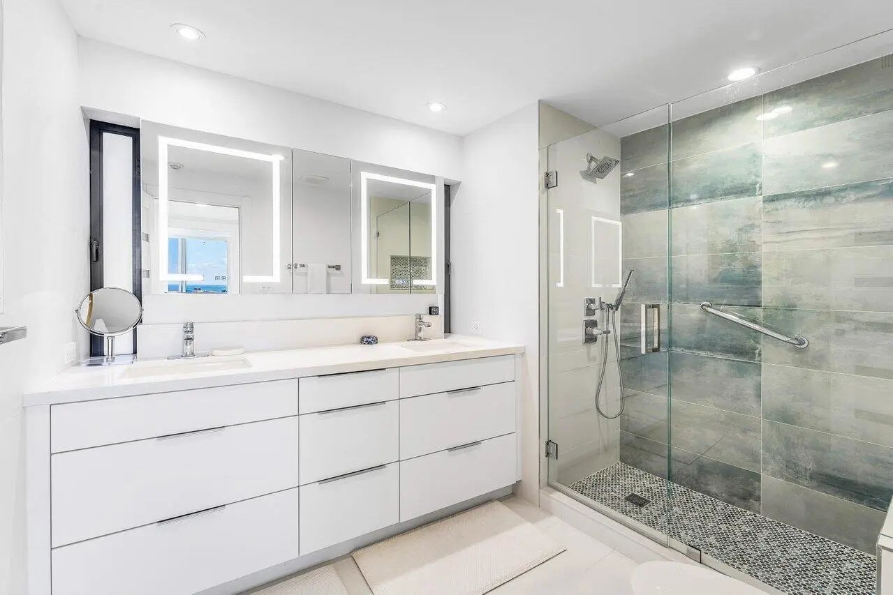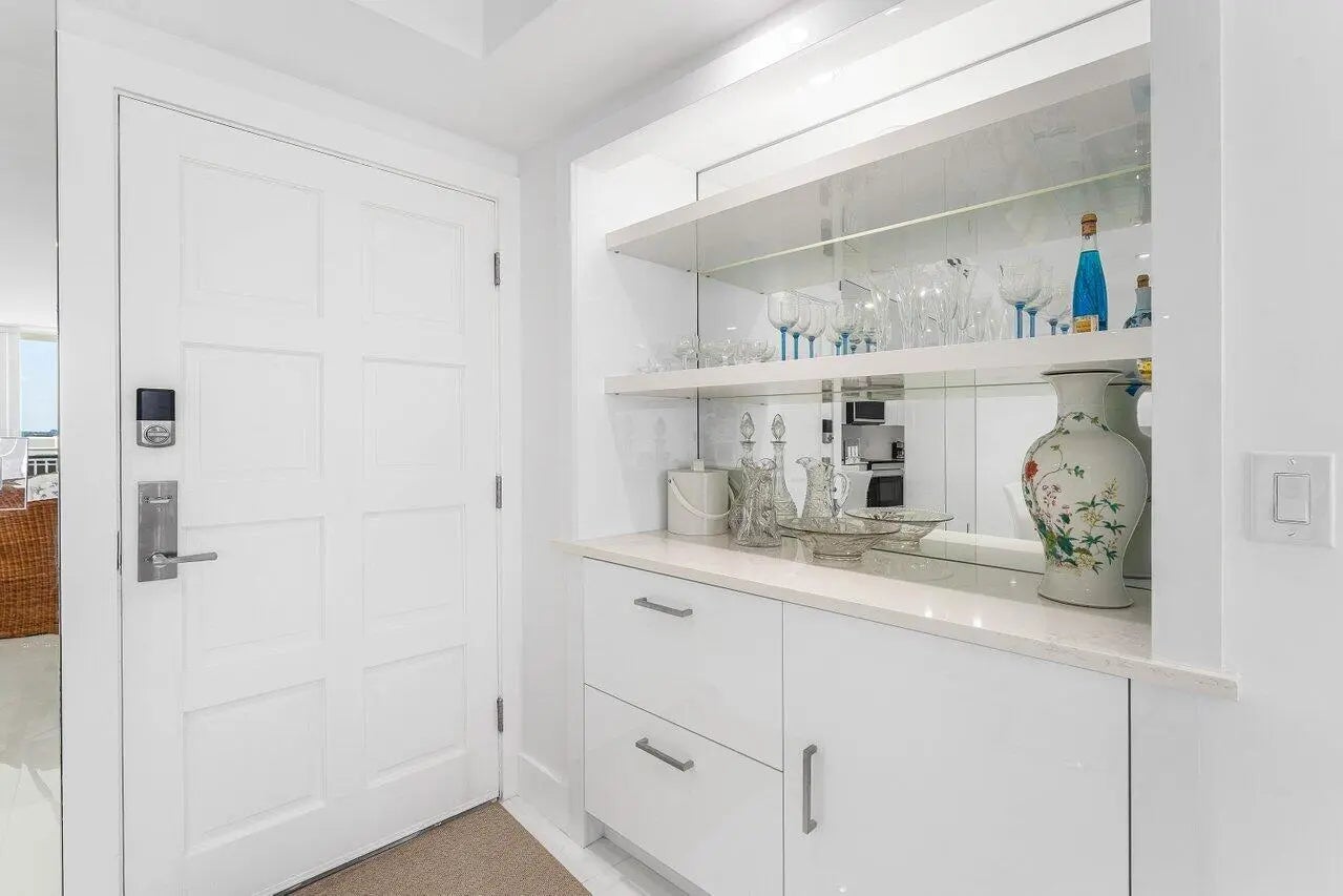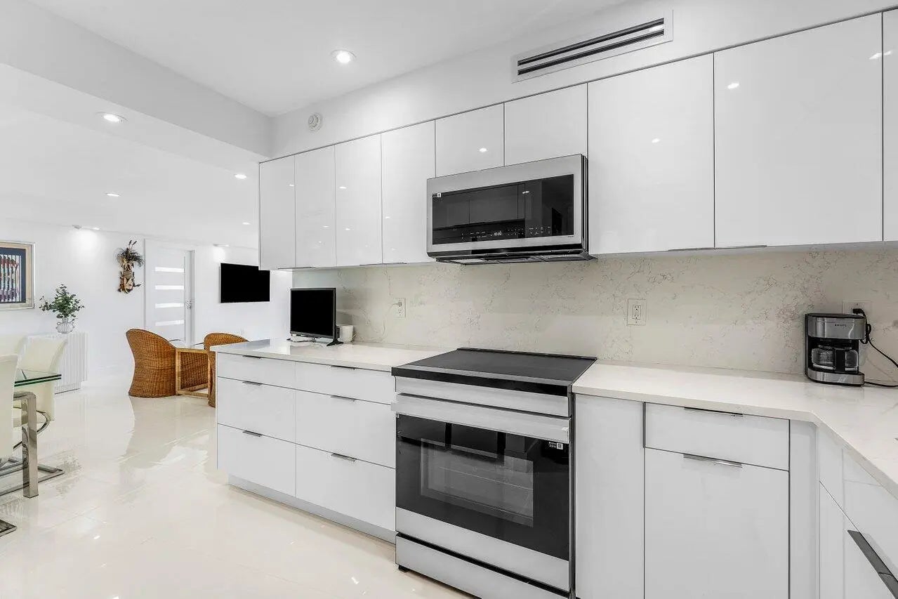 Palm Beach oceanfront. Gut renovated 2025. Move-in ready with ocean sunrise and Intracoastal sunset views. 2BR/2BA split plan featuring dual primary suites and designer finishes throughout. Bright, modern interior with large-format porcelain tile, recessed lighting and electric blinds. Open kitchen with Calacatta-style quartz, full-height backsplash and Samsung Bespoke appliance suite. Spacious suites with walk-in showers and generous closets. Spa-inspired baths with floating vanities, dual sinks and LED lighted mirrors. Freshly painted throughout. New hurricane impact floor to ceiling sliders. A+ building with wide sandy beach and dunes, heated pool with windscreen, fitness center, BBQ, storage and beach cabanas. Co-op rules: 3-6 month rental with 1 year hold. Must see.