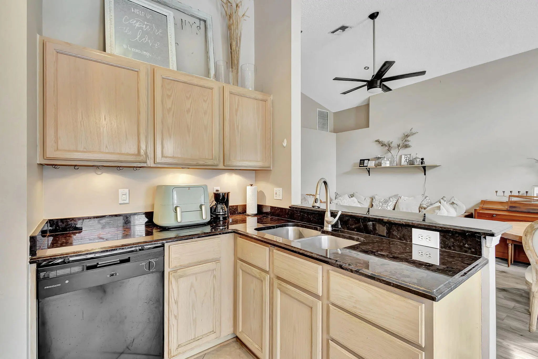 Welcome to Your Dream Home in the highly Sought-After Gated Community of River Bridge! This stunning 3-bedroom, 2-bathroom home with a 2-car garage is a perfect blend of style and comfort. Step inside and be greeted by vaulted ceilings and beautiful wood-look tile floors throughout the living areas, ceramic tile in the kitchen, and cozy carpeted bedrooms. The separate laundry room adds convenience to your daily routine, while the bright, open layout creates a spacious and inviting atmosphere. The modern kitchen, featuring stainless steel appliances and elegant granite countertops, is a chef's delight—perfect for both casual meals and entertaining guests. Located in the highly desirable River Bridge community, you'll enjoy resort-style amenities in a peaceful, gated setting. Conveniently close to shopping, dining, and entertainment, this home truly has it all. Don't miss your chance to own this beautiful home schedule your private showing today!