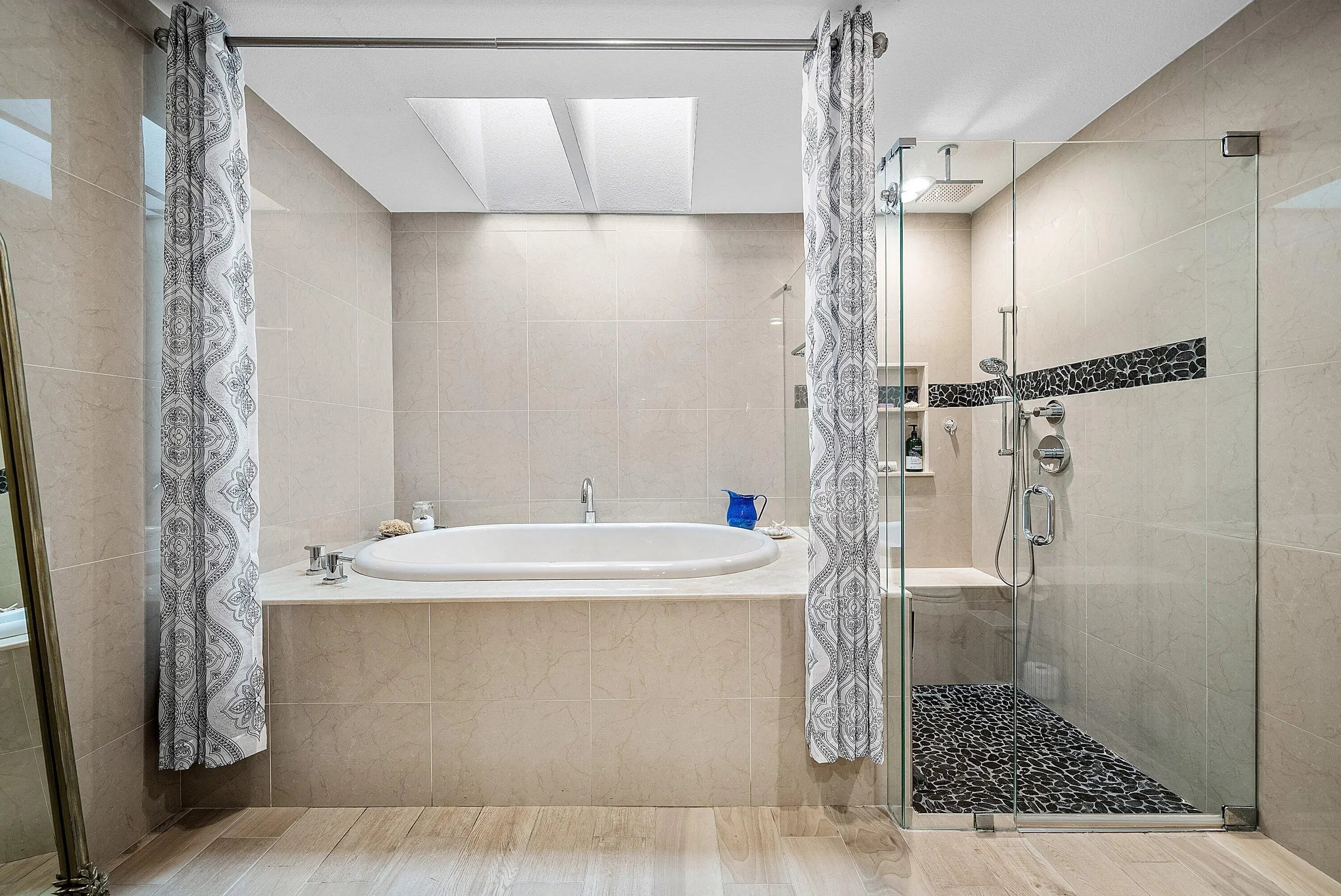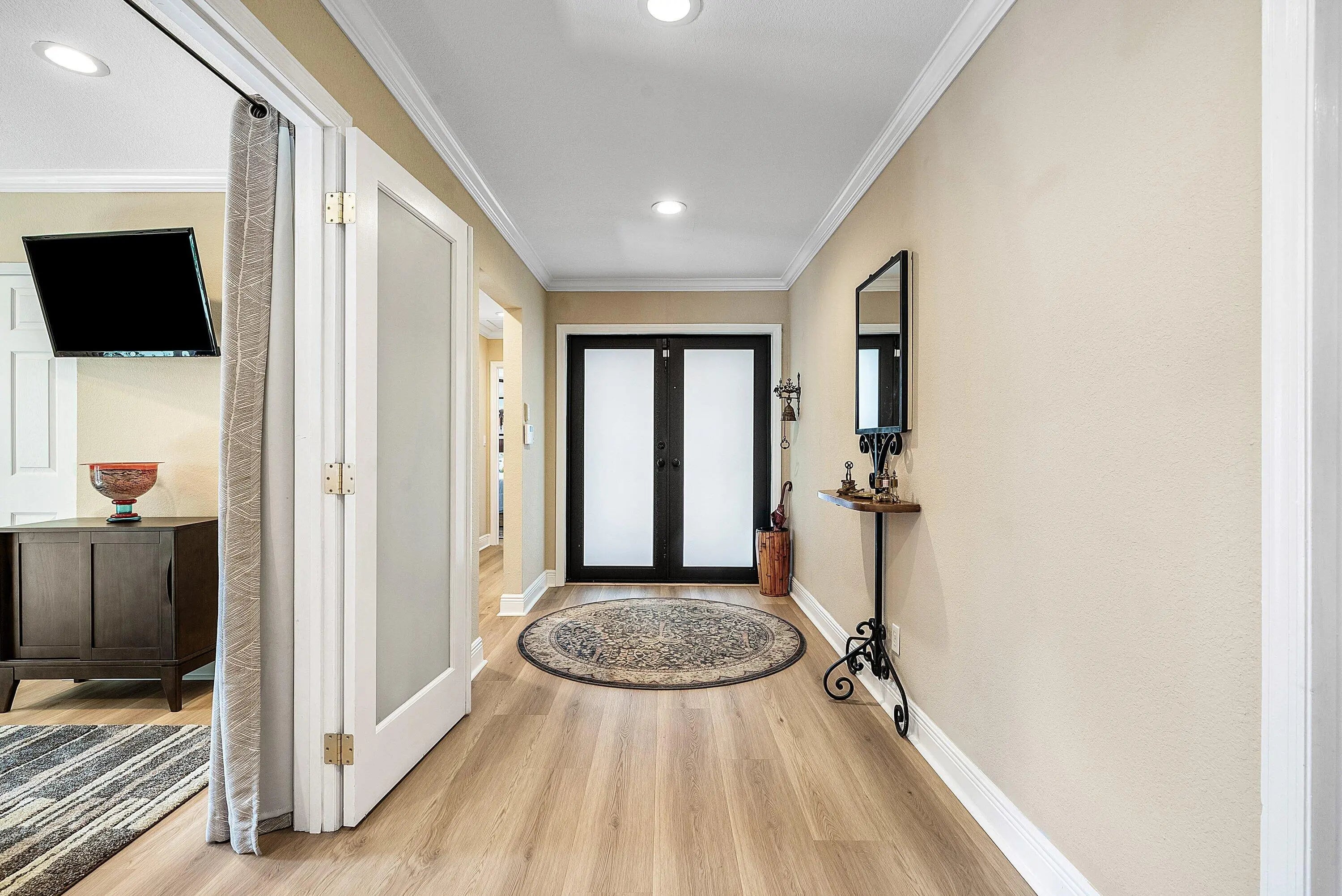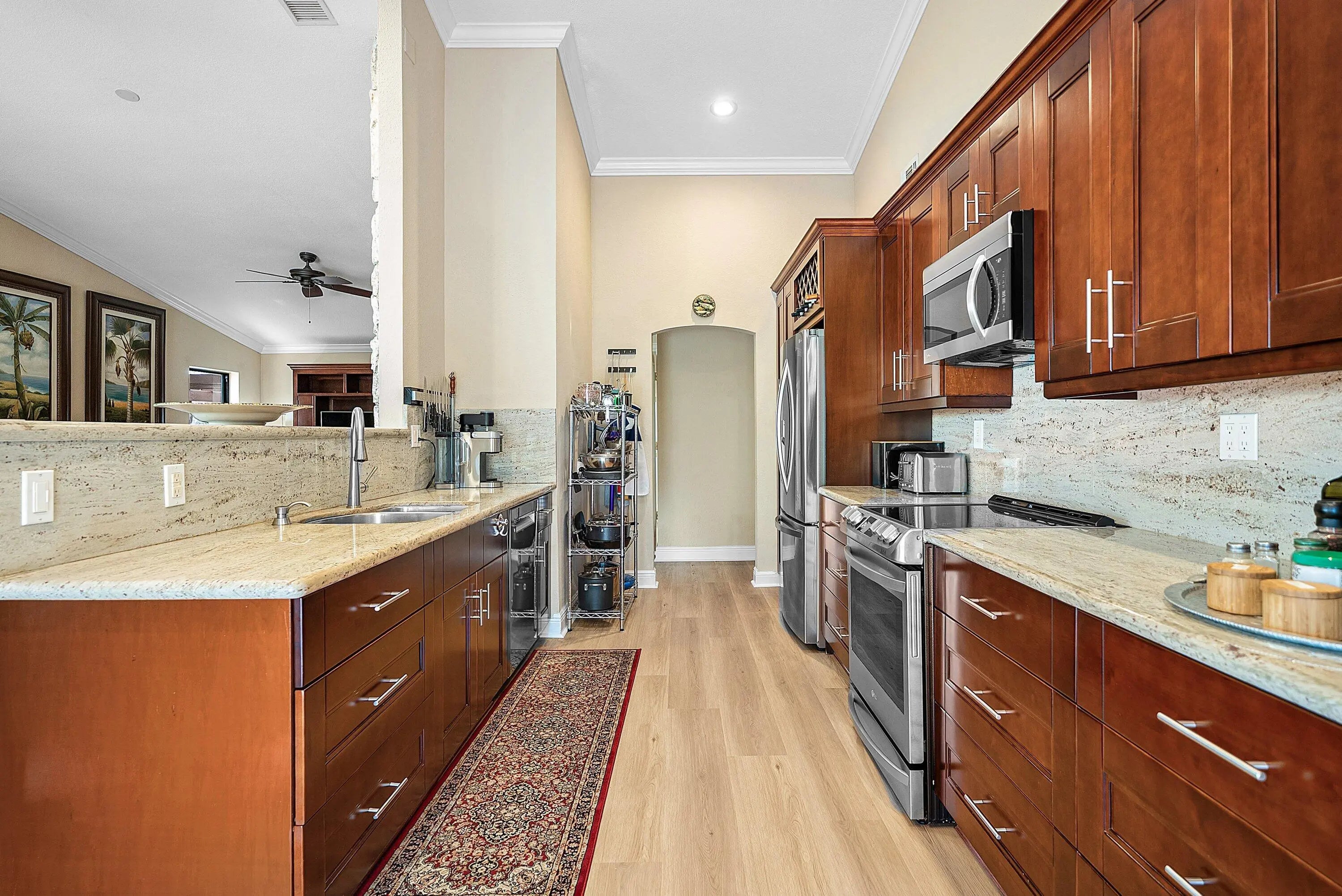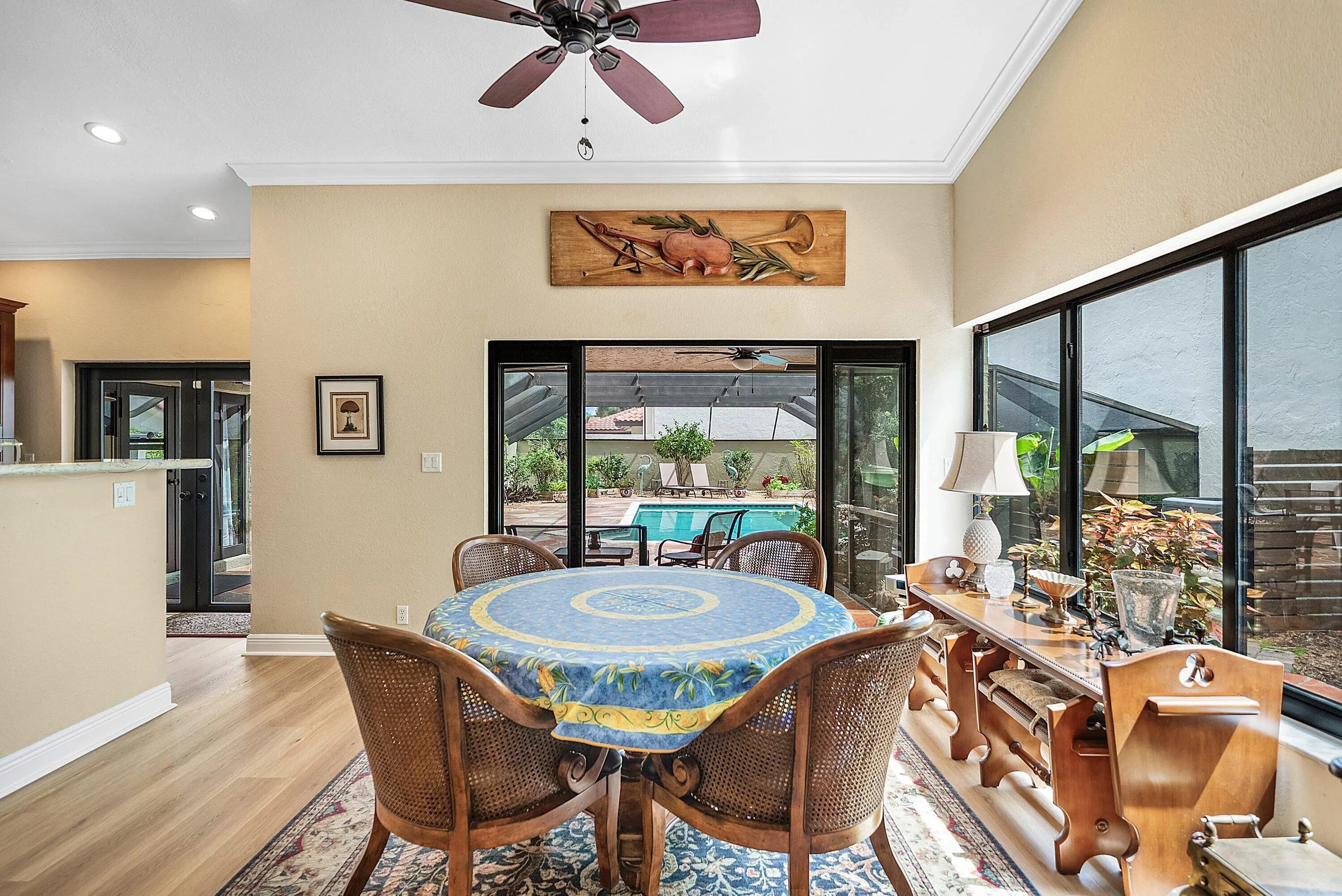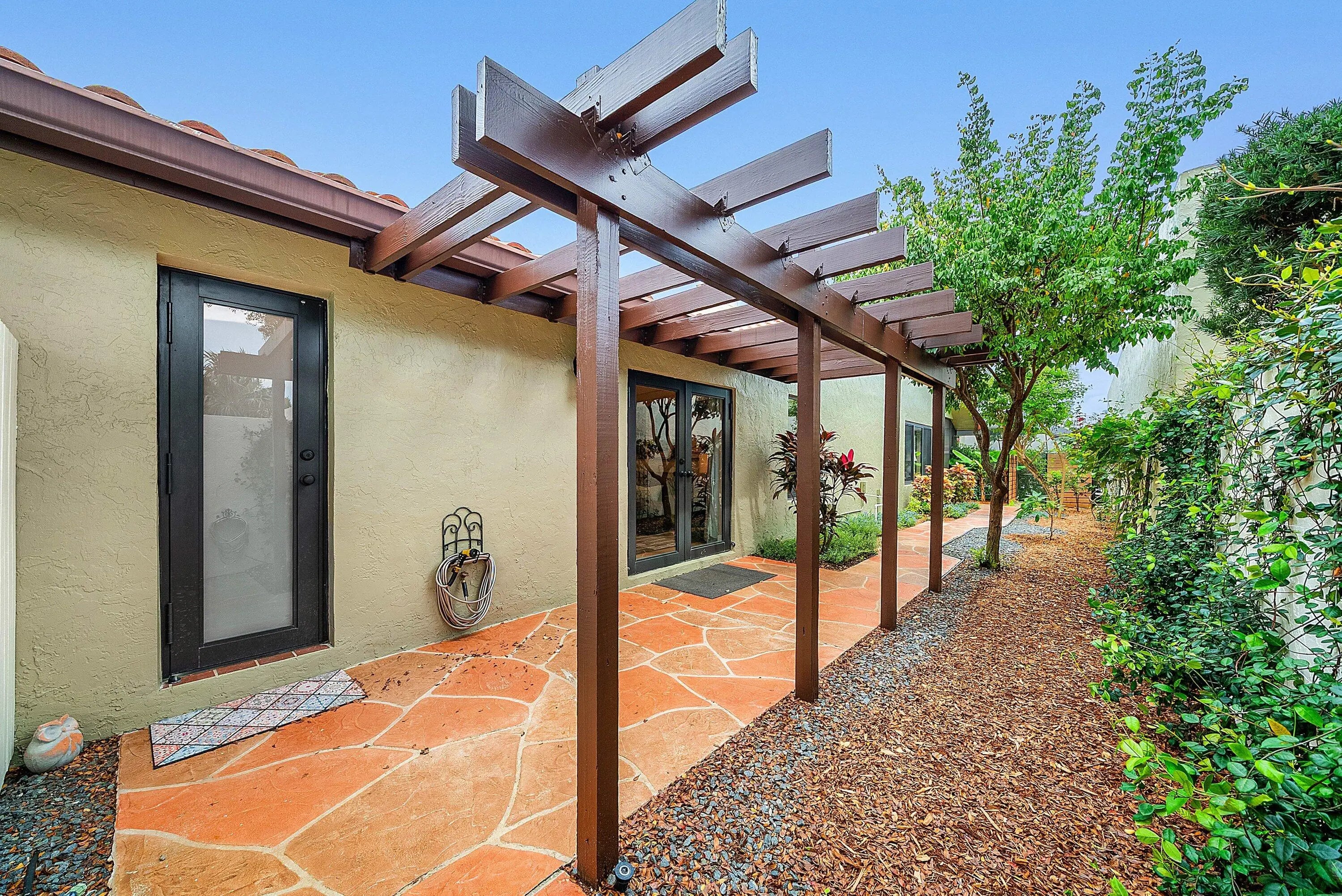 Light-filled residence in Central Boca Raton set on one of the largest lots, offering exceptional privacy and a lush tropical setting. Designed for seamless indoor-outdoor living, the open layout features a spacious living area centered around a striking stone fireplace. The kitchen offers functionality with newer appliances and direct access to outdoor spaces. The primary suite opens to the pool, complemented by a large spa-like primary bathroom. Enjoy a heated saltwater pool, expansive cool deck, pergola walkway, and a carefully curated garden with herbs and fruit trees. Impact windows and doors, updated systems, and prime location near Town Center Mall, dining, I-95 and Turnpike. Major Upgrades & Systems • Impact-rated windows and French doors throughout • Whole-house Culligan water filtration system • New pool pump, heater, and saltwater system • New hurricane impact garage door & opener • Tankless hot water heater • Flat roof - new • New Rheem A/C system • All new exterior door hardware and locks - easy to rekey • Exterior recently painted • Chimney recently refinished and waterproofed • Wood burning Fireplace Interior Upgrades • Newer appliances • Updated laundry room with sink, new washer and dryer • A/C hidden in cabinetry • New flooring throughout - high-end level LVP Outdoor Living • Saltwater heated pool with new pool light • Cool-deck pool patio • New outdoor patio fans • Large private backyard with full privacy walls, garden, and planters Herbs & Edible Garden • Oregano, basil, mint, rosemary, culantro, scallions • Tomatoes, jalapenos, and cucumbers Trees & Tropical Landscape • Large carambola (starfruit) tree • Banana trees • Bleeding hearts • Sweet almond • Morning glory climbing wall • Night-blooming jasmine • Various flowering plants and trees LOCATION & COMMUNITY HIGHLIGHTS • Eligible for beach permits • High speed Fiber-optic internet (Hotwire) • Community pool • Close to town center mall • Central Boca - near I-95 and Turnpike