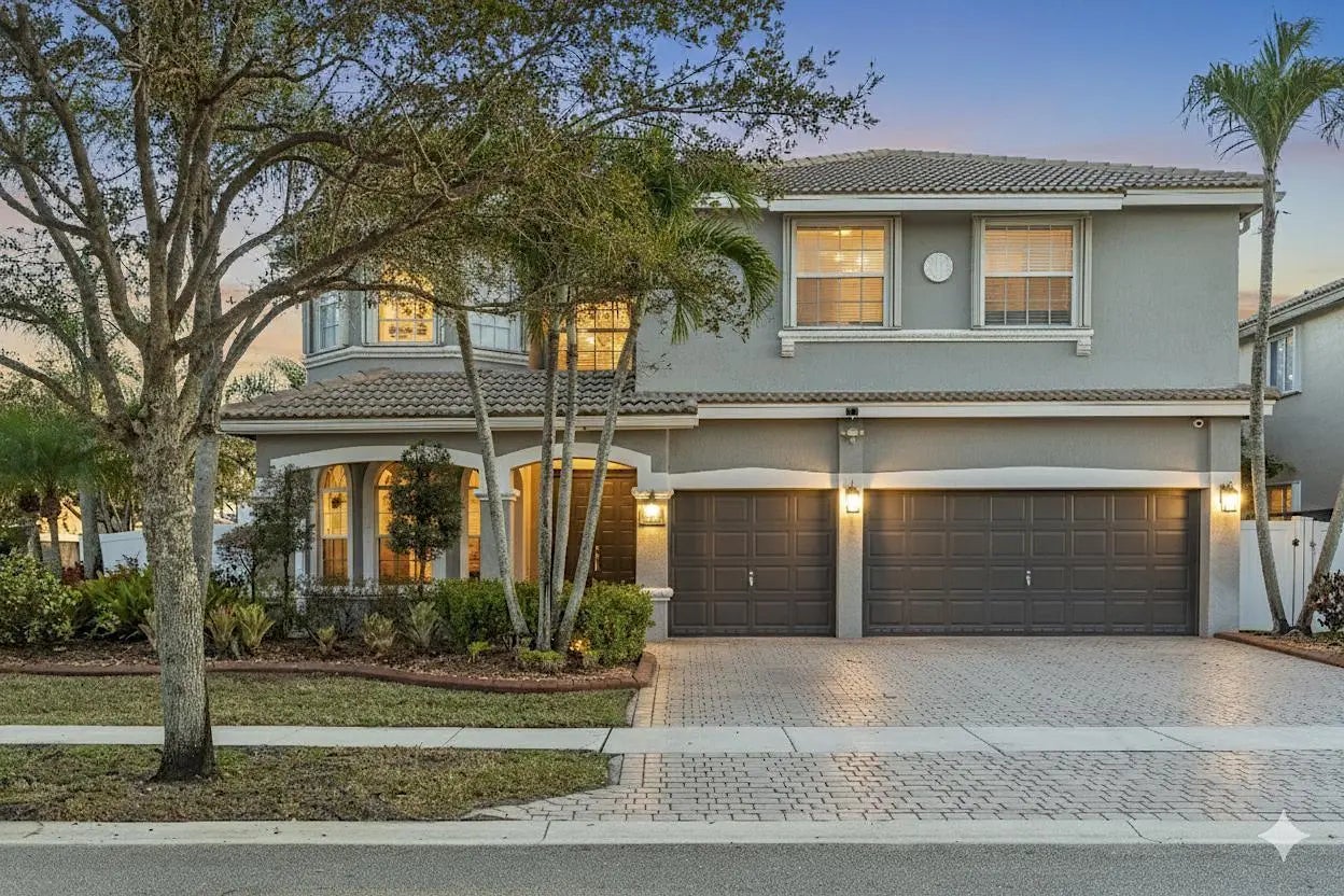 Welcome to executive luxury living. This stunning corner lot home in prestigious Pembroke Shores offers both serenity and exceptional curb appeal. An expansive paver driveway leads to a spacious 3-car garage.Inside, impressive ceiling heights, abundant natural light, and designer lighting enhance the open concept layout. The chef's kitchen is ideal for both everyday living and entertaining. This 6 bedroom residence features a first-floor suite, a grand upstairs primary retreat with a private balcony, and a desirable split floor plan. Step outside to your private pool and patio, perfect for relaxing or hosting guests. Ideally located near A rated schools, shopping, fine dining, major highways, and hospitals.