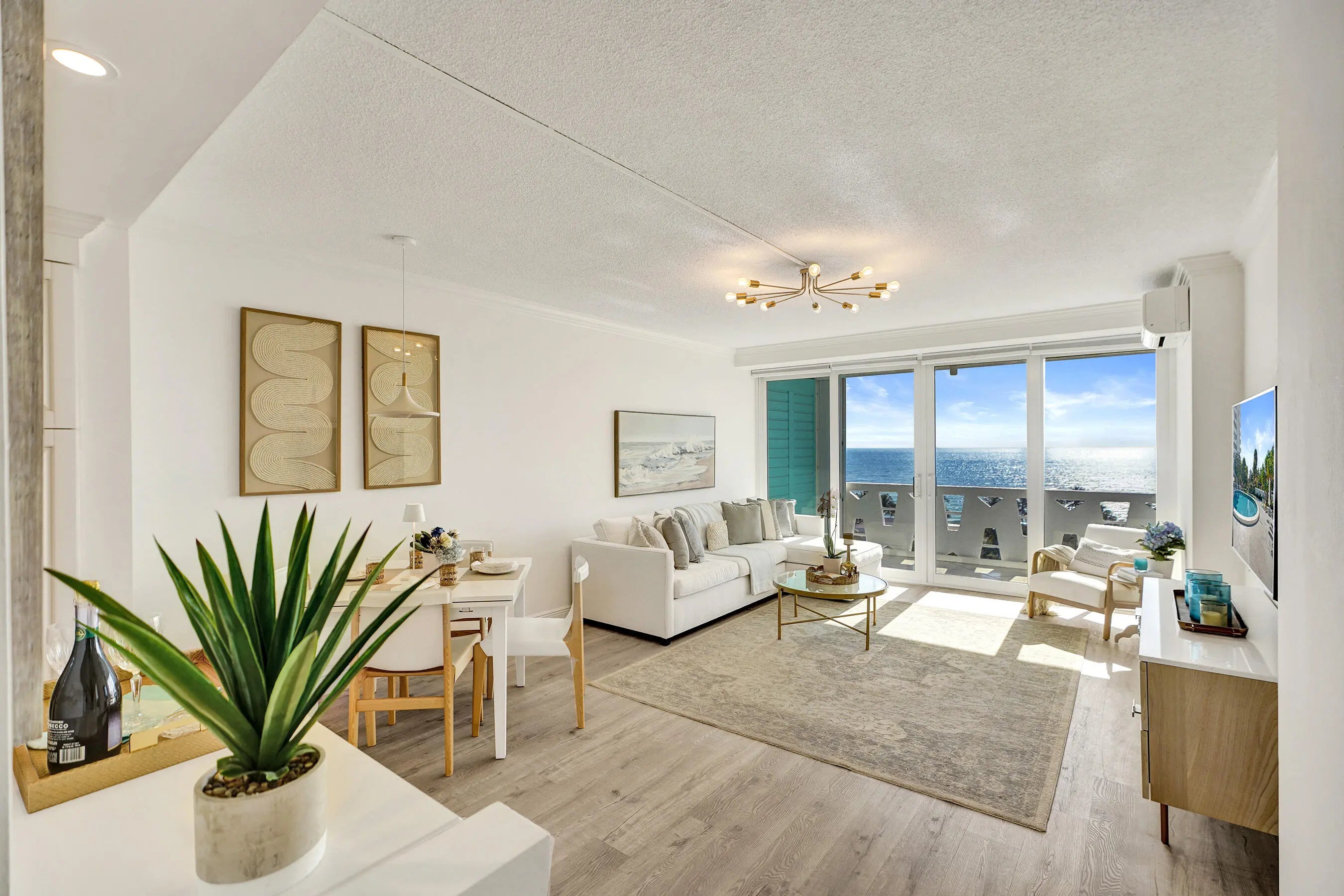 Beachfront home & the only TURN KEY top floor unit @ SeaTower! Mint condition! Move-in ready w panoramic ocean views from the open-concept layout to the floor to ceiling impact windows & doors. Modern kitchen boasts stainless appliances & granite countertops. Large, private 26 ft. terrace for entertaining- sure to wow! Over-sized walk-in closet & guaranteed extra storage area. Highlights: 2 min. walk to the beach, 5 min walk to restaurants & bars on the Intracoastal, shops, Publix, & Birch State Park bike trails. Resort-like amenities including pool, BBQ area, gym, and bike room. Concrete restoration completed and assessment fully paid.