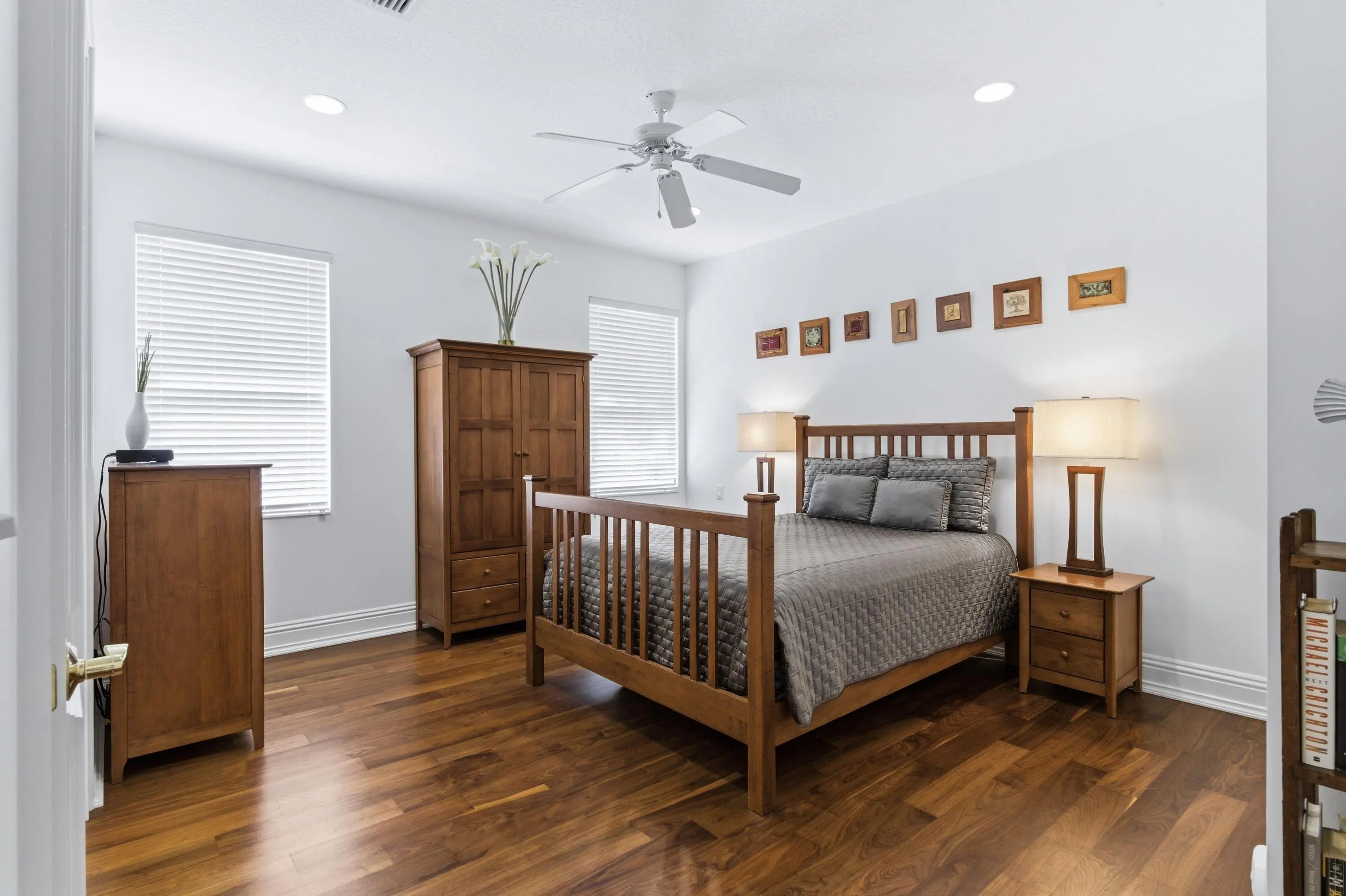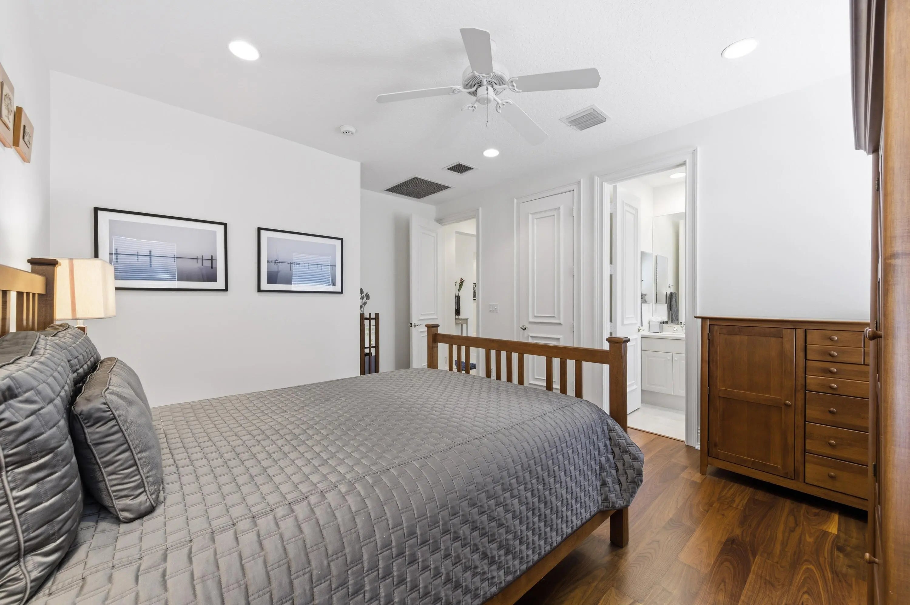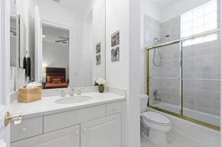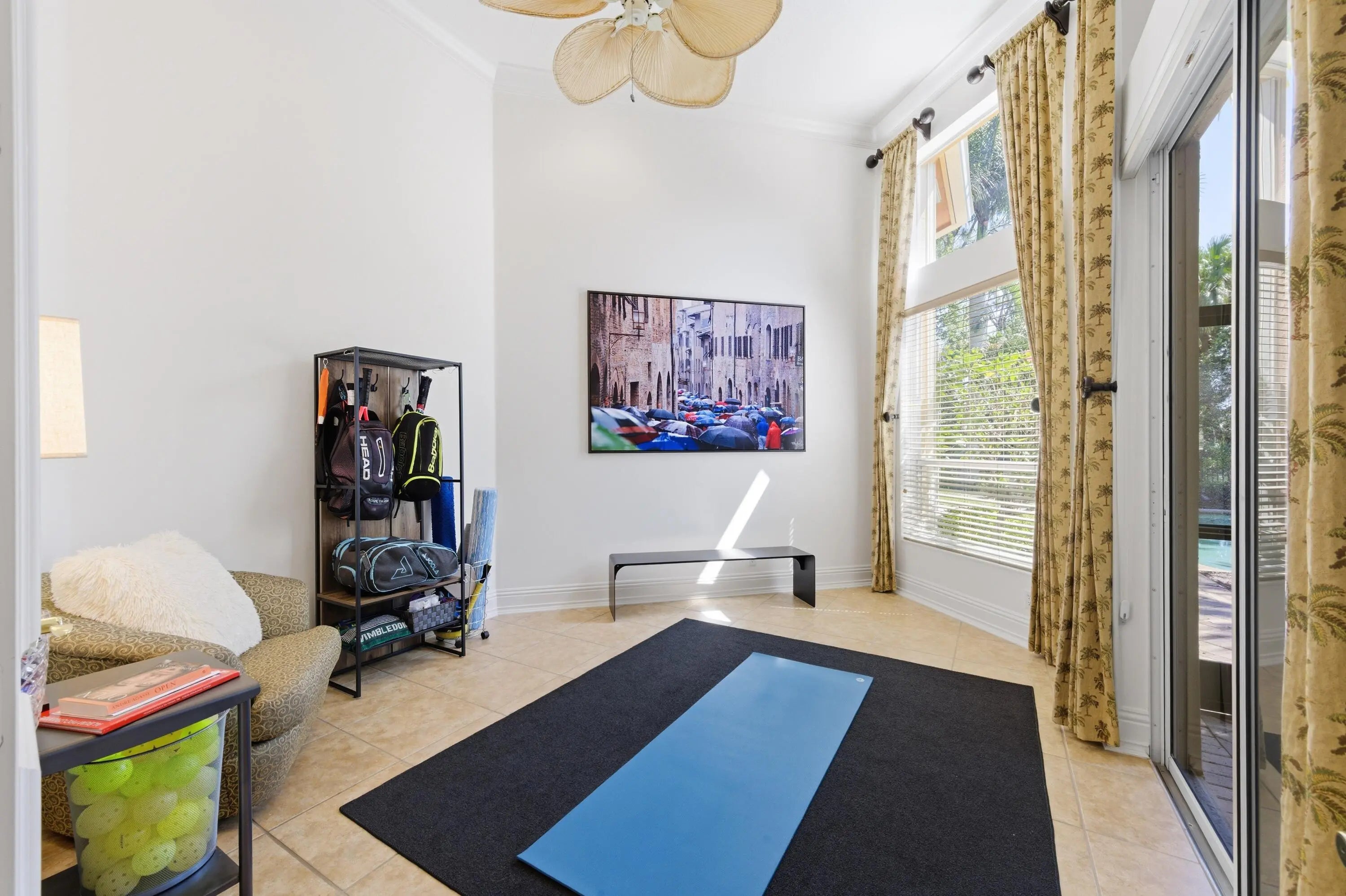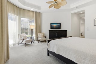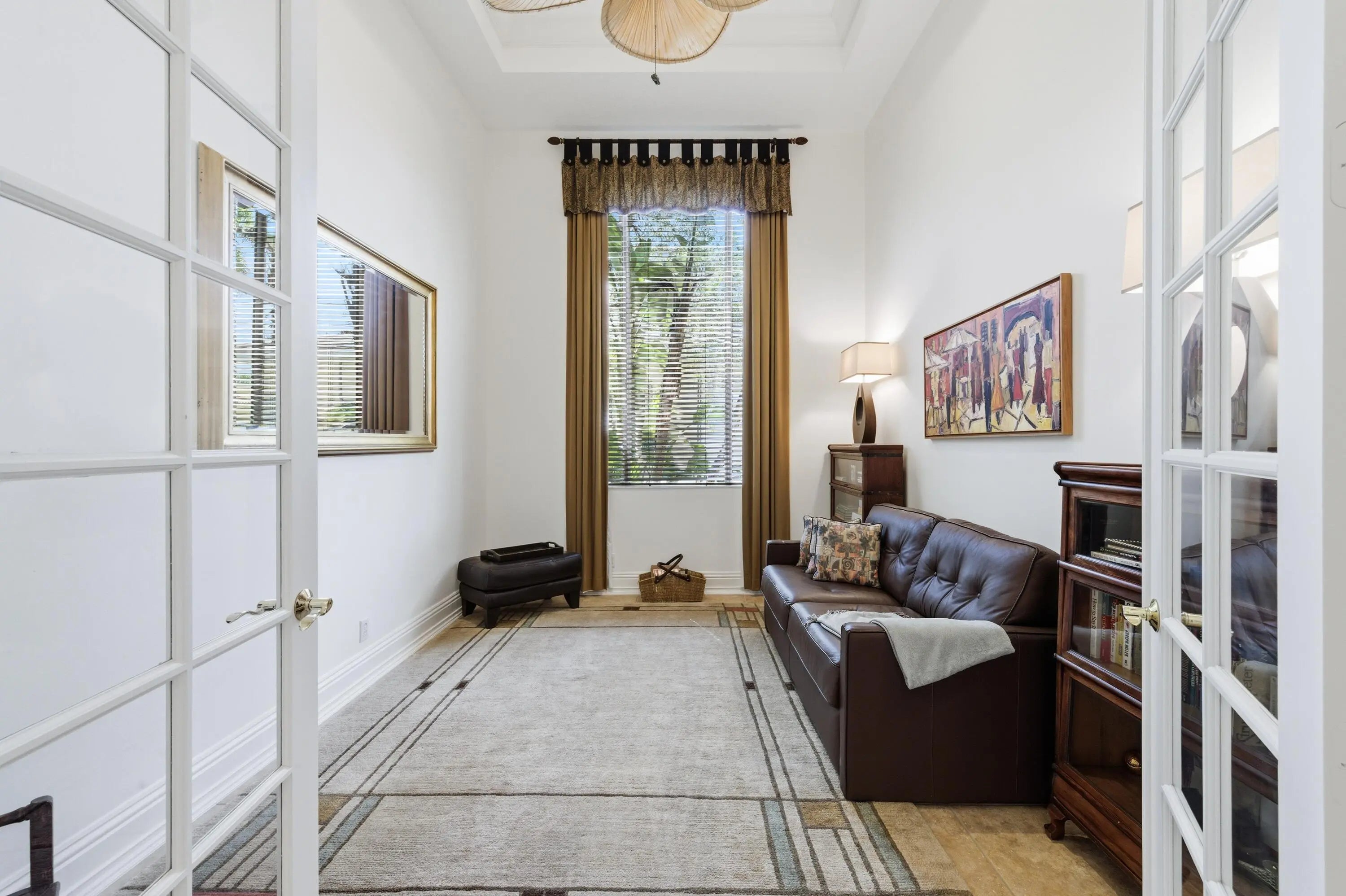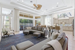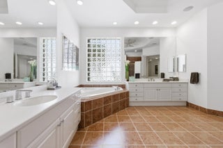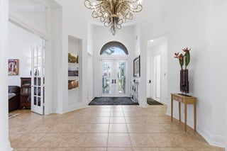 Beautiful single-story 3 bedroom 4.5 bath home on Via Paradisio in Mirasol Country Club. Steps to the clubhouse, amenities, golf, tennis and the new indoor pickleball courts in construction right now. Large great room, 3 bedrooms + office, 4.5 baths, formal dining, plus a den, 2.5-car garage and a new 2024 roof.Large open rooms , kitchen with island seating, family room with custom built-ins, primary bedroom with his and her bathrooms, dual closets , his bath can serve as a cabana bath as well for the pool. the secondary bedrooms have ensuite bathrooms. and a half bath for guests in hallway. This home was well thought out for ultimate entertaining. Relax in your screened in porch, summer kitchen , and large pool in a very private yard. Updated plumbing, and smart water system.