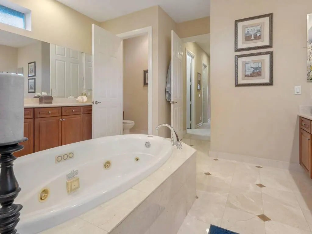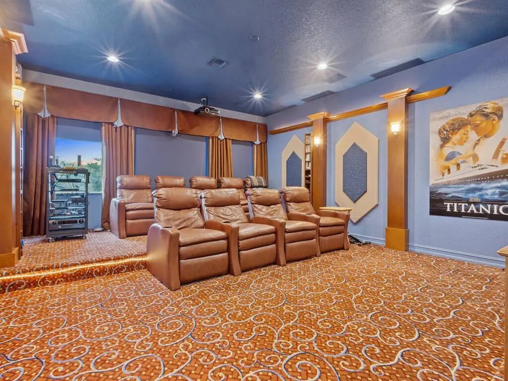 Beautiful spacious 6 beds, 5 baths, theater, office, loft, 3 car garage home in desirable Heron Bay. Overlooking tranquil lake & private nature preserve. Sparkling pool and cozy back yard with fence. Big kitchen with island and bar counter. Double ovens, pullout shelves. Open great room with nice view. Marble floors throughout. Elegant primary suite + full bed/bath + office downstairs. 20 step staircase leads up to 4 beds, 2 baths, theater + loft. Roomy theater, seats for 9 people, 110" screen, with stylish decor. Custom closets throughout home. Dual a/c's, new a/c downstairs. Central vacuum, laundry shoot. Painted outside in 2023. Elegant double, hurricane proof glass front doors. Stylish landscape lighting, upgraded landscaping, royal palms. Hurricane shutters. Top rated Parkland schools