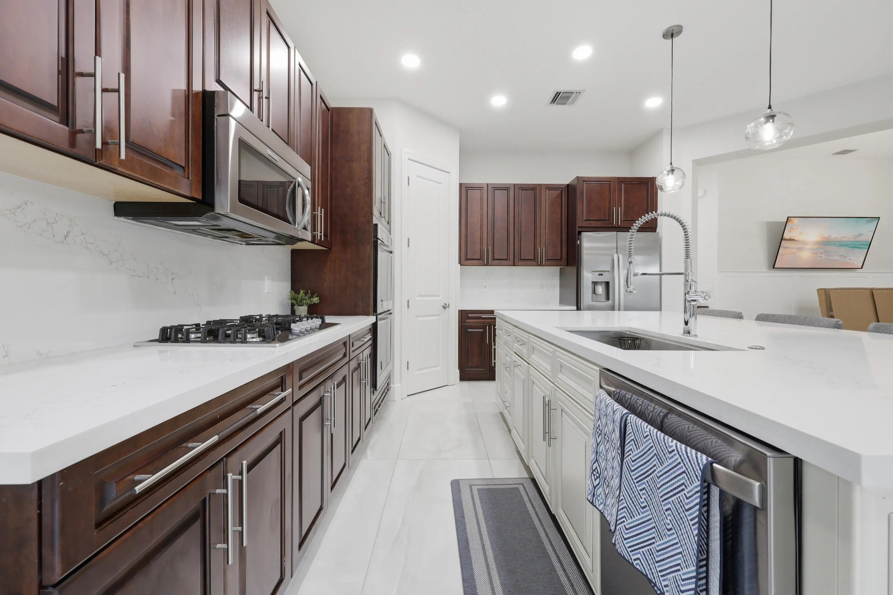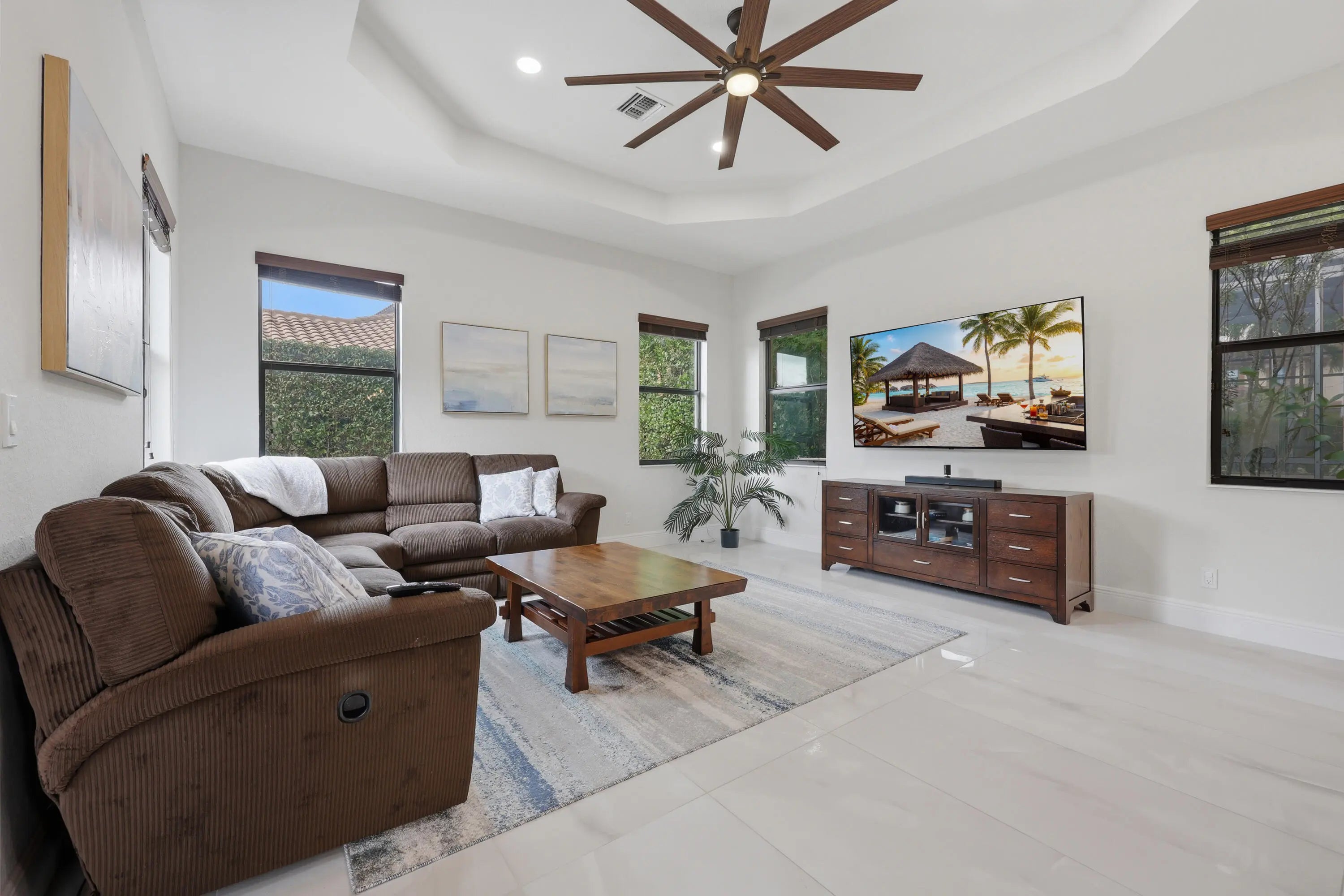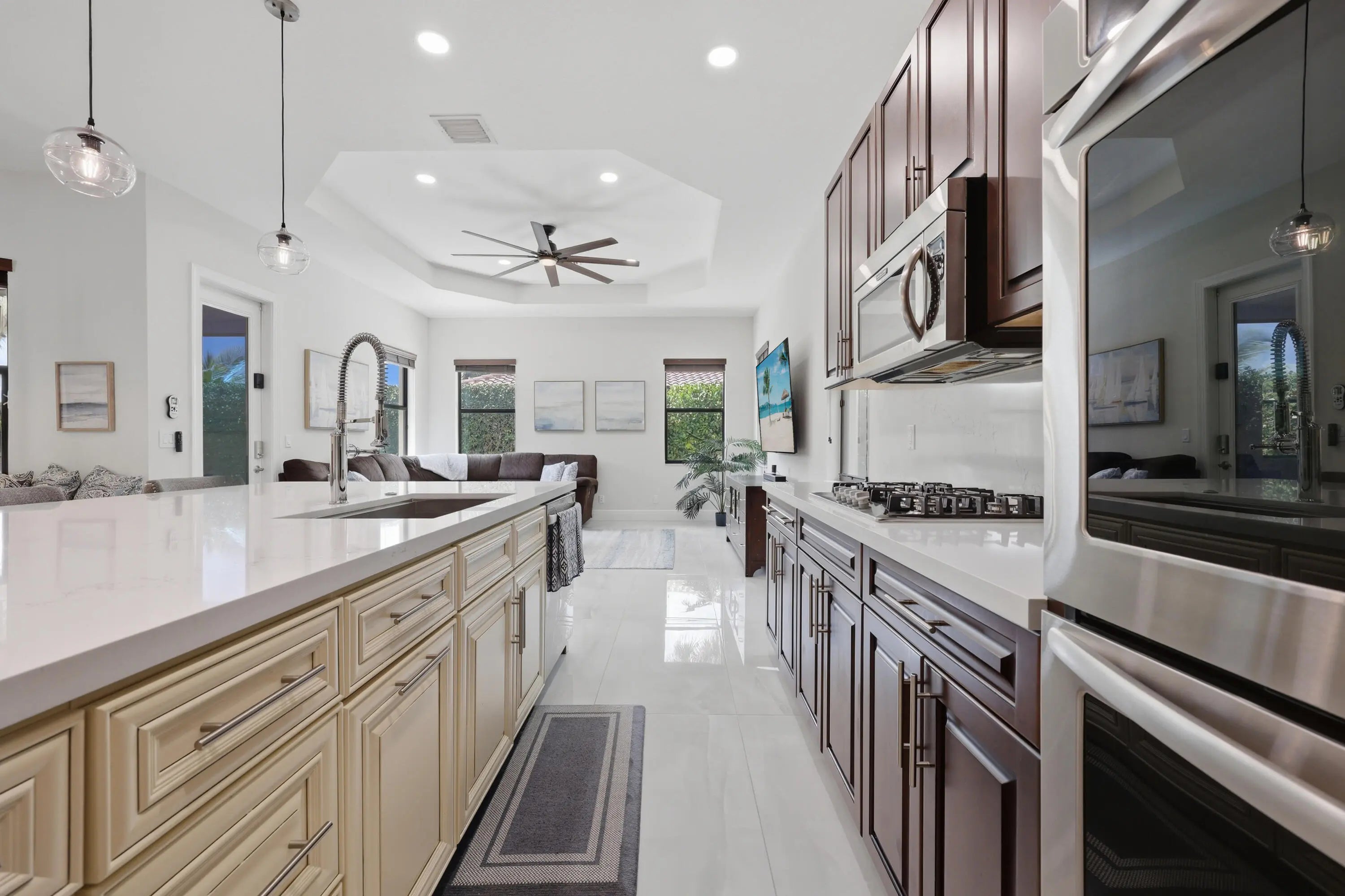 Located in the desirable Osprey Lake subdivision of Heron Bay, this modern 4-bed, 3-bath plus den pool home features a sought-after triple-split floor plan offering privacy and functionality. Interior updates include all-new flooring with 24x48 large-format tile in the main living areas and new carpet in the bedrooms. The kitchen features quartz countertops and a custom oversized island, ideal for everyday living and entertaining. Have peace of mind with full hurricane protection with impact windows and doors throughout and a full-house generator. The private backyard oasis boasts a 2022 pool, travertine deck, new pool pump, and artificial turf. Enjoy resort-style amenities for a low HOA including two clubhouses, a water park, fitness facilities, tennis, basketball and pickleball courts.