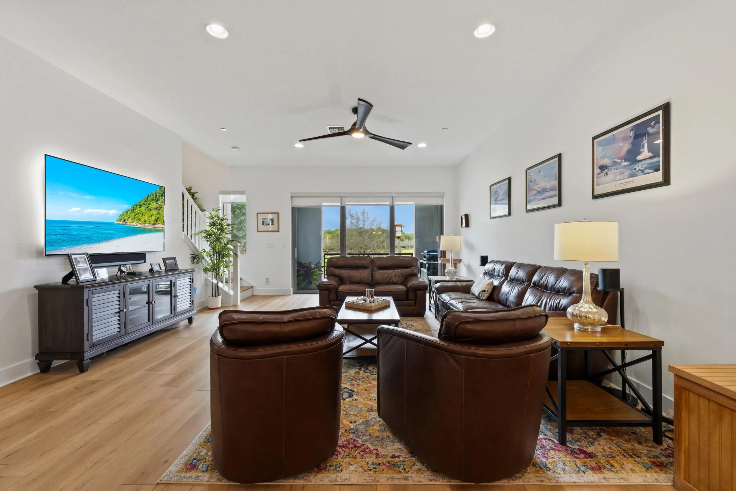 Experience the perfect blend of urban sophistication and coastal charm in the heart of Alton. This stunning three-story contemporary townhome offers 3 bedrooms plus a versatile first-floor suite featuring a full bathroom and walk-in closet—ideal as a 4th bedroom, guest retreat, home office, or flexible living space to suit your needs. Designed for modern living, the home boasts an expansive open floor plan filled with natural light and anchored by a massive chef's kitchen, complete with quartz countertops, a gas range, wall oven, and a built-in wine cooler—perfect for entertaining or everyday enjoyment. Thoughtful upgrades throughout include luxury vinyl flooring, solid oak stairs, and a customized, expanded laundry area that offers more space and functionality than most units. The primary suite features its own private balcony, creating a peaceful retreat. What truly sets this home apart is its premier location directly across from a serene lake, providing stunning water views from nearly every room, including both balconies and the patio. Just steps away, you can walk to Alton's vibrant shopping and dining district as well as the clubhouse and all Alton's resort style amenities making this one of the most conveniently located and desirable townhomes in the community. Residents enjoy access to a beautifully designed clubhouse with resort-style amenities, including a state-of-the-art fitness center, community events, and activities for all ages. Alton also features a dog park and is ideally situated close to everything South Florida has to offer. Live where lifestyle, luxury, and location come together—this is Alton at its finest.