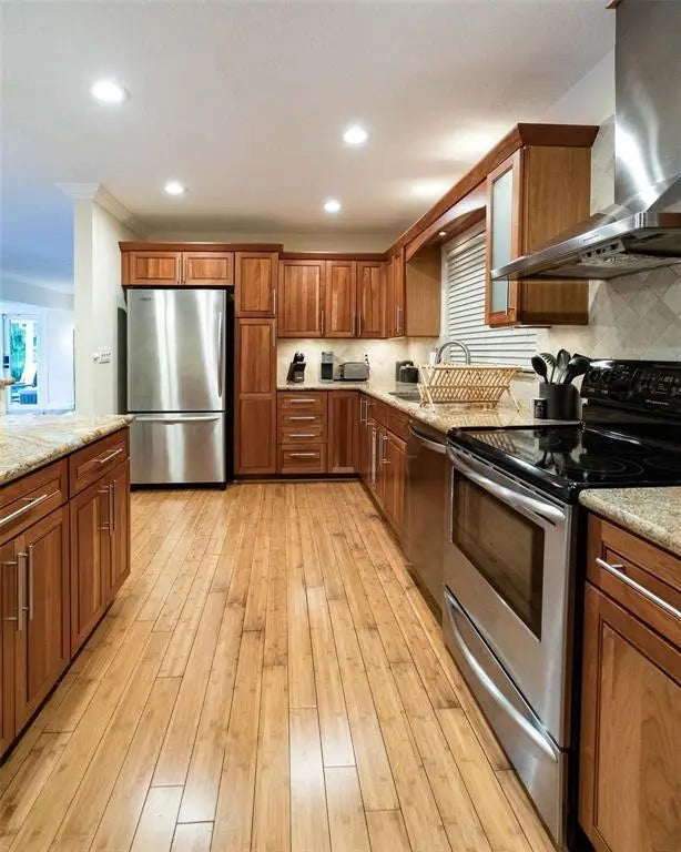 Fully furnished 3 bedroom 2 bathroom , updated ranch home in a charming Old Florida community! This gem features hurricane impact windows and doors, a gourmet kitchen with cherry cabinets, granite counters, marble backsplash, stainless appliances, and bamboo floors. Both baths are updated with marble floors, new vanities, and fixtures. The open floor plan includes a spacious kitchen, living, and dining areas, all overlooking a custom pool and a beautifully landscaped, private backyard with a covered patio. Enjoy a large driveway and two-car garage. Located on a quiet street east of US-1 only 8 minutes to the beach, Galleria Mall, and steps from top restaurants, Whole Foods, 2 miles from Las Olas Blvd and Brightline station . Schedule your tour today! A fantastic value and location!