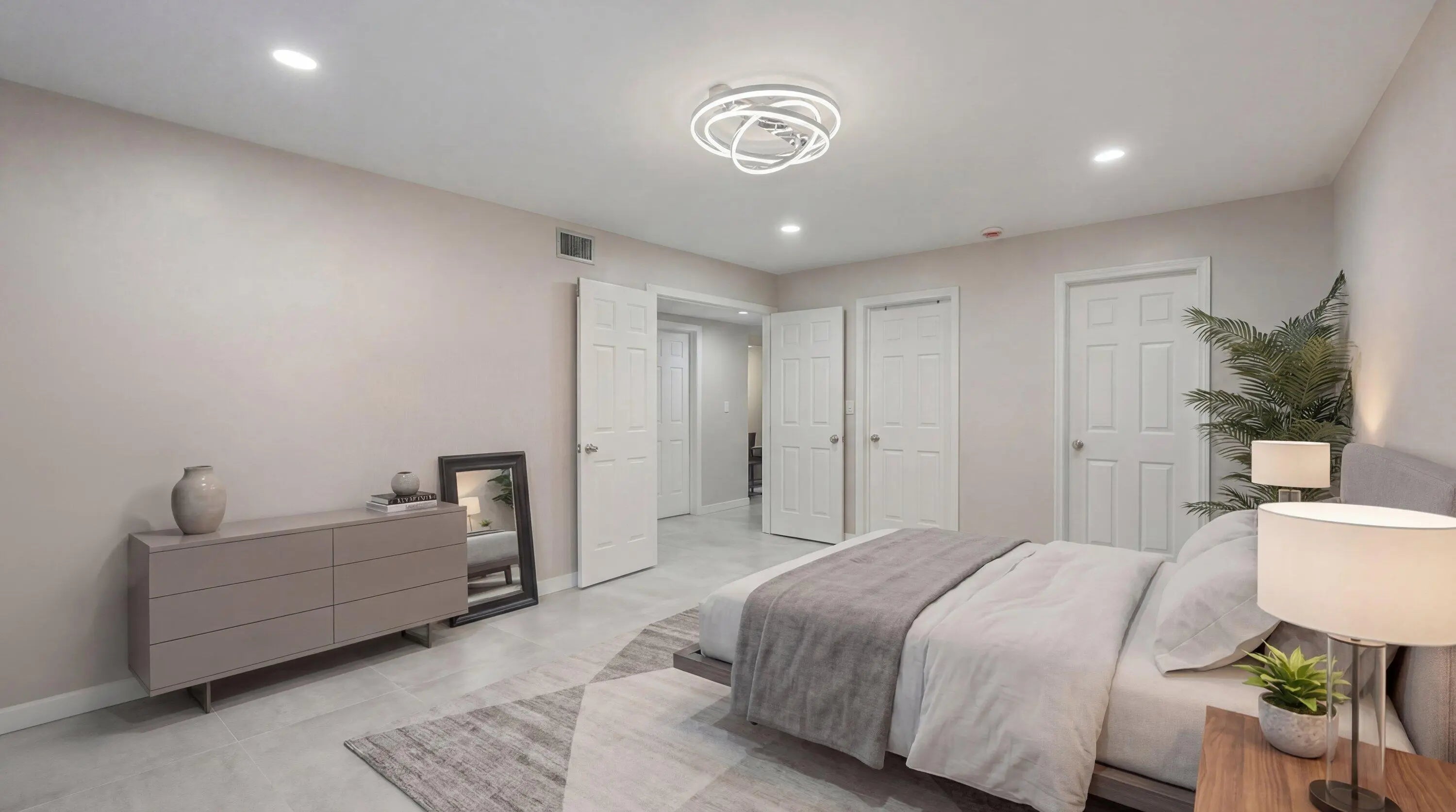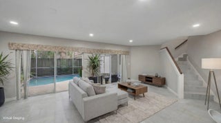 Stunning, fully renovated townhouse featuring a private pool and serene lake views! This beautifully updated home offers 3 spacious bedrooms and 2 full bathrooms upstairs, with a convenient half bathroom and laundry room located on the main floor. The open-concept living room and kitchen showcase gorgeous new cabinetry, quartz countertops, and brand-new stainless steel appliances. Enjoy modern living with sleek porcelain cement tile flooring throughout the entire home—both stylish and easy to maintain. Major upgrades include a brand-new air conditioning system with updated ductwork, a new hot water heater, and completely renovated bathrooms featuring walk-in showers in both full baths. Step outside to your screened-in pool and patio area, perfect for relaxing or entertaining, complete with a new pool pump. Additional upgrades include new recessed lighting in the kitchen and fresh interior paint throughout. The outdoor setting offers peaceful lake views and a large shared green space with mature trees providing ample shade. Ideally located in the heart of Palm Beach Gardens, you're just minutes from downtown Palm Beach Gardens, LifeTime Fitness Center, Whole Foods, Trader Joes, and additional premier shopping, dining, and entertainment, as well as a short drive to the beach. HOA includes cable and trash services. Pet-friendly community (up to 2 pets allowed), with immediate leasing permitted. Includes two reserved parking spaces and is zoned for top-rated schools.