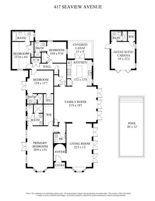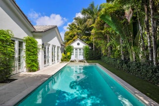 Located in the heart of Palm Beach, this quintessential Palm Beach residence is available for rent and offers 4 bedrooms, 4.5 bathrooms, along with a separate 1 bedroom, 1 bathroom guesthouse across 2,567 total sqft. A beautifully landscaped entrance offers a welcoming arrival, leading into charming and bright interiors finished with hardwood floors and classic tongue-and-groove ceilings. The sun-filled living area features walls of glass doors that extend across the home, opening to views of the lush gardens. The bright kitchen is outfitted with professional-grade appliances, dual dishwashers, and stone countertops. The primary suite is equally light-filled with abundant windows, a spacious walk-in closet, and a well-appointed bath featuring dual vanities, a walk-in shower, and a private water closet. Three additional bedrooms each offer en-suite bathrooms. The detached 1 bedroom, 1 bathroom guesthouse/cabana includes a full bath and loft, ideal for guests or additional living space. Outdoors, a covered patio and pool are surrounded by beautifully landscaped grounds that provide exceptional privacy and a serene garden setting. Ideally located just one block from the Lake Trail, within walking distance to the beach, and moments from Worth Avenue and the very best of Palm Beach dining, shopping, and entertainment.