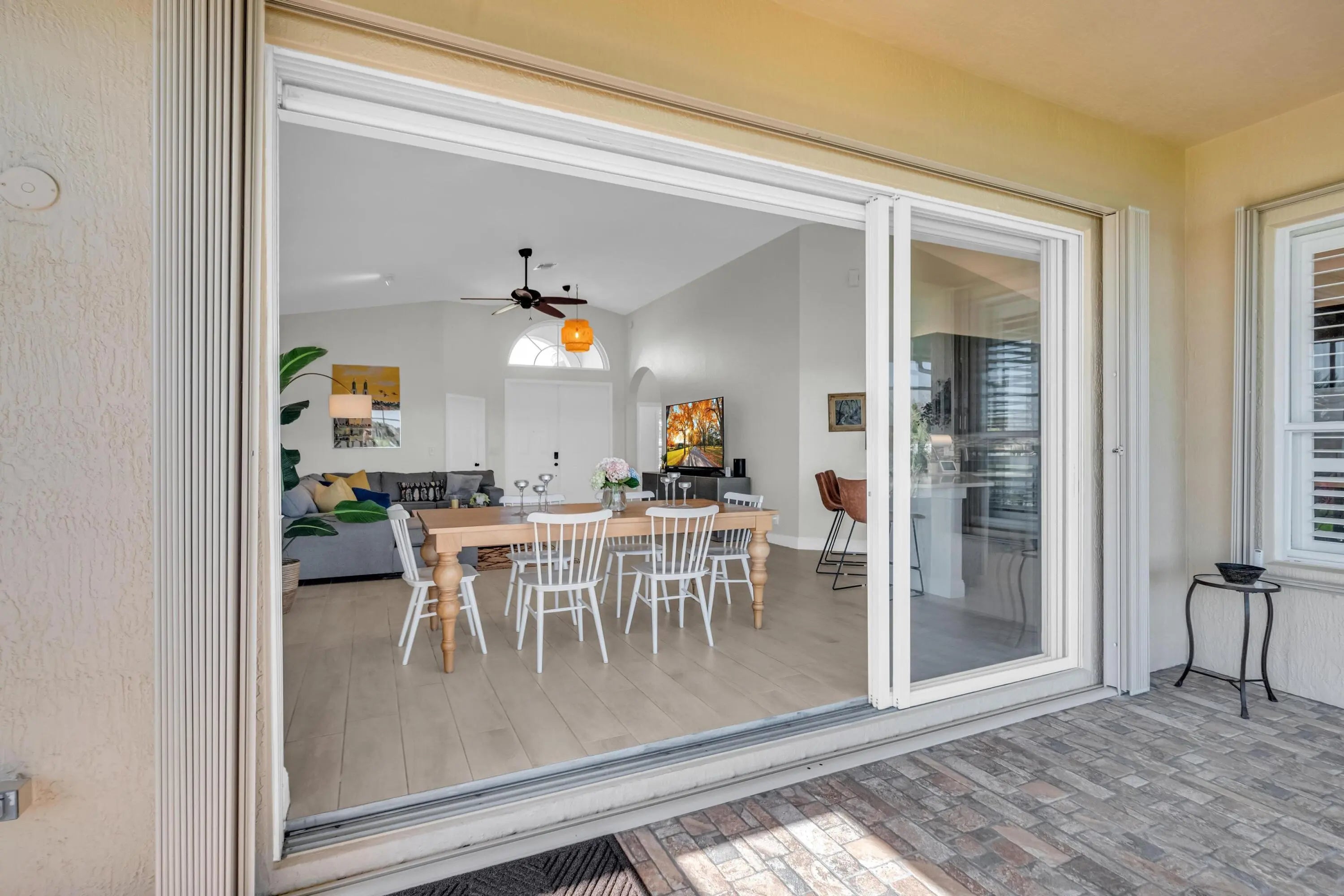 Experience luxury waterfront living in Portofino Shores! This beautifully updated Gallio on the Lake model offers stunning lake views and a bright, open layout. Features include a new roof (2025), renovated kitchen and bathrooms with premium finishes, plank tile flooring, plantation shutters, impact windows, and accordion shutters. Enjoy peaceful sunsets from the spacious screened lanai. Gated community with 24-hour security and resort-style amenities including pool, fitness center, tennis and basketball court. ! Perfectly situated just minutes from Vero Beach, pristine Atlantic beaches, fine dining, and convenient access to I-95. This residence offers the ultimate blend of exclusivity and accessibility. Move-in ready and impeccably maintained—don't miss this exceptional opportunity