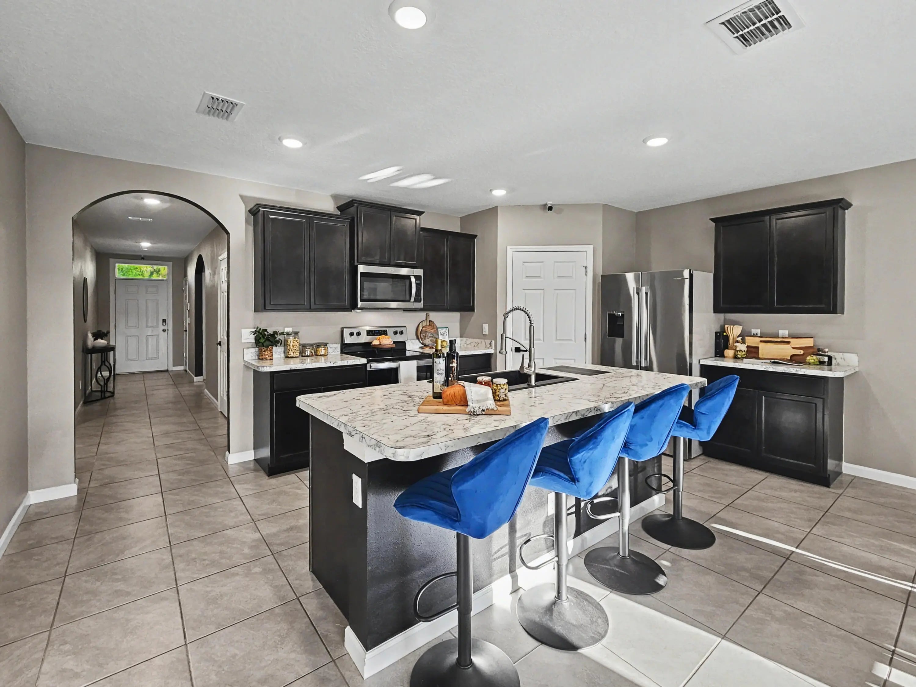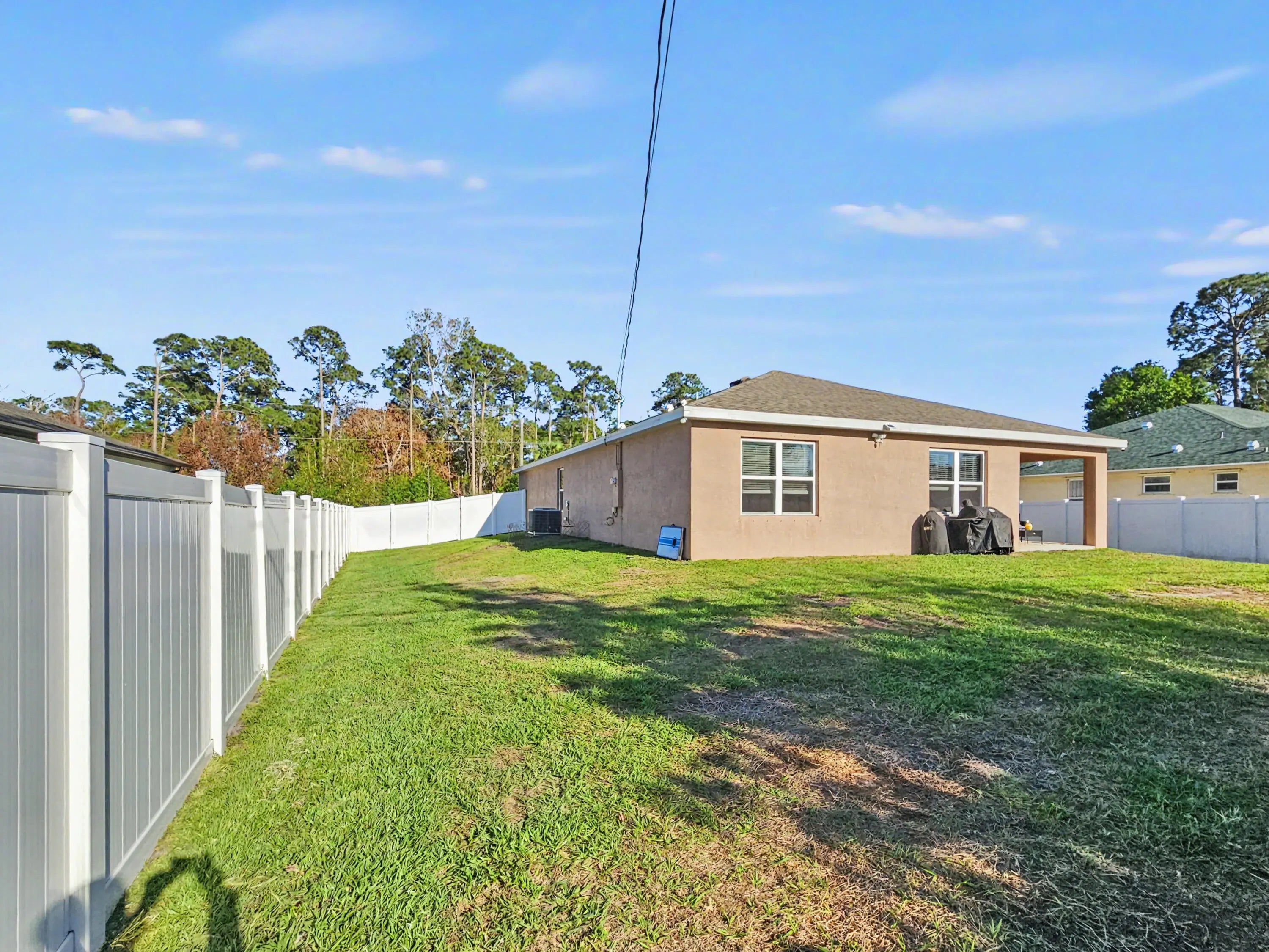 Directly across from a protected preserve where no future building can take place, this home delivers a rare sense of permanent privacy with no neighbors in front, just peaceful, natural views that elevate everyday living. 2022 AC, roof, appliances, and construction delivering modern efficiency, potential insurance advantages, and a fully upgraded, move-in ready home. A bright, open-concept layout showcases sleek tile flooring throughout the main living areas and modern finishes that create a clean, elevated feel. Enjoy the ease of single-story living with no stairs and a thoughtfully designed split floor plan that balances open living and private spaces. The kitchen is the centerpiece, complete with a large island offering bar seating, 36" cabinetry, stainless steel appliances, and a walk-in pantry. The dining area overlooks the patio, creating seamless indoor-outdoor flow that's perfect for entertaining. The master bedroom suite comfortably fits king-size furnishings and features a well-appointed ensuite with a walk-in shower, double vanity, separate water room, linen closet, and a spacious walk-in closet. The guest bathroom offers a tub/shower combo with a nicely sized vanity and is ideally positioned between two bedrooms, while the fourth bedroom is currently used as an office. Sleek, modern ceiling fans in every room help keep the home cool and comfortable year-round. Generous closets throughout, additional storage spaces, and a spacious laundry room with full-size appliances add to the home's everyday functionality. The fully fenced backyard with new vinyl fencing creates a private and versatile outdoor space—ideal for pets, gatherings, or designing your future retreat, with plenty of room for a pool. The covered patio offers a comfortable setting for relaxing or entertaining. A side gate opens for easy access—perfect for storing a boat, trailer, or additional equipment. This home includes double-pane windows that flood the entire home with natural sunlight and hurricane panel protection, along with a smart home package, multi-camera security system, and a 2-car garage with opener. No HOA restrictions or fees. Conveniently located near Becker Road with quick access to both the Florida Turnpike and I-95, this home offers seamless connectivity throughout the Treasure Coast and beyond. Crosstown Parkway is just minutes away, making east-west travel across Port St. Lucie simple and efficient. Enjoy close proximity to everyday conveniences along Gatlin Boulevard and the rapidly growing Becker Road corridor, including shopping, dining, and essential services. Outdoor enthusiasts will appreciate nearby parks, walking trails, and nature preserves, along with easy access to boat ramps, kayaking, and some of the area's best fishing. Just a short drive brings you to the beaches of Jensen Beach and Hutchinson Island, while St. Lucie West offers additional dining, entertainment, and attractions including Clover Park, home to the New York Mets Spring Training. Positioned in one of Port St. Lucie's fastest-growing areas, this home combines modern living with accessibility, lifestyle, and long-term upside.