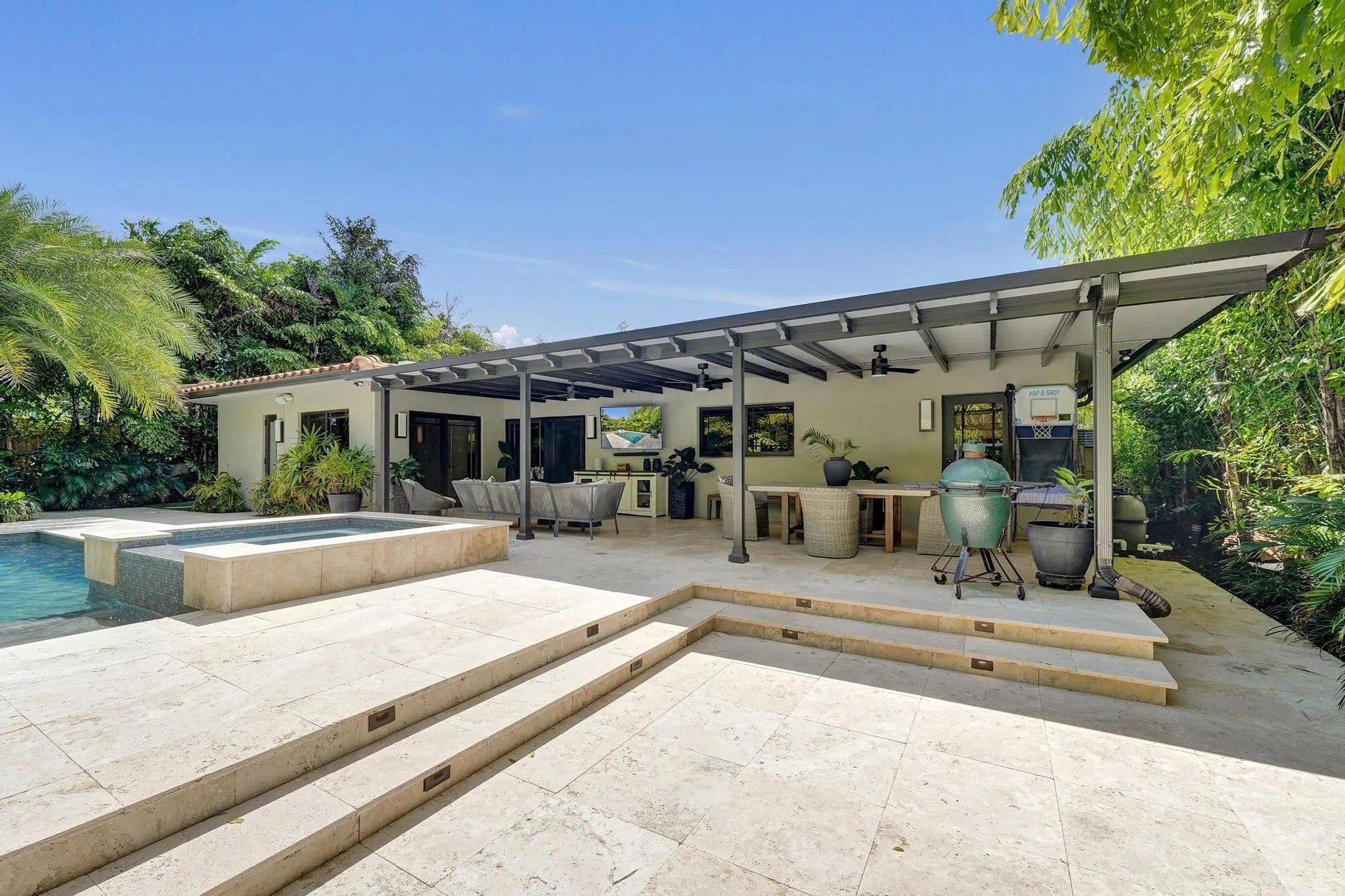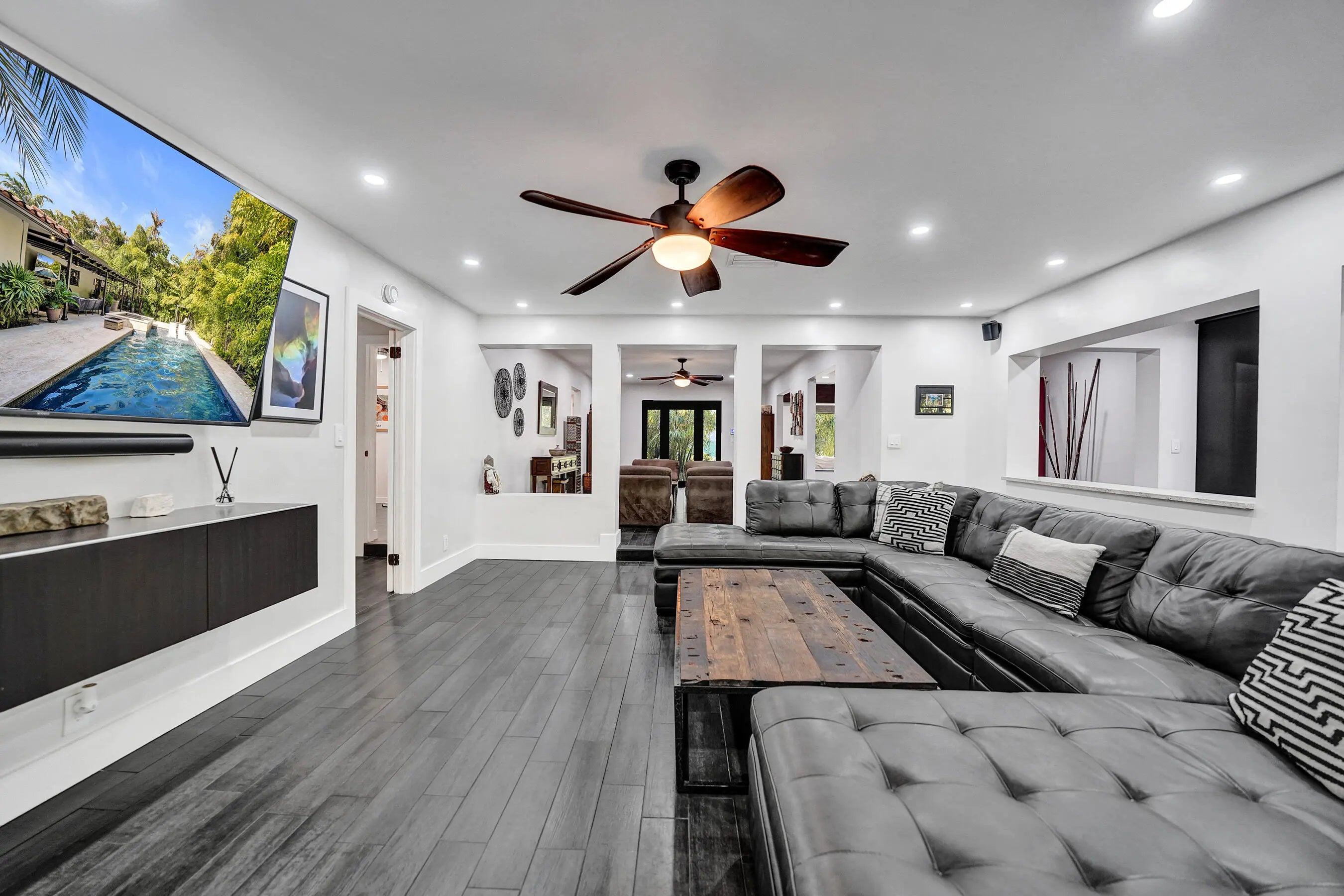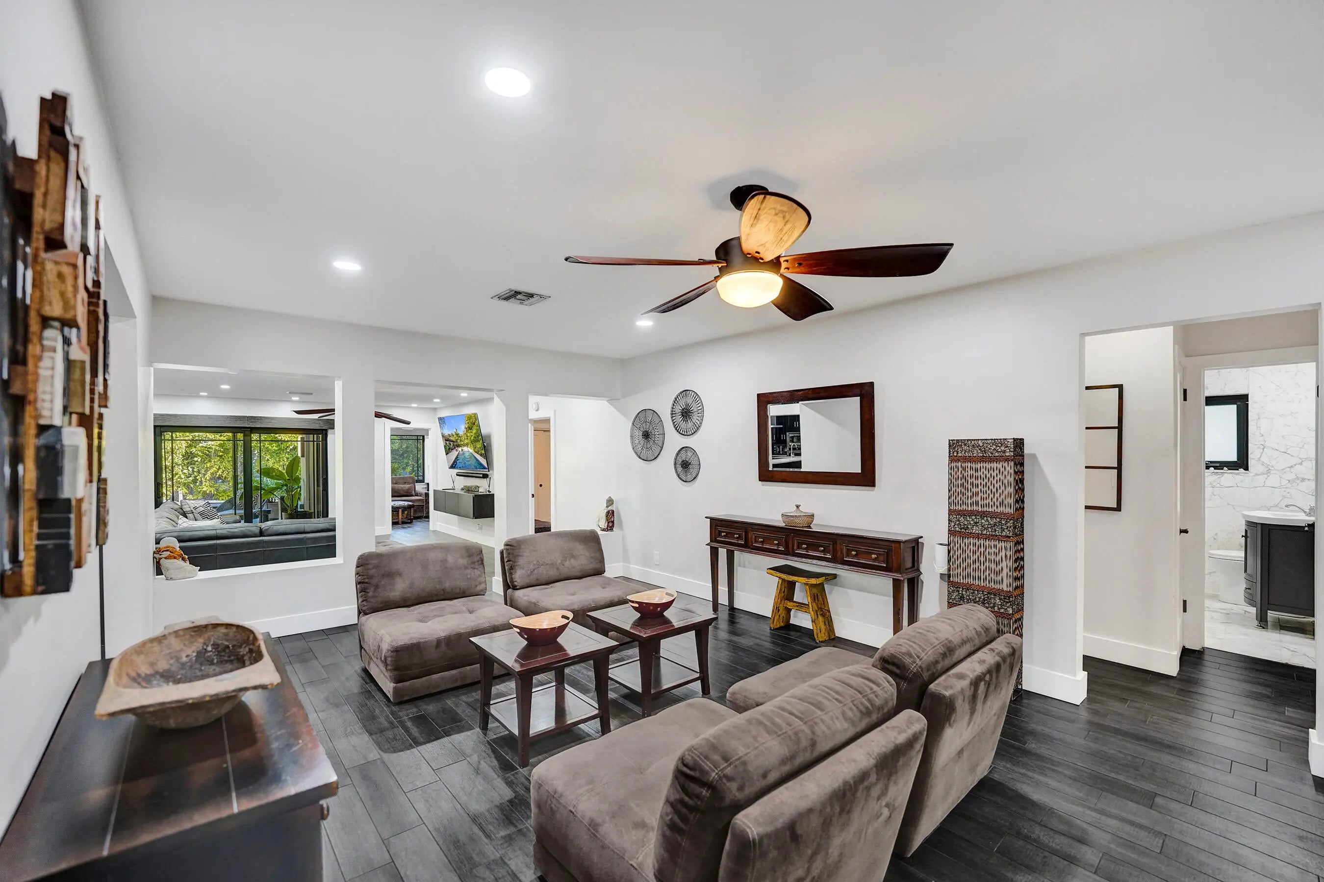 Experience a tue sense of zen in this Coral Ridge home which offers over 3,000 sq ft of living space designed for effortless South Florida living. Enjoy multiple living areas with vast space & volume ceilings, a generous kitchen with oversized breakfast nook & walk-in pantry plus seamless indoor-outdoor flow to an expansive patio and private pool with travertine deck—perfect for entertaining year-round. All rooms are spacious with high ceilings. This home has been completely re-designed and meticiouslly maintained. Two primary suites plus an additional ensuite bedroom- see floorplan. Only 2 streets north of Bayview Elementary, parks, shopping, dining, and just 1.3 miles to the beach. This home delivers the ultimate Fort Lauderdale lifestyle.