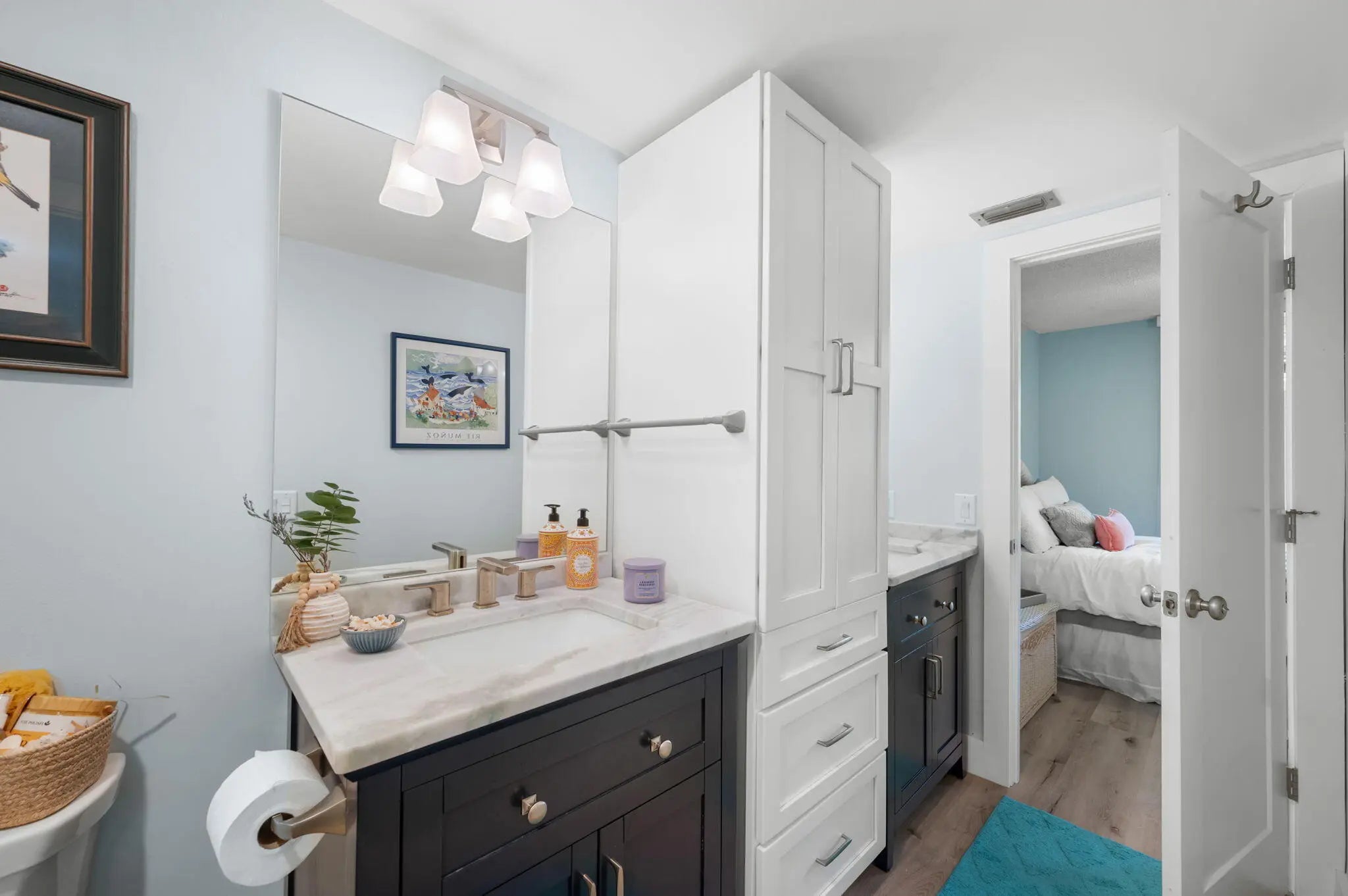 Nestled between the Jensen Beach Causeway and the beach, this exceptional location offers walking distance to both, while remaining conveniently close to all the mainland amenities—ideal for your Florida escape. From the stunning quartz counters, to the remote control blinds, not one detail has been overlooked. With the new A/C, water heater, 2 year old appliances and impact glass throughout, there is nothing to worry about, except when to move! The well thought out floor plan features split bedrooms, that open to the Florida Room and the guest bathroom opens to the foyer and the guest room. The Florida room boasts, tile floor, a storage room and an exit door right to the pool. Fairwinds Cove offers a community pool, tennis, gym clubhouse, and a walking path along the Indian River.