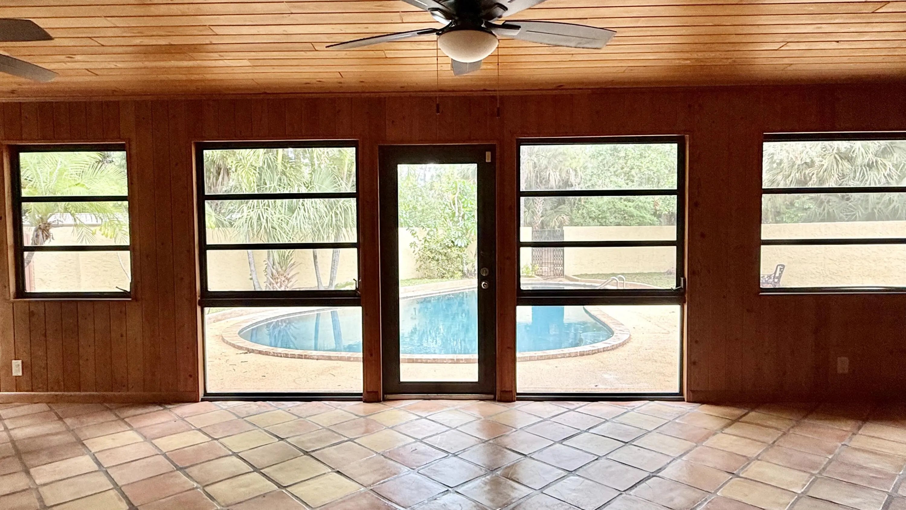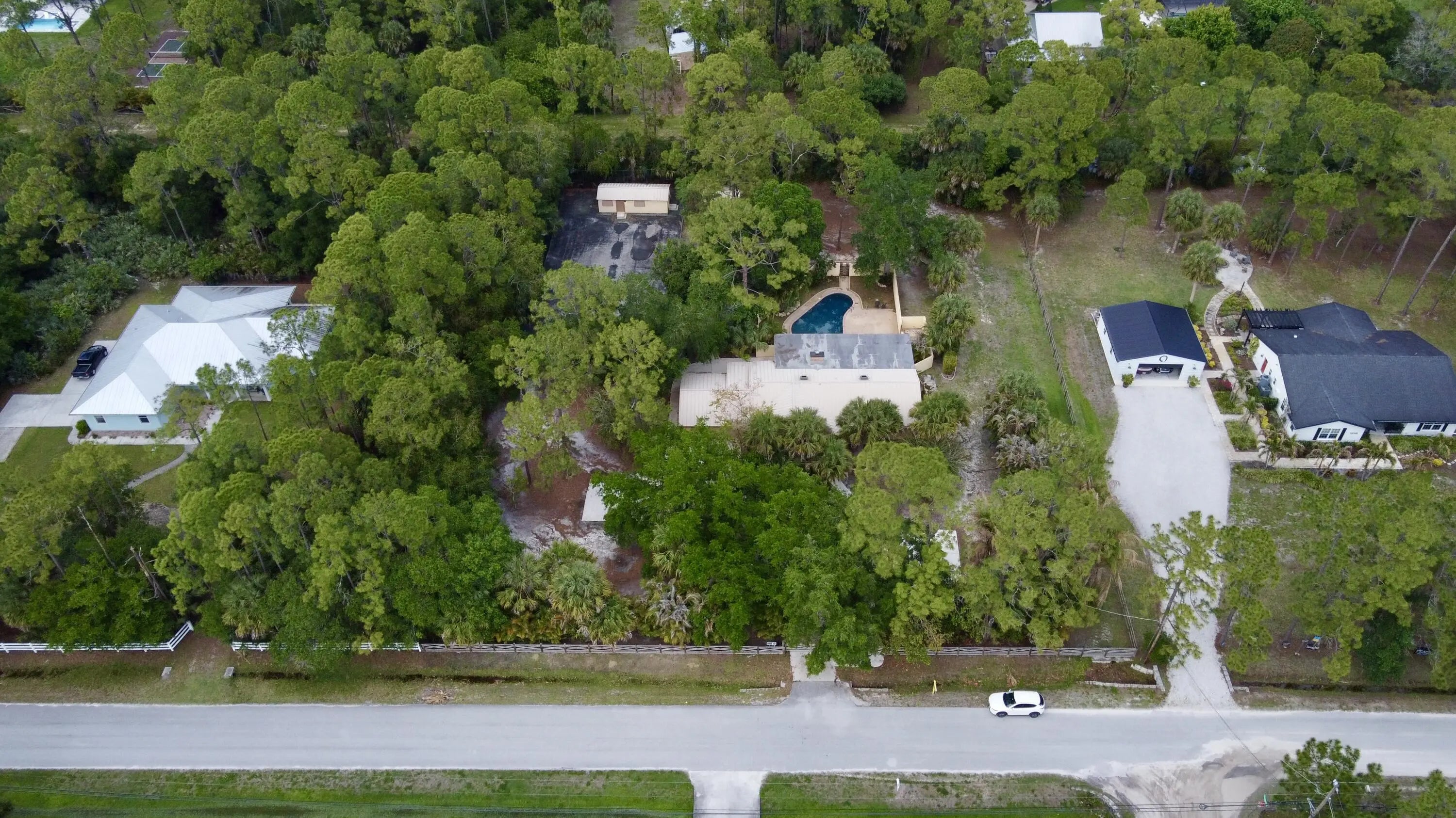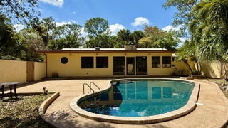 This CBS construction POOL home with a 2017 Standing Seam Metal ROOF on 1.50 ACRES in Jupiter Farms is ready for you to make your own. 3 Bedrooms 3 Bathrooms 2 Car Garage with private enclosed porch and pool patio. Newly renovated Salt Water Pool with new equipment & complete Soft Crete Rubberized Pool Deck finish never gets hot & requires no maintenance. Property is completely fenced with large circular driveway, Tennis/Pickle Ball court (asphalt requires maintenance) with LED lighting with a well built Native American Chickee Hut & AC'd Detached Office/Guest Quarters. Property is located on a Paved road backing up to a quiet waterway, enjoying the privacy of no rear adjoining properties. A+ Schools and minutes from beaches, rivers, preserves, shopping & restaurants.