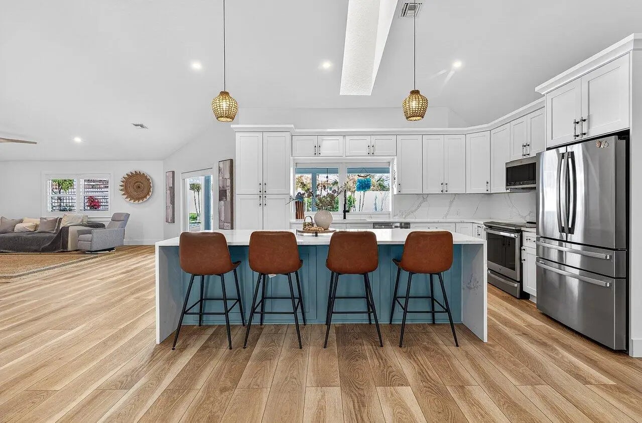 Stunning Renovation of this open concept 3 Bedroom, 3 Bath Home in the sought after Gomez Grant section of Hobe Sound. Gorgeous New Gourmet Island Kitchen defined by Shaker Cabinets, Quartz Countertops & Stainless Appliances, Beautiful New Baths & Flooring, Spacious Master Suite, Laundry Room w/ Custom Cabinetry, Quartz & Soak Sink, Metal Roof, Impact Windows & Doors, Plantation Shutters, Plus, an Exquisite New Open Air, Heated, Saltwater Filtration Pool, Trellis & Fully Fenced Backyard. All nestled on a Fabulous 1/3 acre, professionally landscaped & lighted, Cul de sac Lot with 15 different types of fruit trees. A Private Oasis & Spectacular Lifestyle!