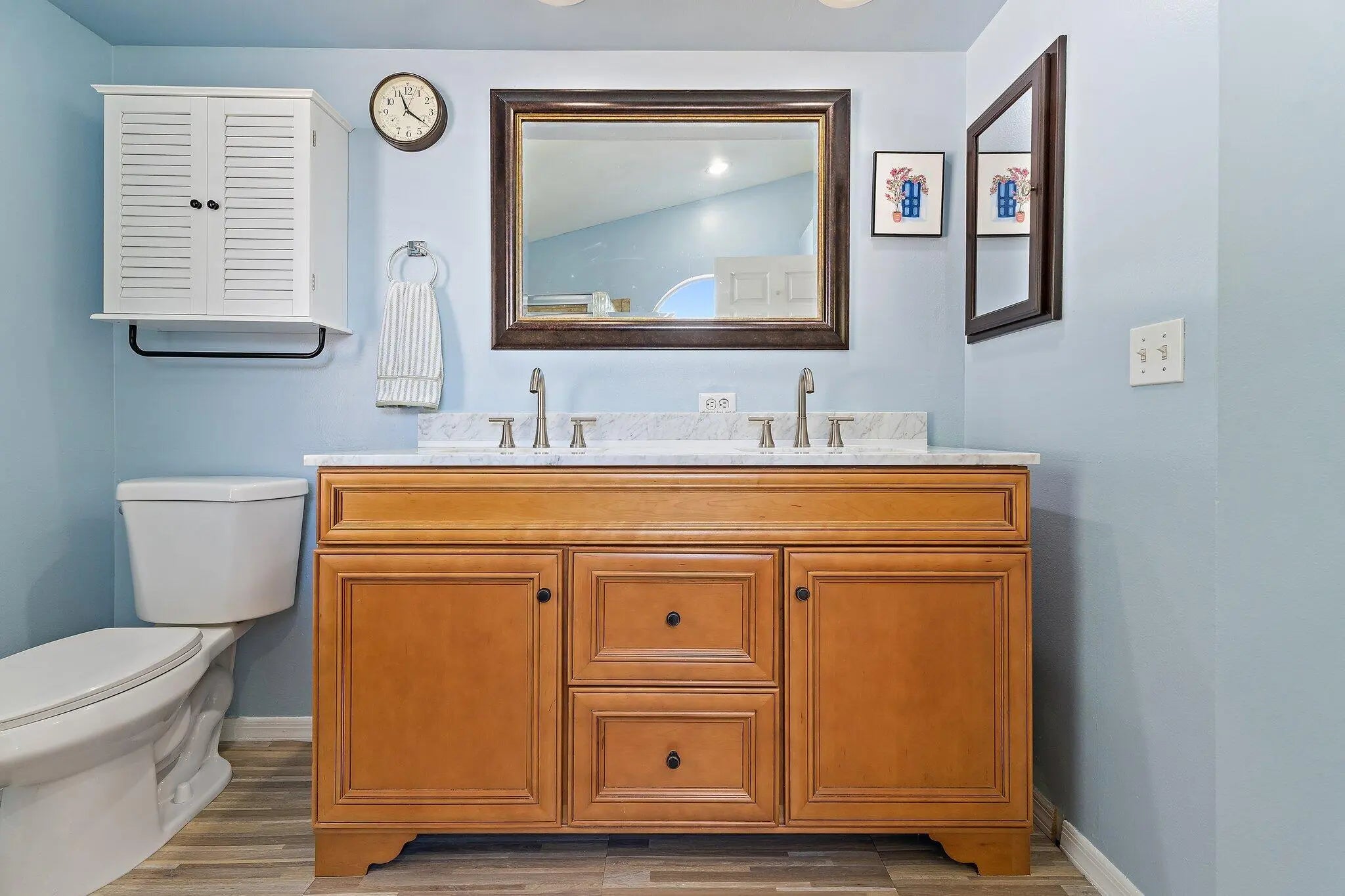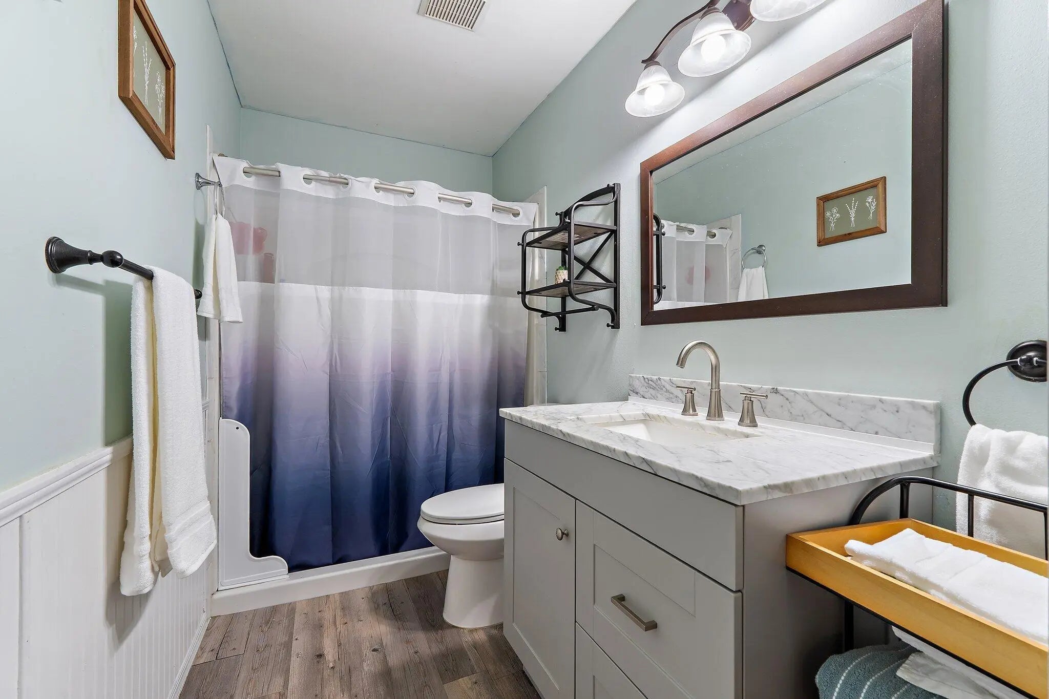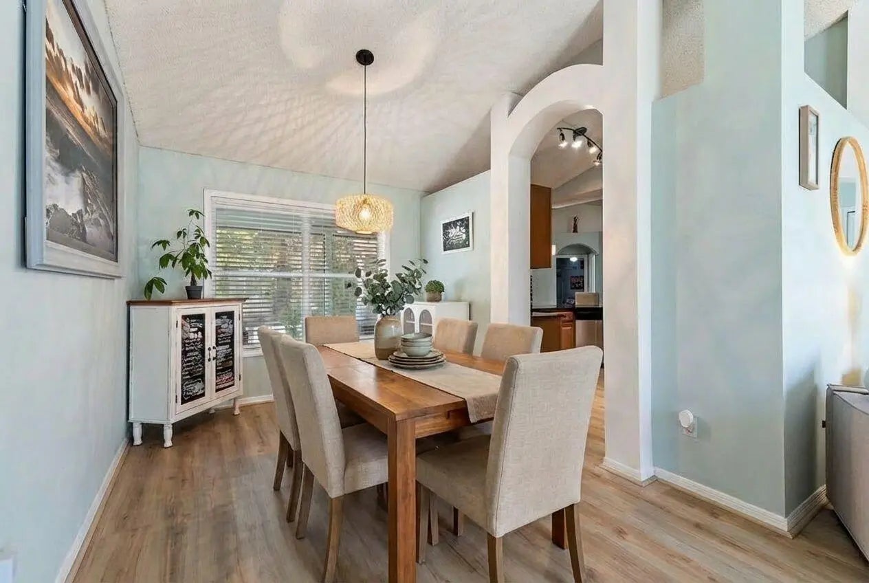 This beautifully maintained home is ideally located in the sought-after Jensen Park Estates, offering a LOW HOA and a friendly neighborhood environment just minutes from the scenic Indian River and Jensen Beach's pristine beaches. This 3-bedroom, 2-bath residence features numerous upgrades and a private outdoor retreat. Enjoy a fully fenced backyard with a solar-heated pool (2015), mature trees providing privacy and a tranquil setting, plus two storage sheds for added convenience. Inside, the open floor plan showcases an updated kitchen with solid wood cabinetry, stainless steel appliances, granite countertops, and new flooring throughout the main living areas and bathrooms. The primary suite offers updated vanity with double sinks, a separate shower, and a relaxing soaking tub. Located in an A-rated school district and zoned for Jensen Beach High School, this home is just a short walk or bike ride to historic downtown Jensen Beach—known for its charming art cottages, unique boutiques, live music, popular eateries, festivals, community events, and award-winning dining. 2-car garage currently configured with a temporary partition wall. Sellers will remove upon request.