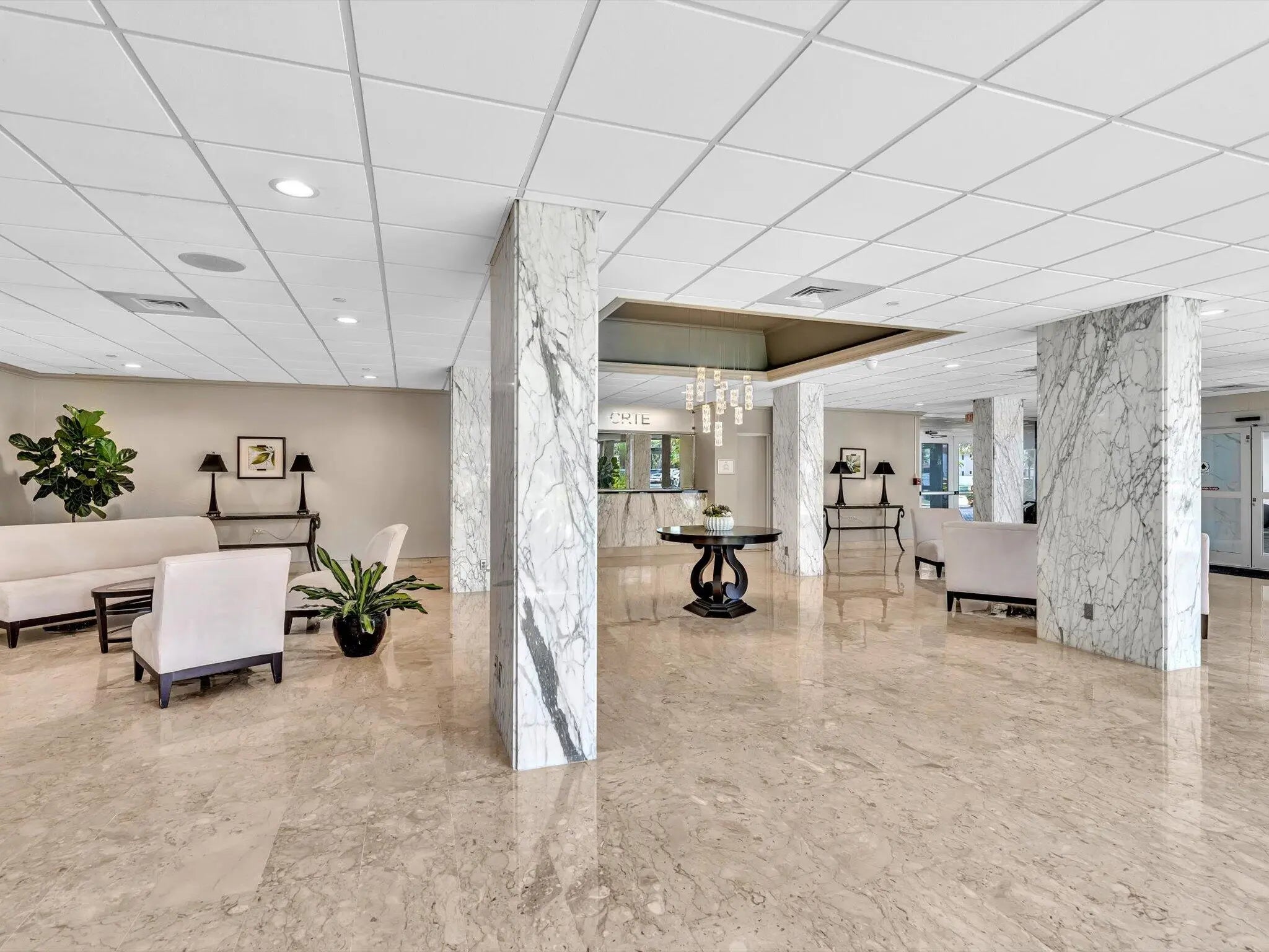Very Cute One bedroom looking over the pool with an ocean view. SouthEast exposure allows in an abundance of natural light without the direct heat. Tons of cabinet space in kitchen and many closets throughout. Resort style building on 5+ acres with full amenities including heated pool, bocce ball court, fitness center, IntraCoastal Clubhouse, 24/7 Security, onsite management. Close to everything - many seasonal residents do not bother with keeping a car here because everything is so close.