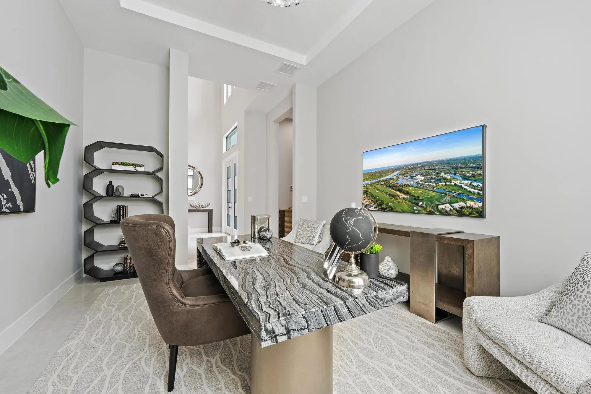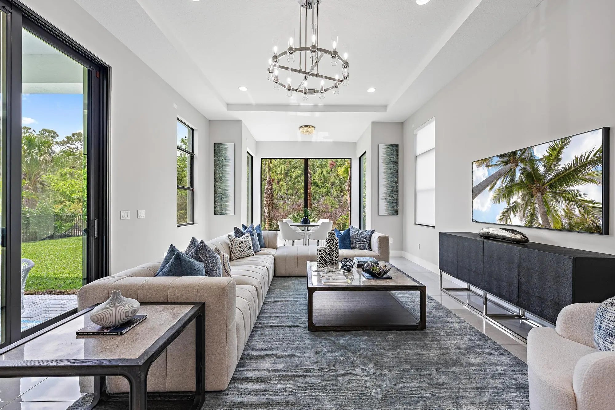 Welcome to 13358 Artisan Circle, a pristine, never-lived-in residence set within the exclusive, manned-gated community of "Artistry" in Palm Beach Gardens. Completed just months ago, this home offers a rare opportunity to enjoy brand-new construction with a sense of quiet luxury, comfort, and ease. A custom glass entry door welcomes you inside, where natural light fills the space and highlights the home's breathtaking vaulted ceilings and elegant lighting. The atmosphere is open, airy, and effortlessly refined. This home is equally suited for everyday living or gracious entertaining, whether as a full-time residence or a second home. Spanning at aprox. 5,167 square feet under air and 6,690 total square feet, this expansive "West" model is one of the largest in the community The thoughtfully designed layout features 5 bedrooms, 5 full bathrooms, and 1 half bath. A first-floor primary suite serves as a private retreat, offering direct access to the backyard. The suite includes dual vanities, a walk-in shower, and an oversized walk-in closet designed for a custom, dream-worthy setup. Also on the main level, a dedicated den or office provides flexibility for work, hobbies, or a quiet sitting area, while the three-car garage adds everyday convenience. At the heart of the home, the kitchen blends style and function with abundant cabinetry, a large island ideal for entertaining, a gas range, and a walk-in pantry. It flows seamlessly into the main living areas, where expansive windows and sliding glass doors fill the space with natural light and showcase tranquil views of the backyard and preserve, creating a calm and inviting atmosphere. Upstairs, a spacious loft with custom built-ins and a beverage refrigerator offers an ideal setting for relaxing or entertaining, with easy access to a private balcony for outdoor enjoyment. Four additional bedrooms are thoughtfully arranged to provide comfort and privacy for family and guests. Outdoor living is equally impressive, featuring a covered patio and an outdoor kitchen, perfect for relaxed evenings and enjoying the surrounding greenery. Built with quality and efficiency in mind, this brand new home includes impact windows and doors, solid construction, and energy-efficient systems designed for comfort and long-term value. Located within Artistry, a gated community developed by Kolter Homes, residents enjoy 24/7 security and resort-style amenities including a pool, clubhouse, fitness center, walking trails, and sports courts. Ideally situated, the home is just minutes from Alton Town Center, Whole Foods, Life Time Athletic Club, and some of South Florida's most beautiful beaches, with convenient access to Palm Beach International Airport. A refined, move-in-ready residence where modern design meets a relaxed, elevated lifestyle.