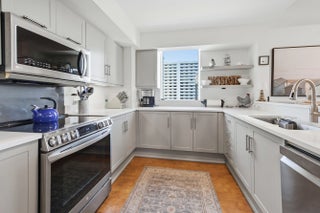 A stunning and spacious 2/2 with gorgeous ocean, intracoastal, downtown and park views located right on A1A and across the street from sandy beaches! Located in a secure twin tower complex this beauty offers complete light filled spaces- a recently remodeled chef's kitchen, open living/dining areas, large bedrooms, a tiled balcony off the main living area and guest room and a separate balcony for the master bedroom that has custom closets. Master bath features a soaking tub and separate shower stall with marble flooring and the guest bath has a shower/tub combo. The central hallway has an enclosed laundry closet. There is a fitness and billiard room, too. The complex has two pools and hot tubs. One for the buildings and one across the street in the private beach club. Truly a must see!