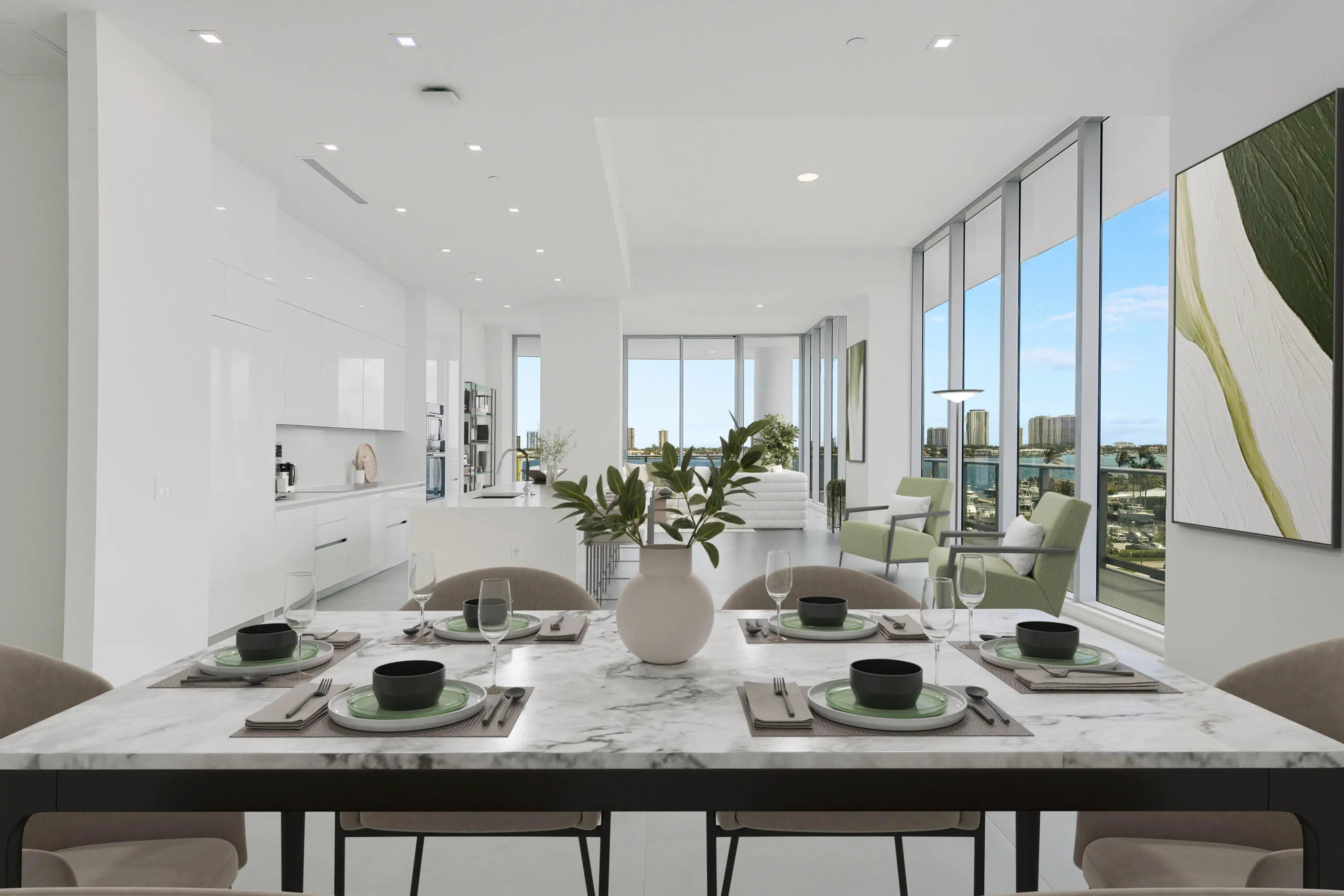 A piece of heaven awaits you in this brand new residence at Nautilus 220, the newest luxury waterfront development in the Palm Beaches where resort style living meets modern coastal elegance. This 3 bedroom corner residence with den is uniquely positioned on the same level as the resort pool & features one of the largest wrap around terraces in the building, creating seamless indoor outdoor living with beautiful East & Southeast views & direct access to the amenity deck. This is the only residence in the building offering 12 foot ceilings, making the space feel even larger & brighter. The expansive terrace also features a private hot tub, outdoor kitchen & private gate leading directly to the amenity deck, creating a true private resort style retreat. Inside, the home offers porcelain tile flooring throughout & floor to ceiling impact glass that fills the residence with natural light. The chef's kitchen features a full Miele appliance package, wine refrigerator, waterfall quartz island & countertops & sleek European cabinetry. The spacious primary suite includes a spa inspired bathroom with a freestanding soaking tub. Residents enjoy Nautilus 220's one acre waterfront amenity deck overlooking the Intracoastal with a resort style pool, spa, sundeck, fire pits, yoga deck, putting green & off leash dog park. Two levels of indoor amenities include a fitness center, spin & yoga studios, sauna & steam rooms, mini bowling, theater lounge, golf & sports simulator, music studio, club room, billiards & card tables, kids playroom & teen gaming lounge, plus a rooftop lap pool & spa with panoramic views. On site conveniences include Seahawk Prime Restaurant by Chef David Burke, café, retail, marina access, private beach club & 24 hour security & management, with a grand lobby featuring 18 foot ceilings designed by Interiors by Steven G. Available annually furnished or unfurnished. Pet friendly community.
